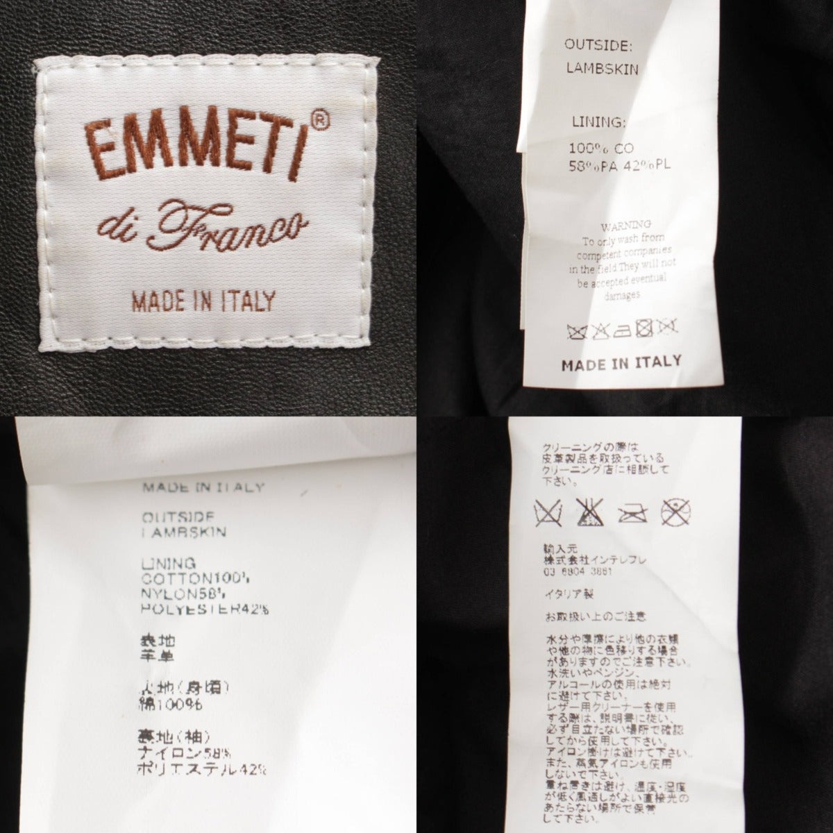 EMMETI JURI ユリ ラムスキン シングルライダース ジャケット ブラック 44 (191736