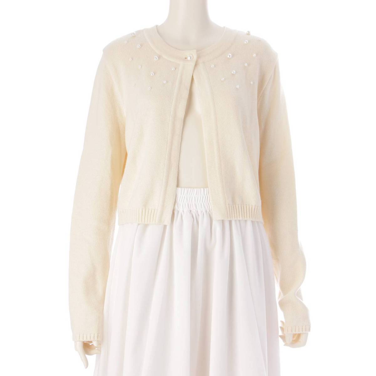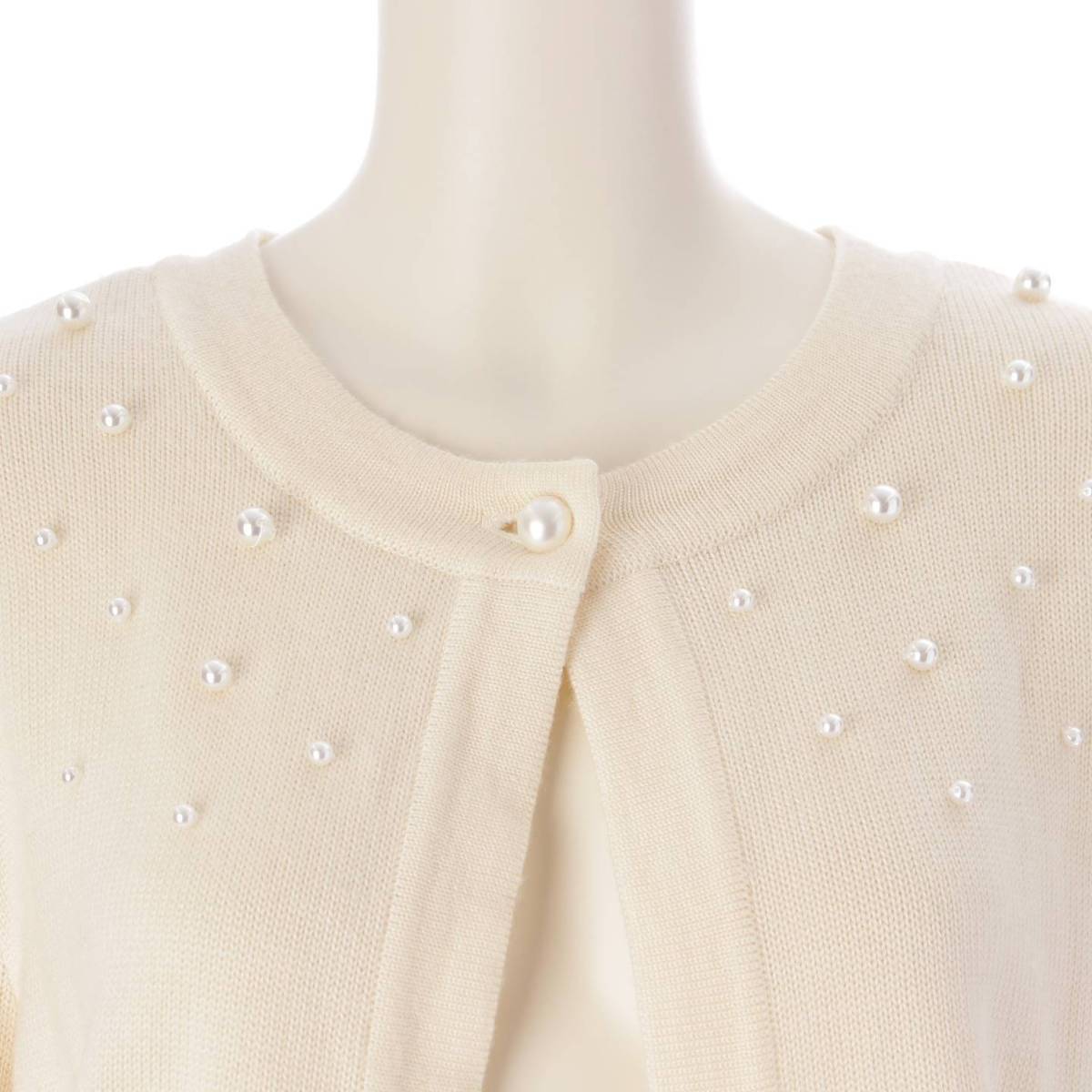 Rene 22年 パール ボレロ ウール カーディガン 長袖 トップス 6232560 オフホワイト 38 (208288