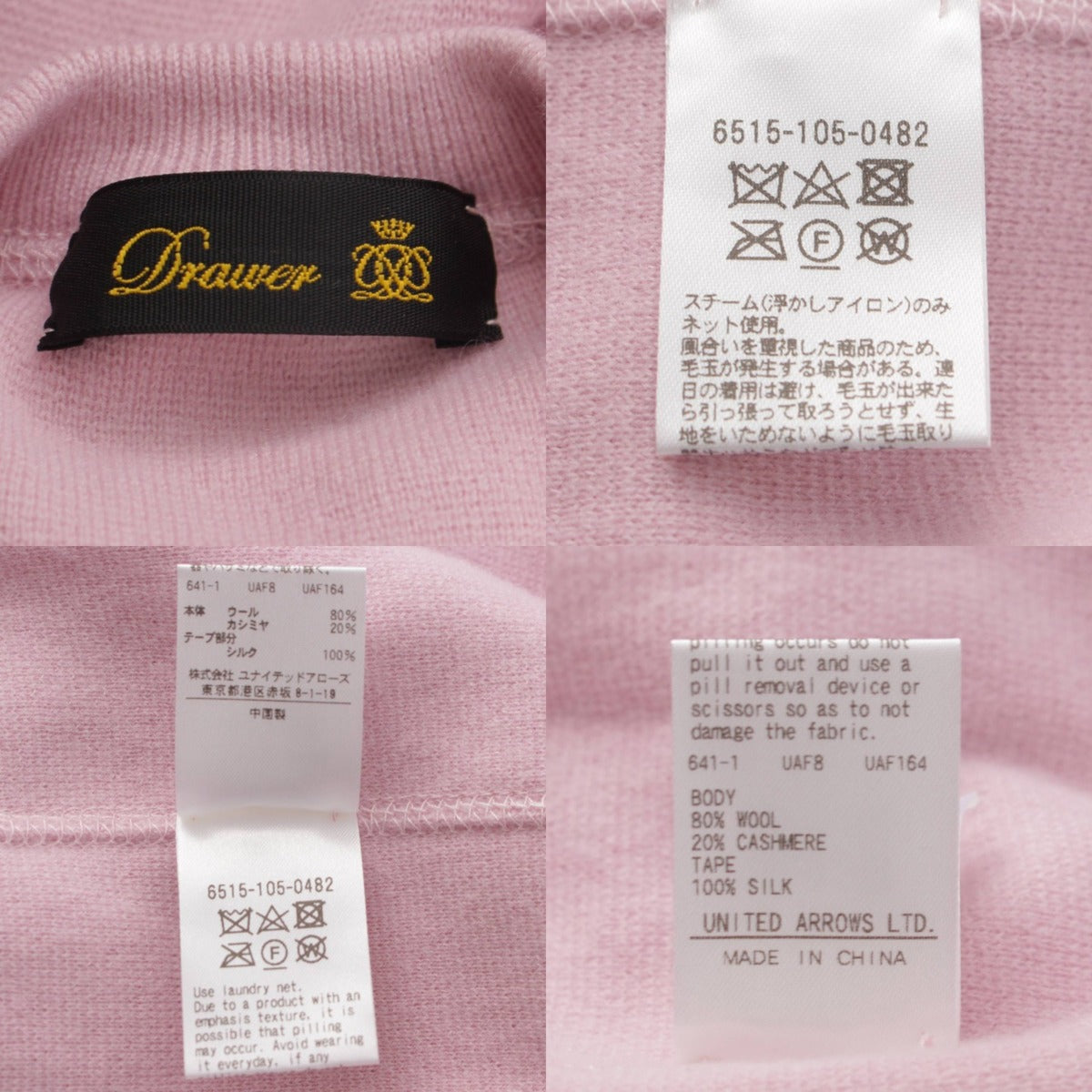 [Drawer] DRAWER Cashmere Wool Snap Crew Neck Cardigan 6515-105-0482 Pink [Used] [Authenticated and Guaranteed Authentic] 193956