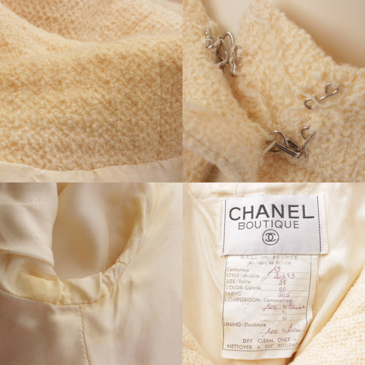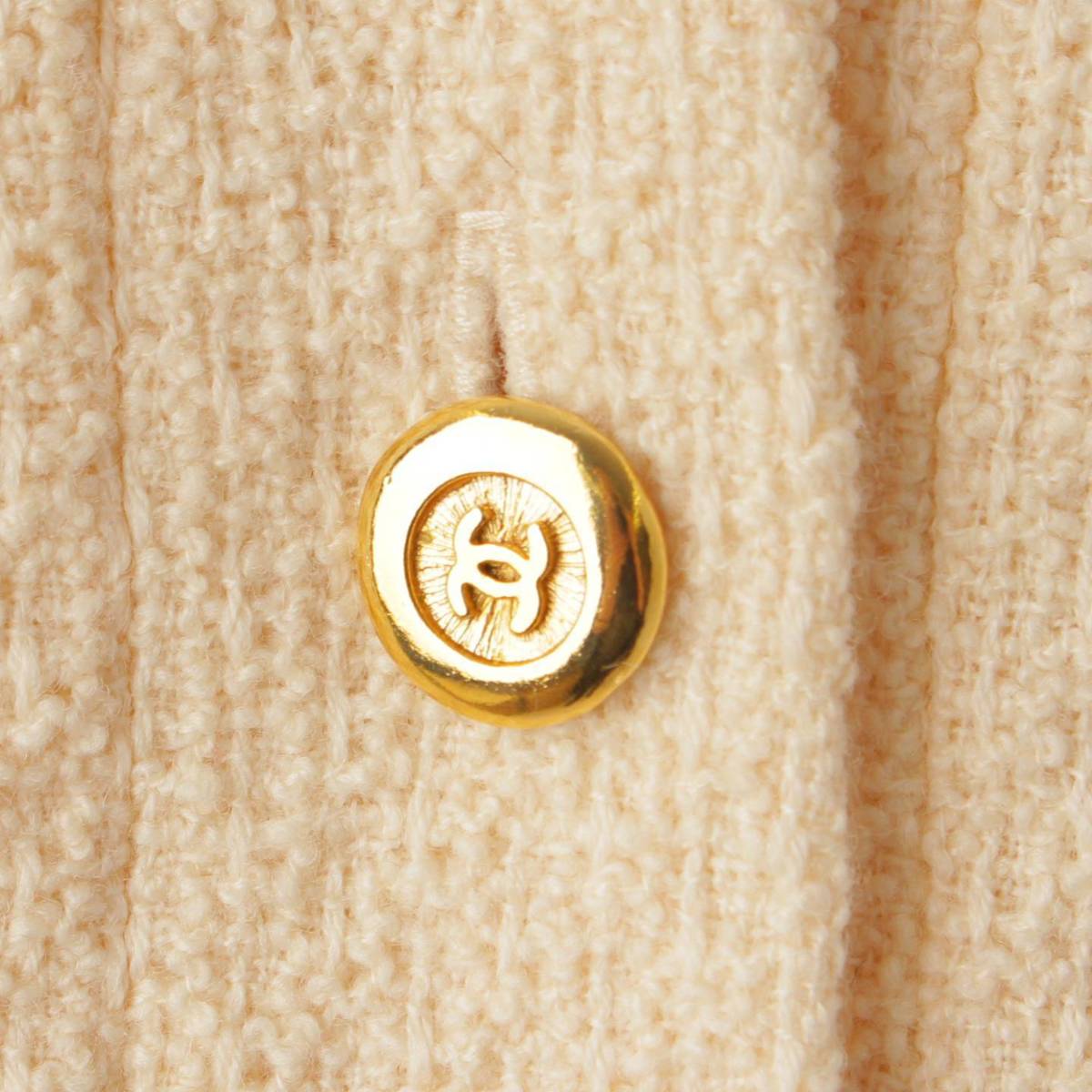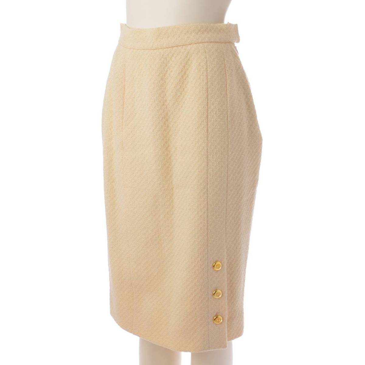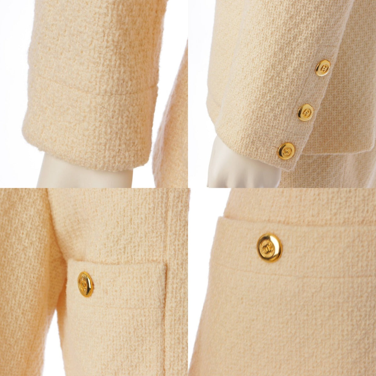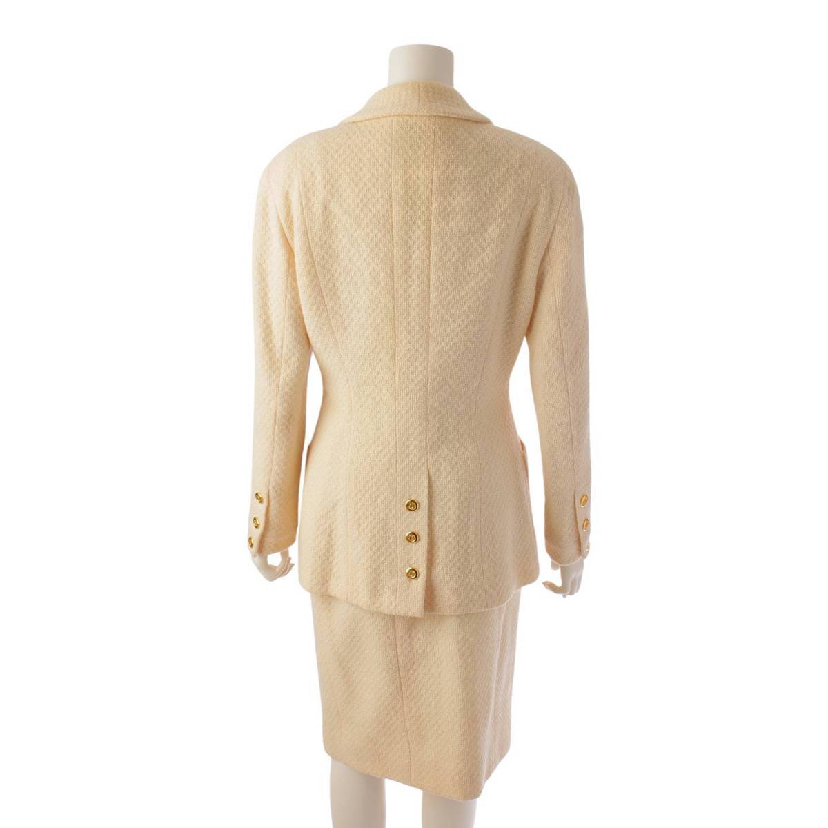 [Chanel] Chanel Tweed 4 Pocket Gold Button COCO Button Suit Set Ivory 38 [Used] [Authenticated and Guaranteed Authentic] 195143