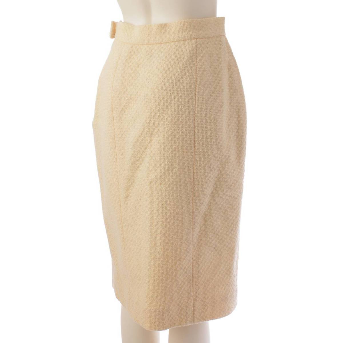 .detail {width:400px; font-size:12px;border-top:#000 2px solid; line-height:1.5em;border-bottom:#666 1px solid; margin-bottom:5px;}.detail .title{ padding:10px;border-bottom:#666 1px solid; background-color:#e3e3e3; margin:0;}.detail .text{ padding: 5px 10px;} Product details Material: Please see the composition tag Color: Ivory Accessories: Spare button Garment case Damage: Slight fluffing overall, stain on composition tag Discolors on collar and inside armpits, fray around hook Waist hook missing Reference price when new: yen *As this is a used item, there may be damage not listed on the product or accessories. Please note. Product condition AB: Slightly used, no noticeable scratches or damage, but inferior to A rank. Size: 40 [Jacket] Shoulder width: around 16.1" Width: around 17.3" Sleeve length: around 23.2" Length: around 26.8" [Skirt] Waist: around 12.6" Total length: around 25.2" *Measurements taken flat *Please allow for some error.