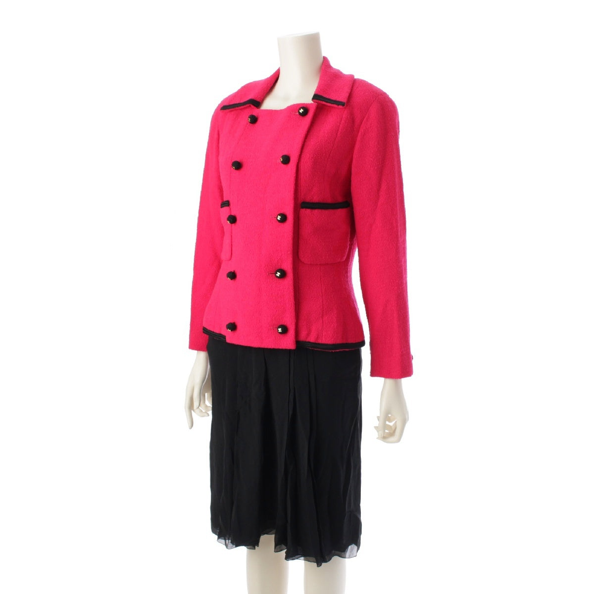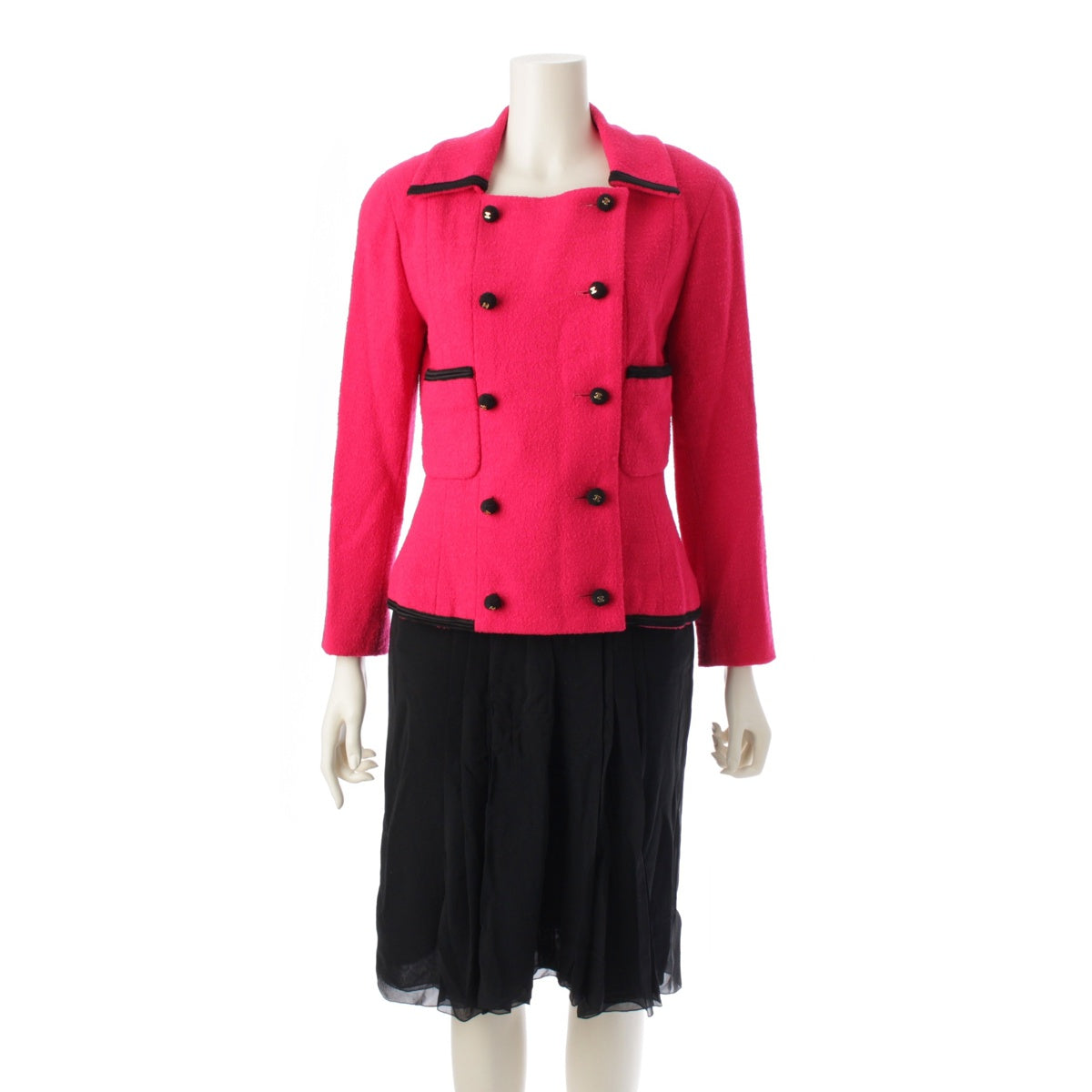 CHANEL Double Breasted COCO Mark Skirt setup suit Red black 36
