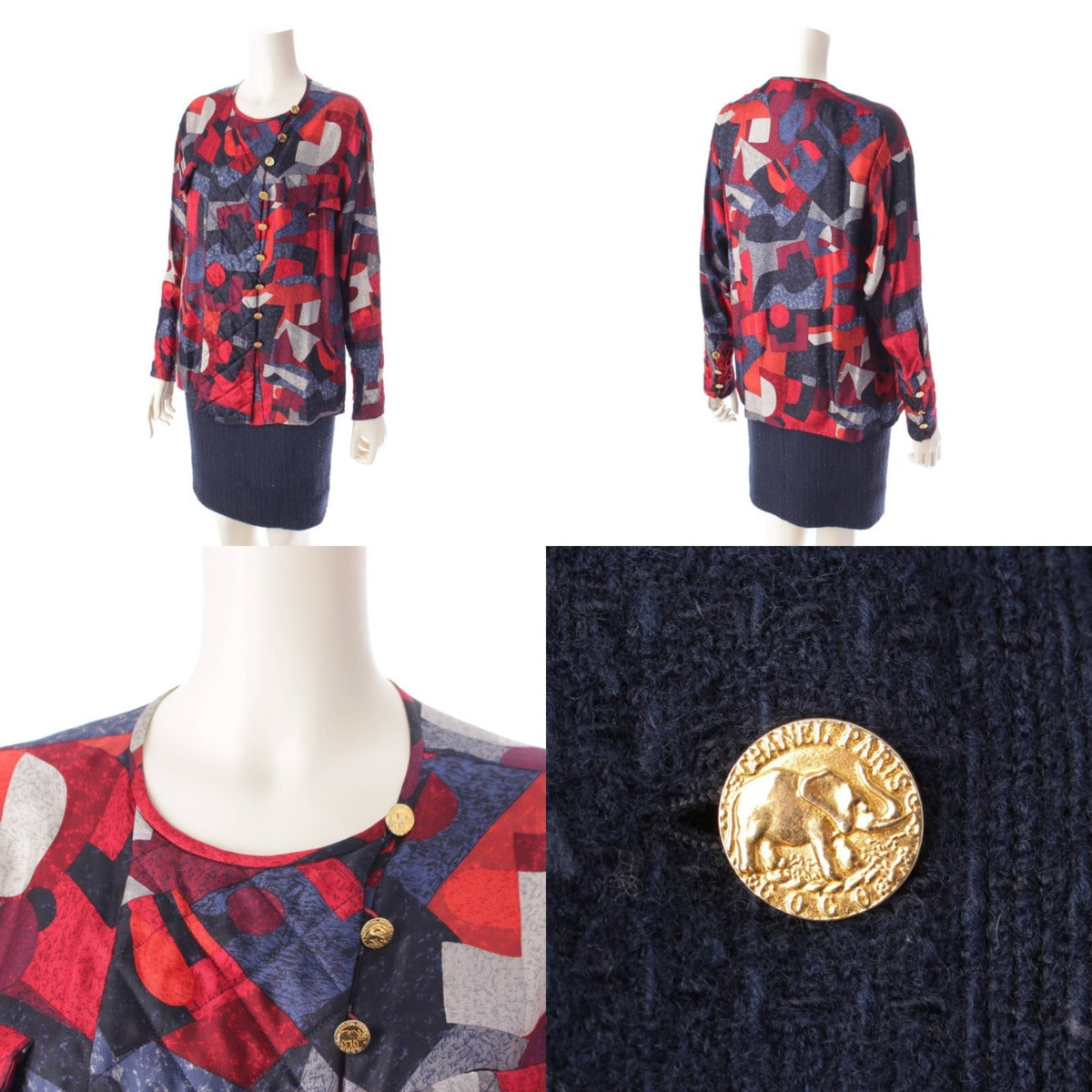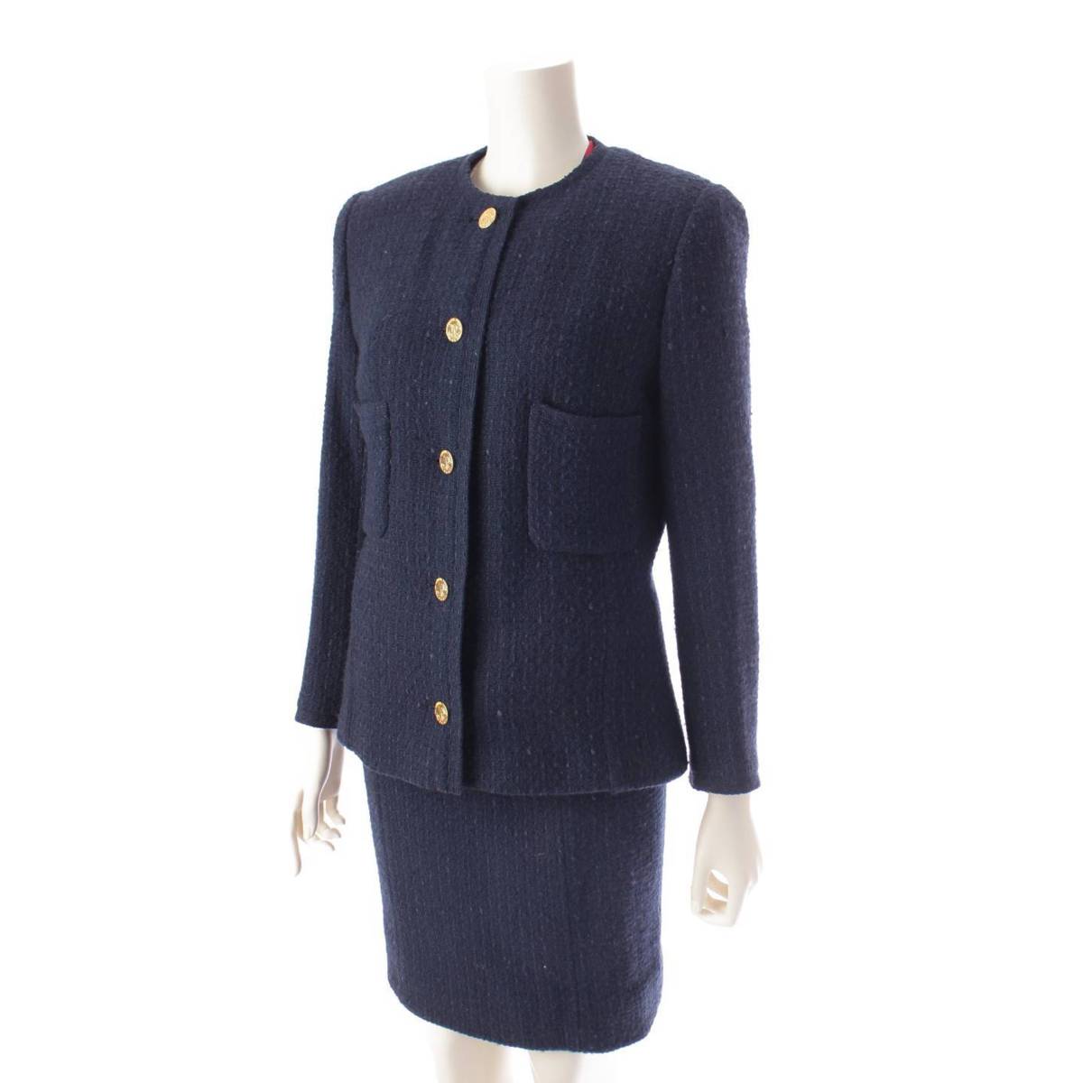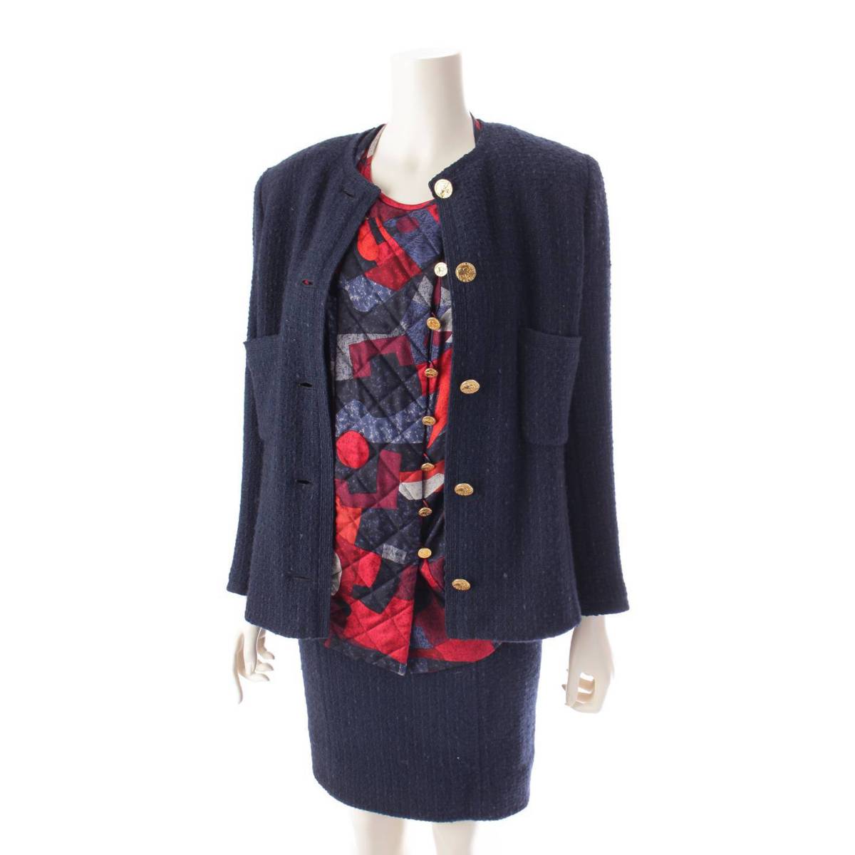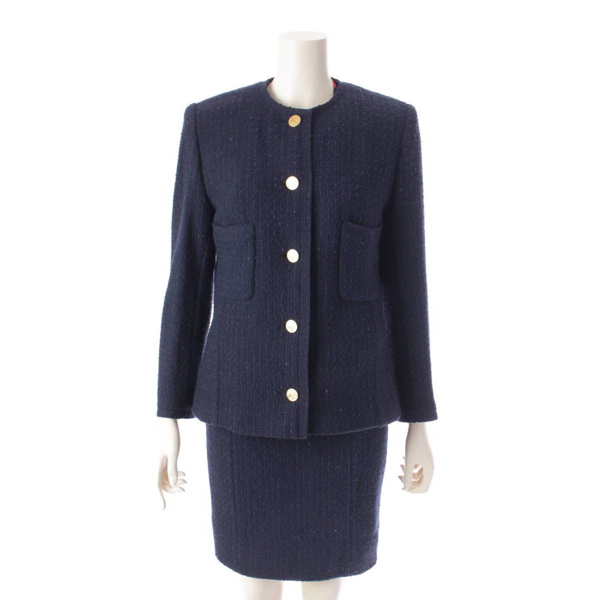 [Chanel] Chanel Jacket, Top, and Skirt 3-Piece Suit, Navy [Used] [Authenticated and Guaranteed Authentic] 196872