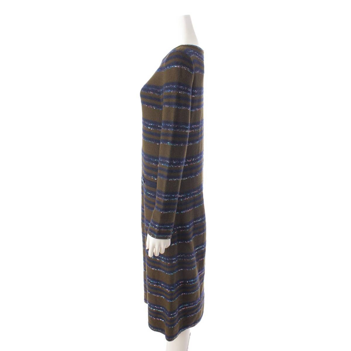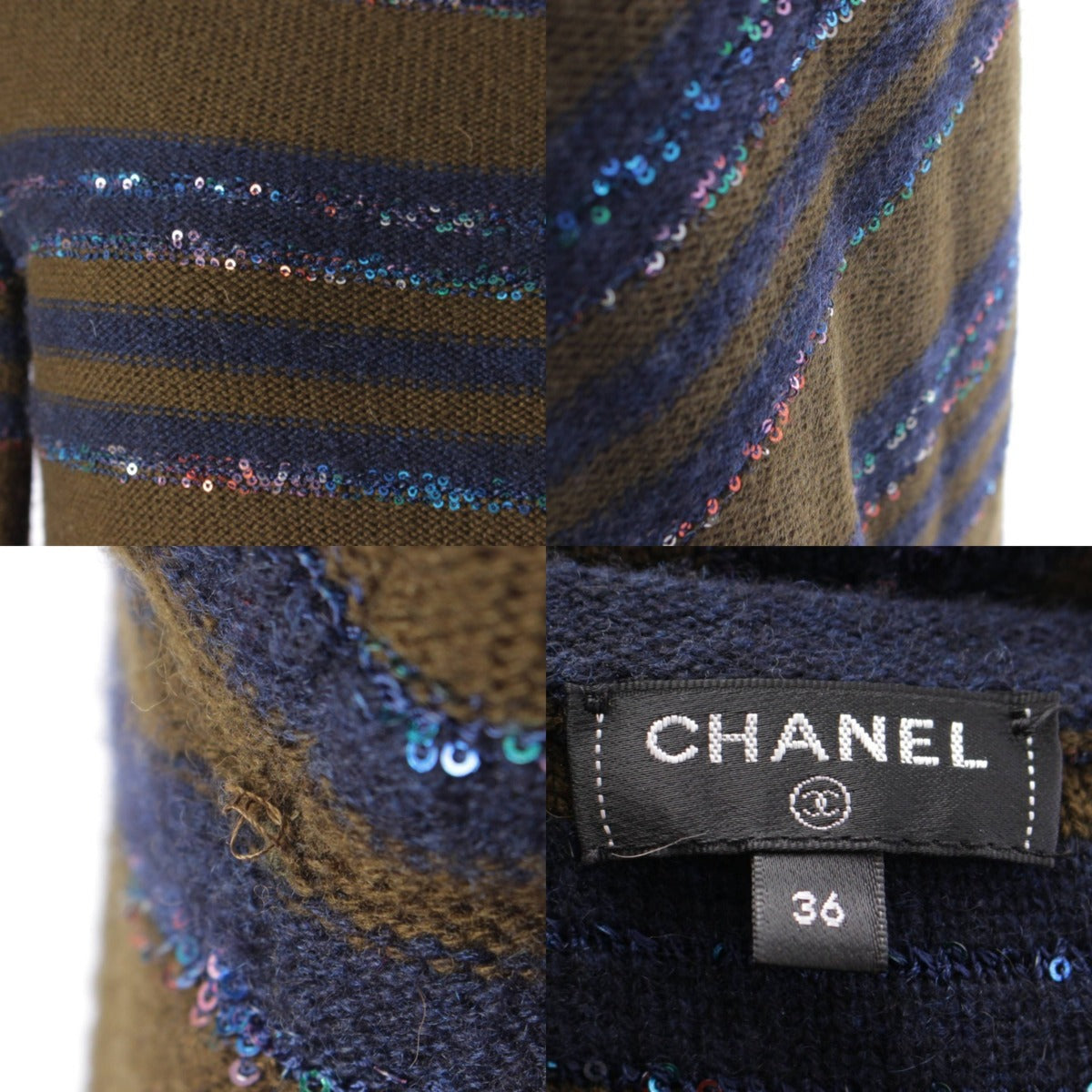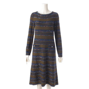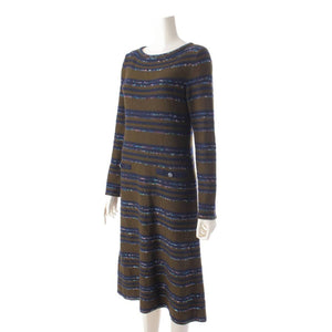 [Chanel] Chanel Cashmere Sequin Long Sleeve Knit Dress P62936 Khaki x Navy 36 [Used] [Authenticated and Guaranteed Authentic] 198298