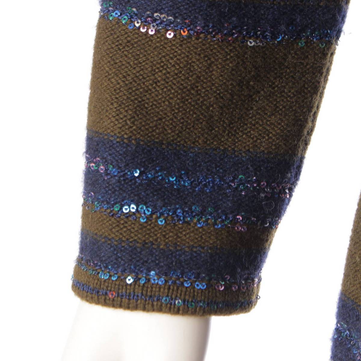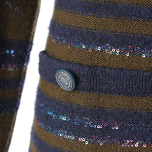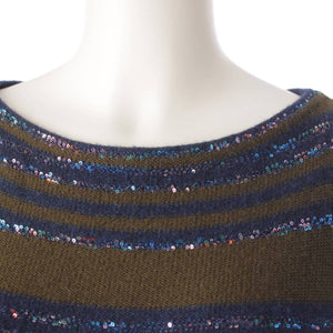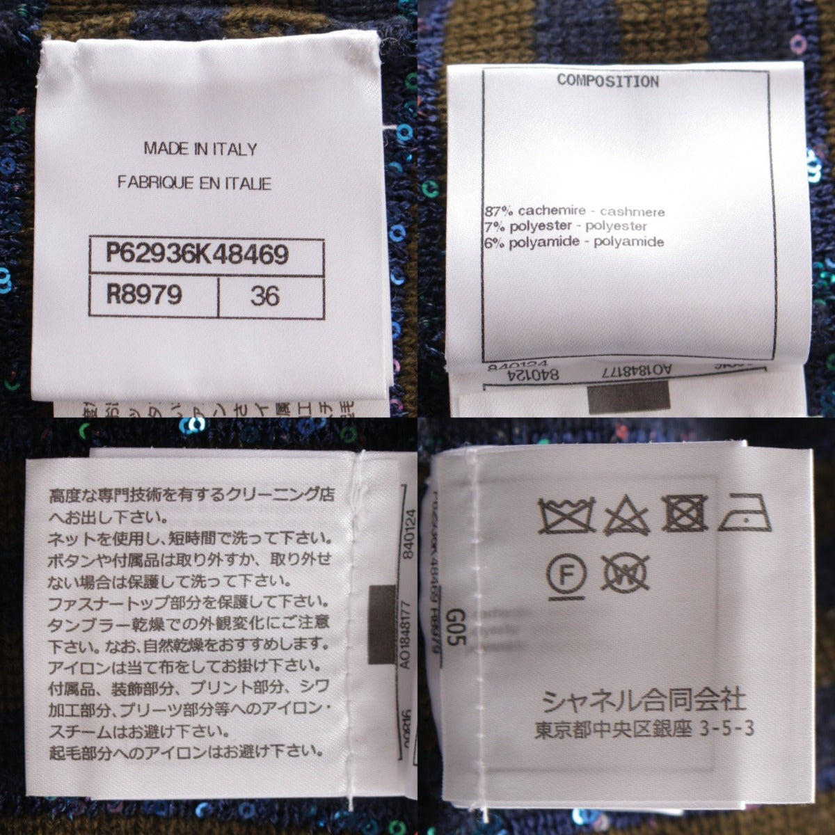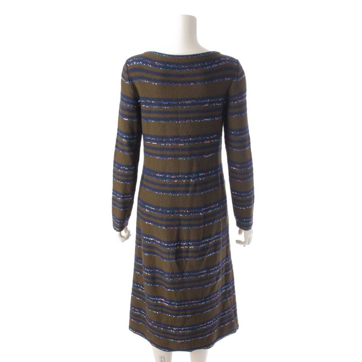 [Chanel] Chanel Cashmere Sequin Long Sleeve Knit Dress P62936 Khaki x Navy 36 [Used] [Authenticated and Guaranteed Authentic] 198298