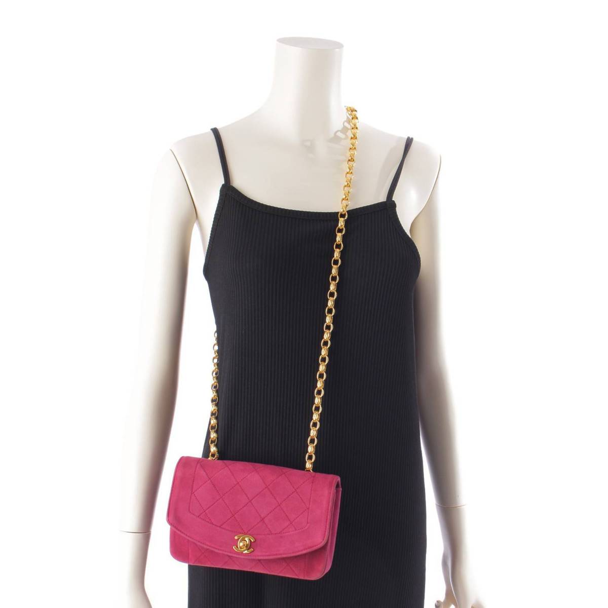 [Chanel] Chanel Diana Suede Single Flap Matelasse Chain Shoulder Bag Purple [Used] [Authenticated and Guaranteed Authentic] 198378