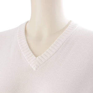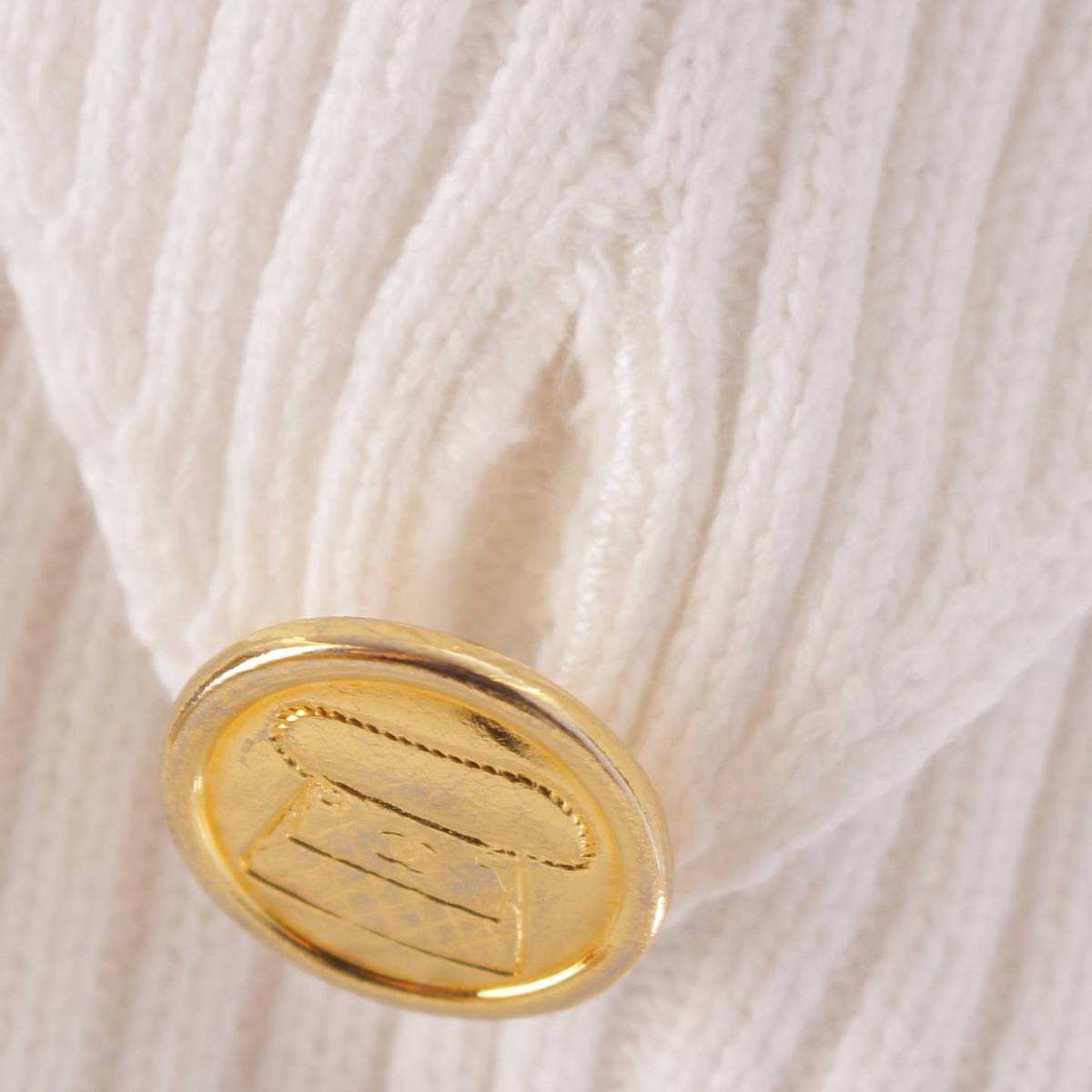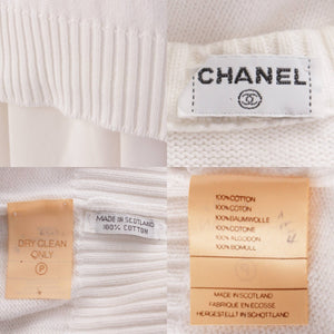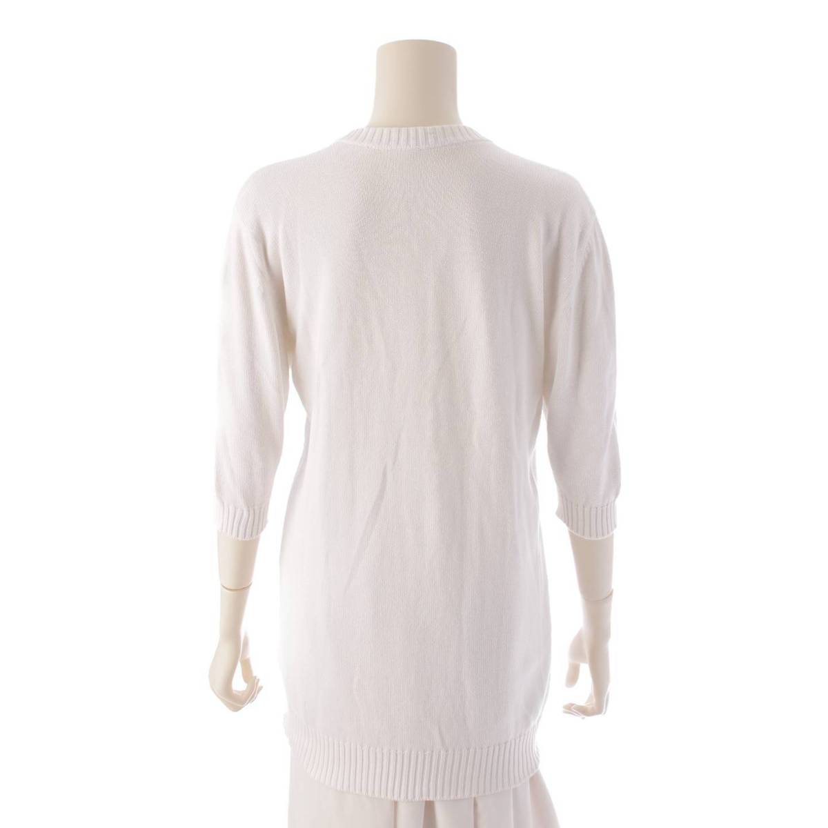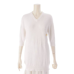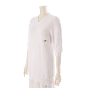 [Chanel] Chanel COCO Mark 5/8 Sleeve V-Neck Cotton Rib Knit Sweater White 0 [Used] [Authenticated/Genuine Product Guaranteed] 200663
