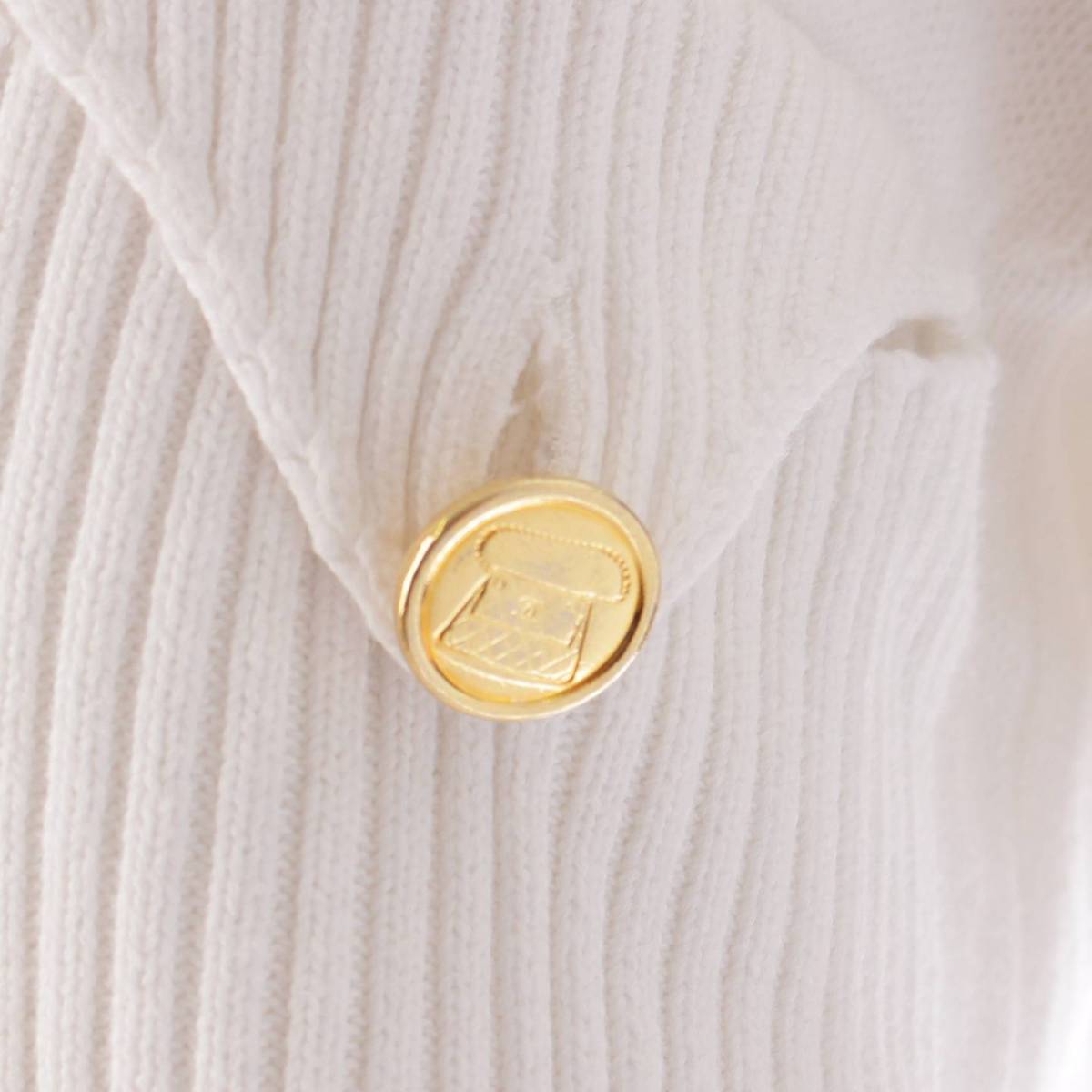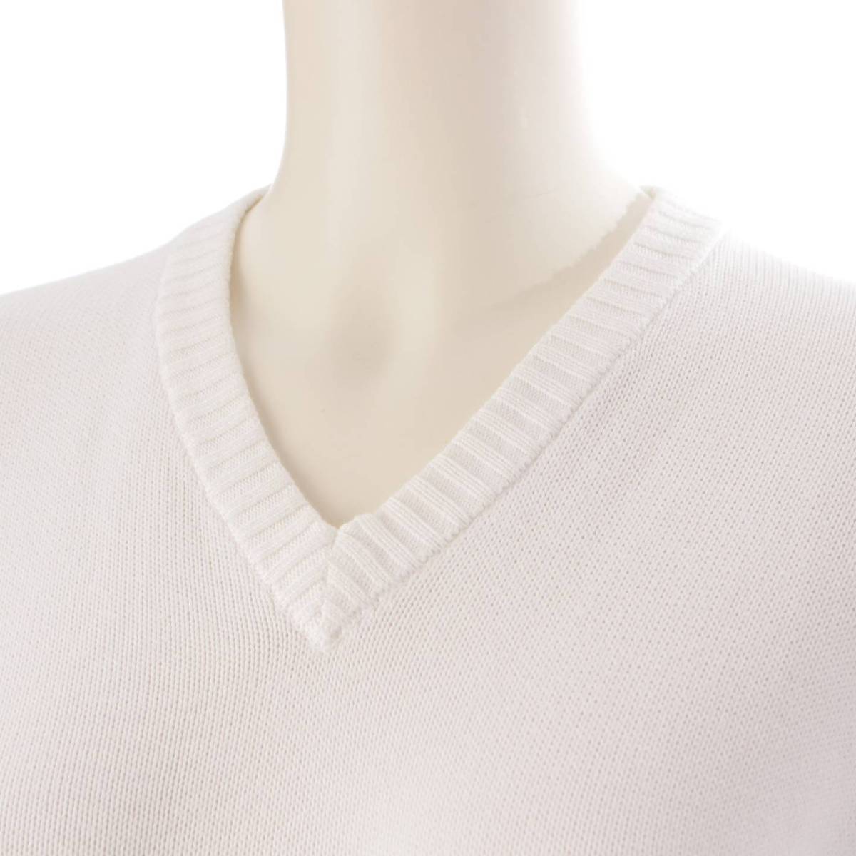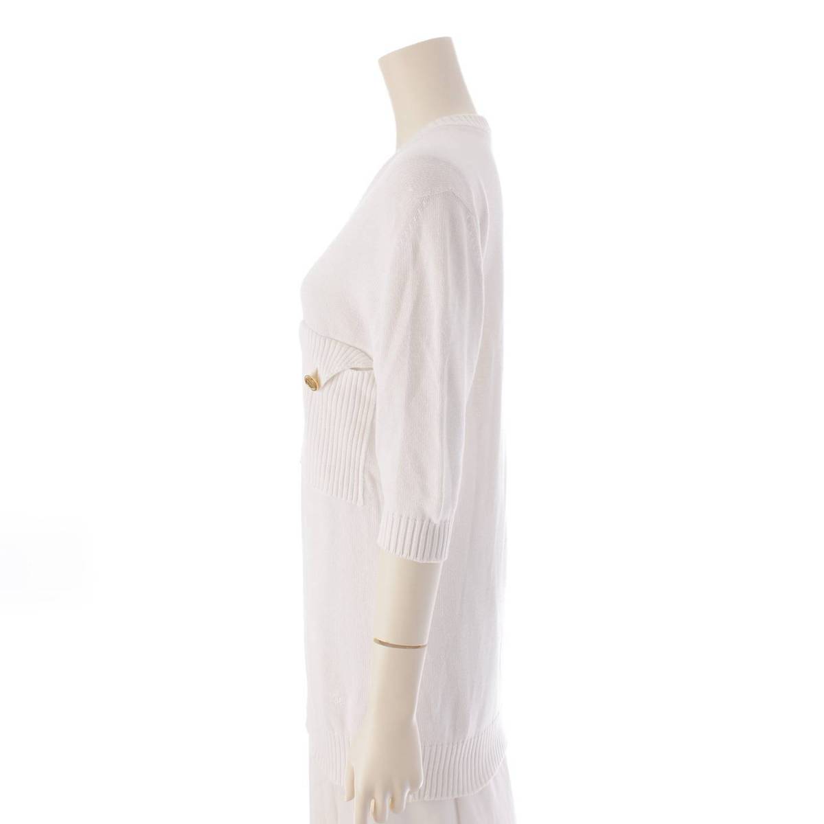 [Chanel] Chanel COCO Mark 5/8 Sleeve V-Neck Cotton Rib Knit Sweater White 0 [Used] [Authenticated/Genuine Product Guaranteed] 200663