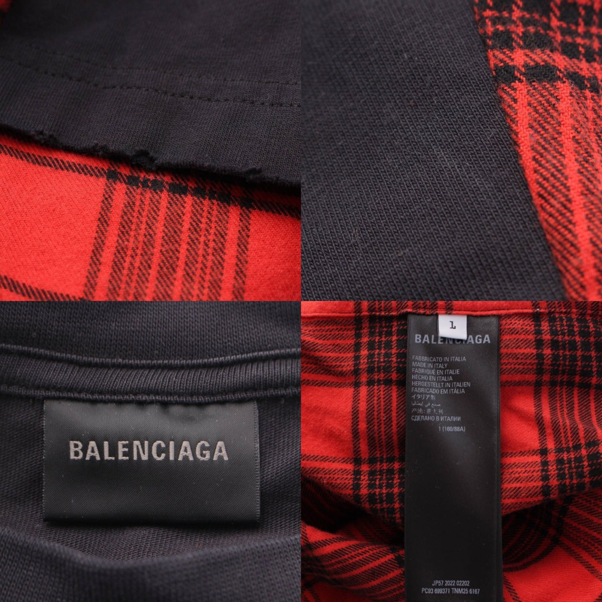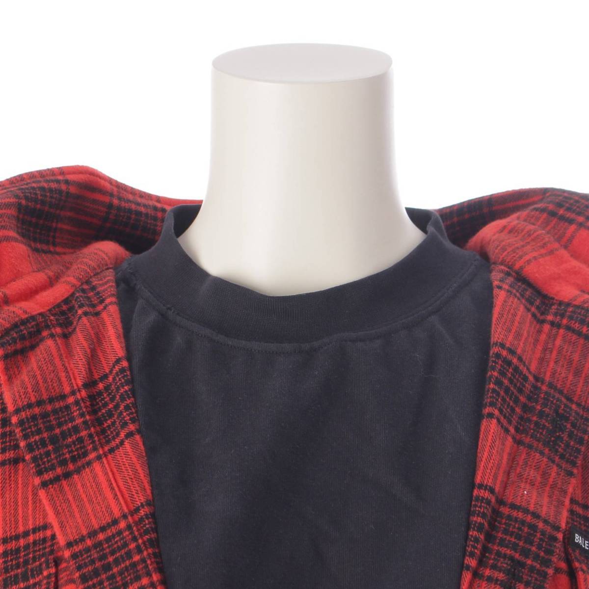 [Balenciaga] Balenciaga 22 Stainless Steel Trompe L'oeil Check Cotton Shirt 699371 Black x Red 1 [Used] [Authenticated and Guaranteed Authentic] 204333