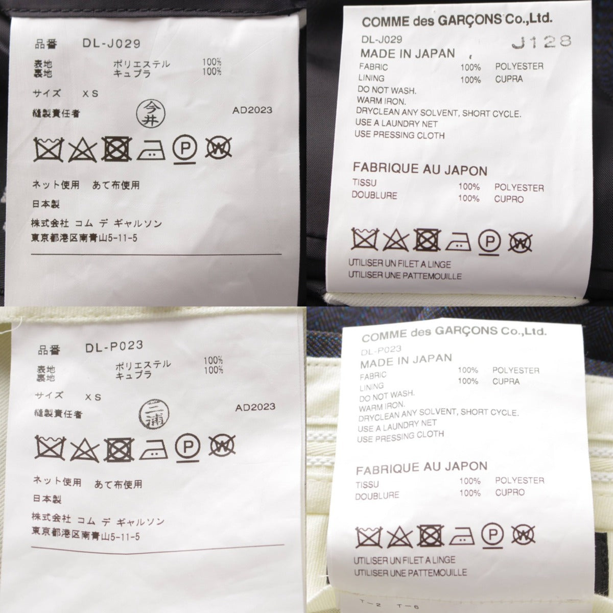 .detail {width:400px; font-size:12px;border-top:#000 2px solid; line-height:1.5em;border-bottom:#666 1px solid; margin-bottom:5px;}.detail .title{ padding:10px;border-bottom:#666 1px solid; background-color:#e3e3e3; margin:0;}.detail .text{ padding: 5px 10px;} Product Details Material: Please see the composition tag Color: Navy Product number: DL-J029/DL-P023 Accessories: - Damage: Stain on the inside of the jacket collar and pants zipper length, odor due to use and storage New reference price: yen *As this is a used item, there may be damage that is not listed on the main unit or accessories. Please note. Product condition AB: Slightly used, with no noticeable scratches or damage, but in a condition inferior to A rank. Size: XS [Jacket] Shoulder width: around 15.4" Width: around 18.1" Sleeve length: around 24.4" Length: around 26.8" [Pants] Waist: around 14.2" Rise: around 10.2" Inseam: around 27.2" Thigh width: around 11.8" Hem width: around 6.7" *Measurements taken flat *Please allow for some error.