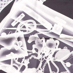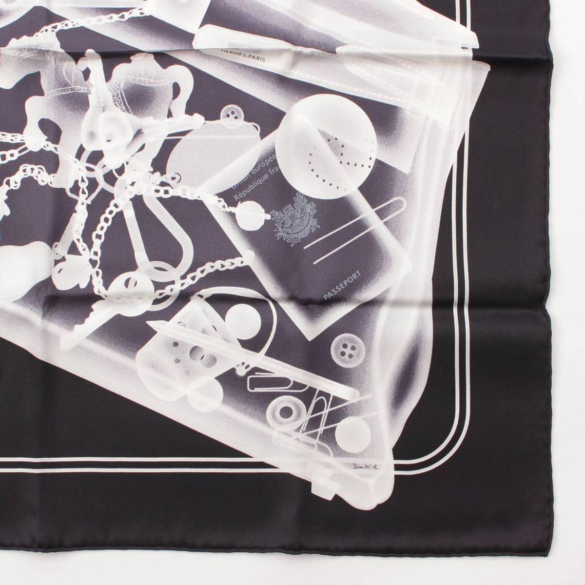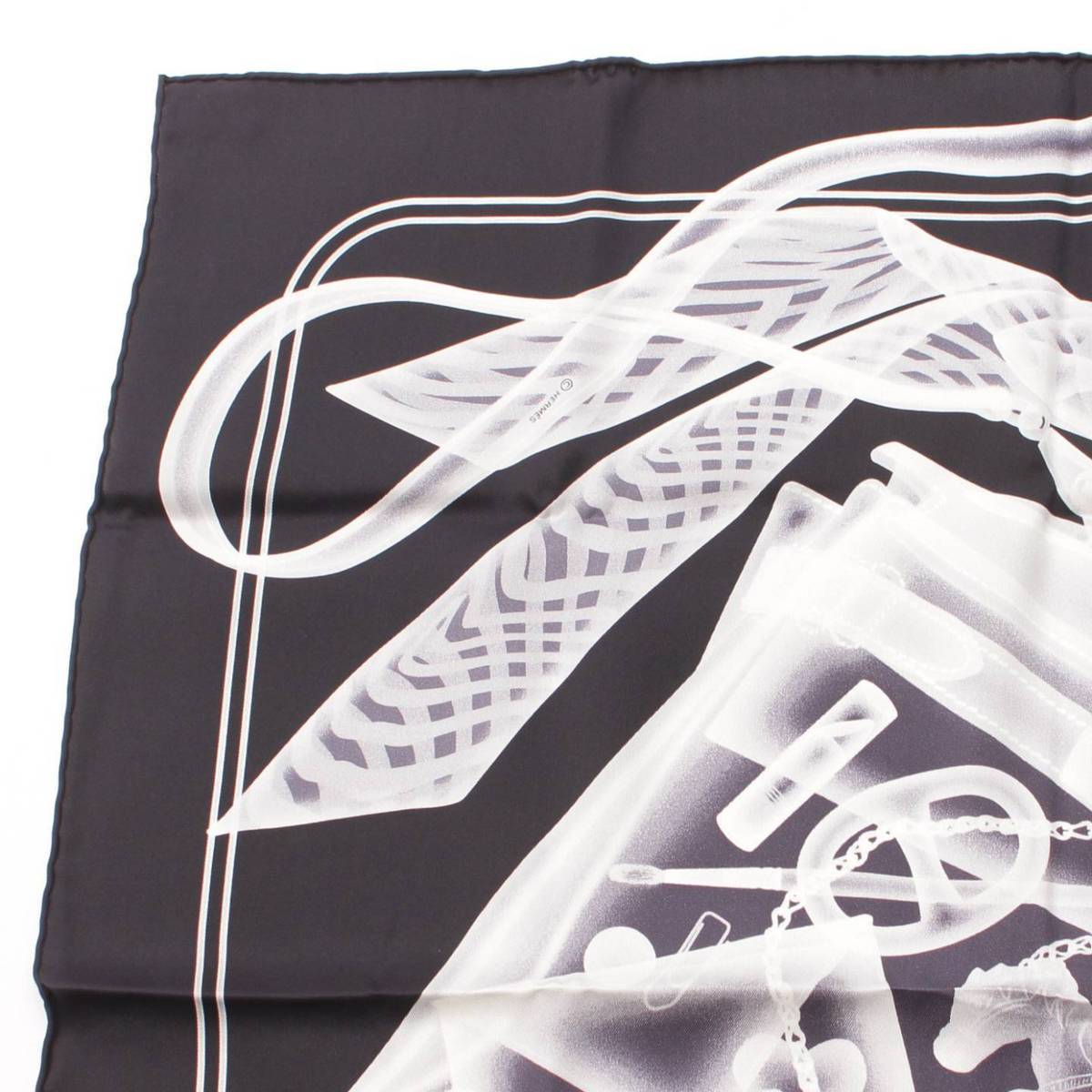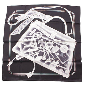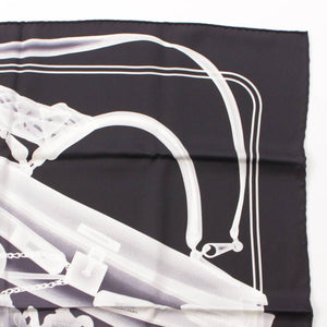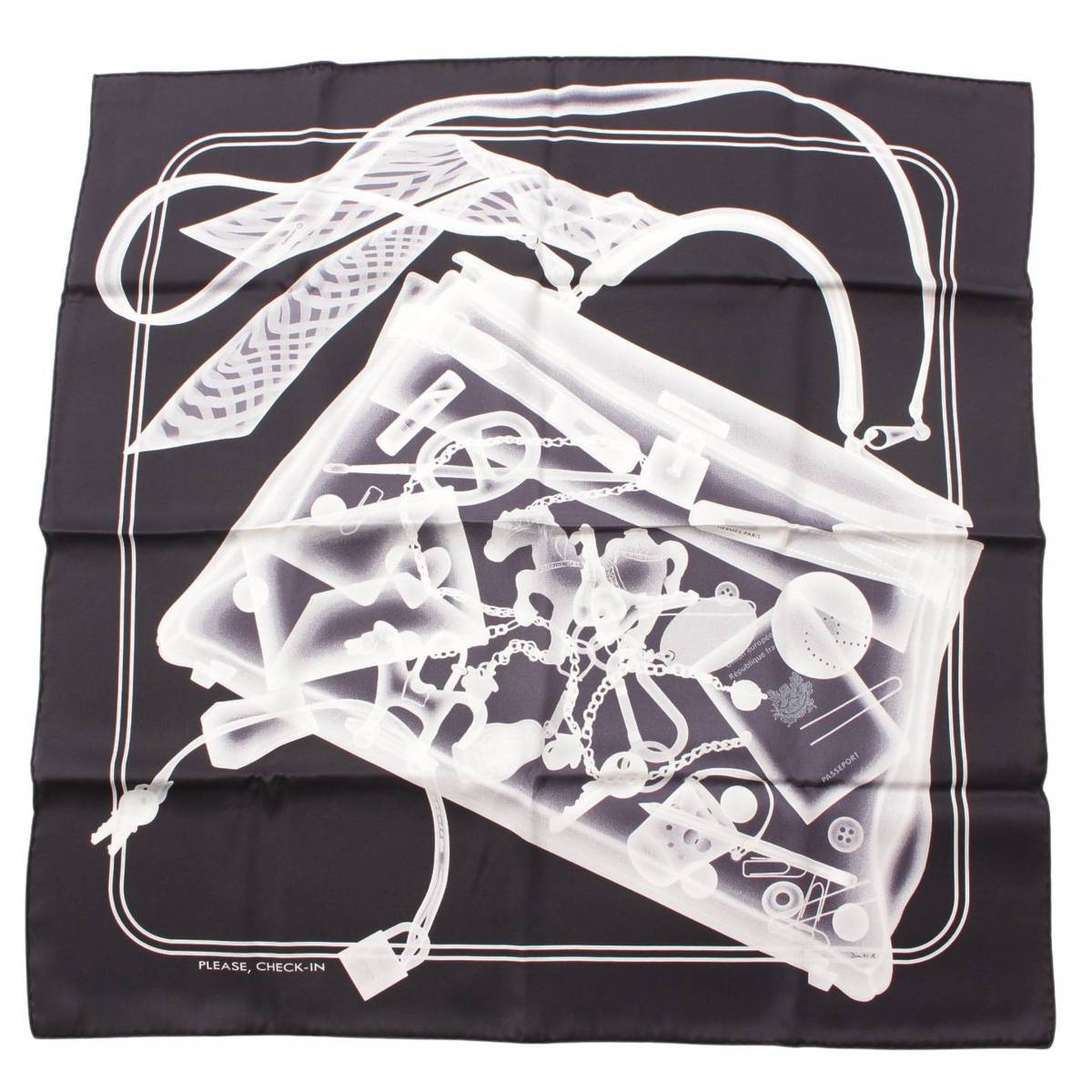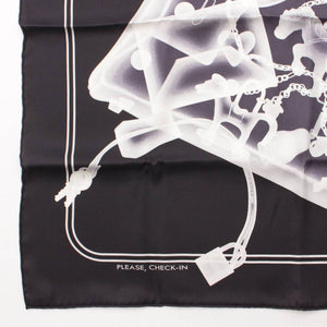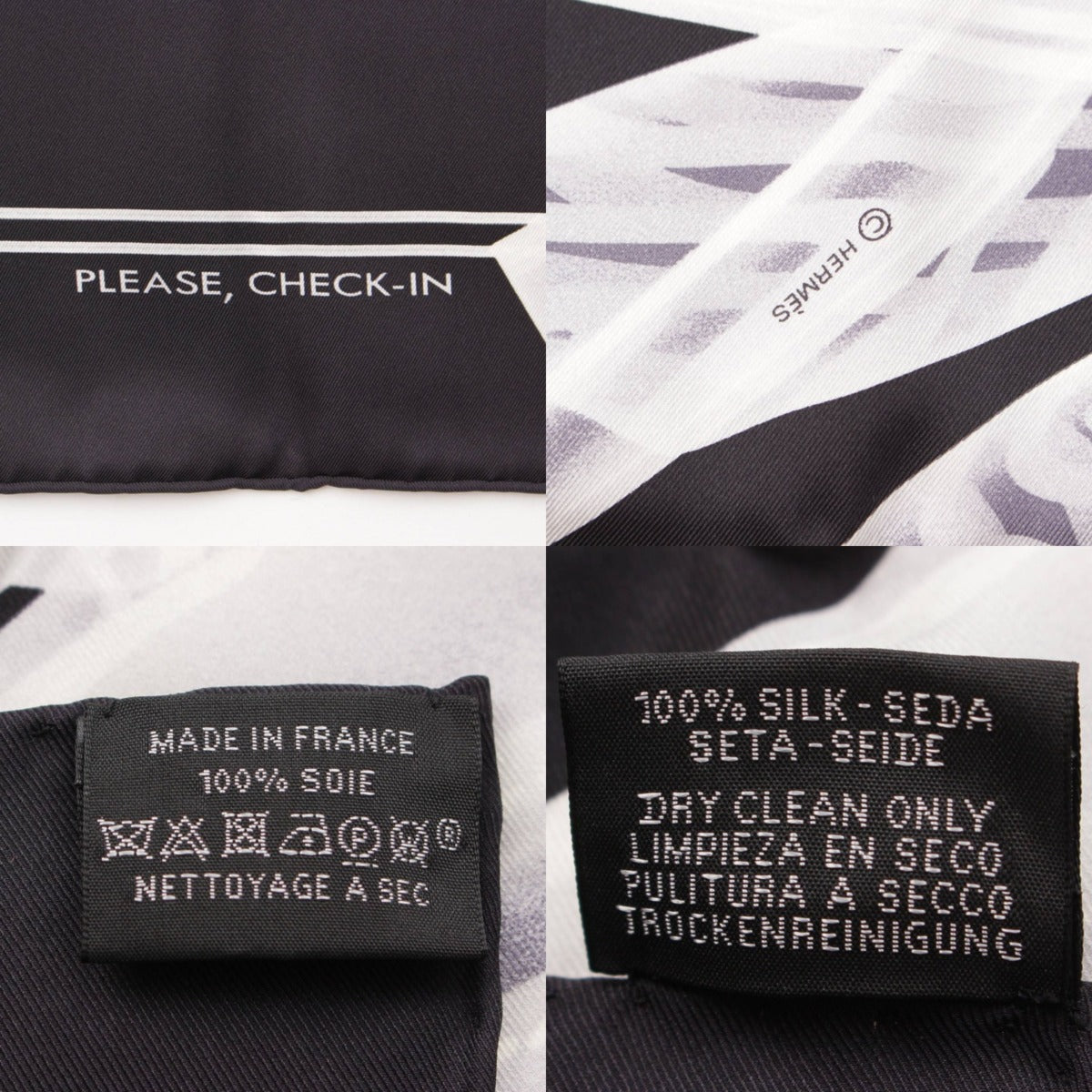 [Hermes] Hermes Carre 70 Silk Scarf PLEASE CHECK-IN Please Check-in Black x White [Used] [Authenticated and Guaranteed Authentic] 206158
