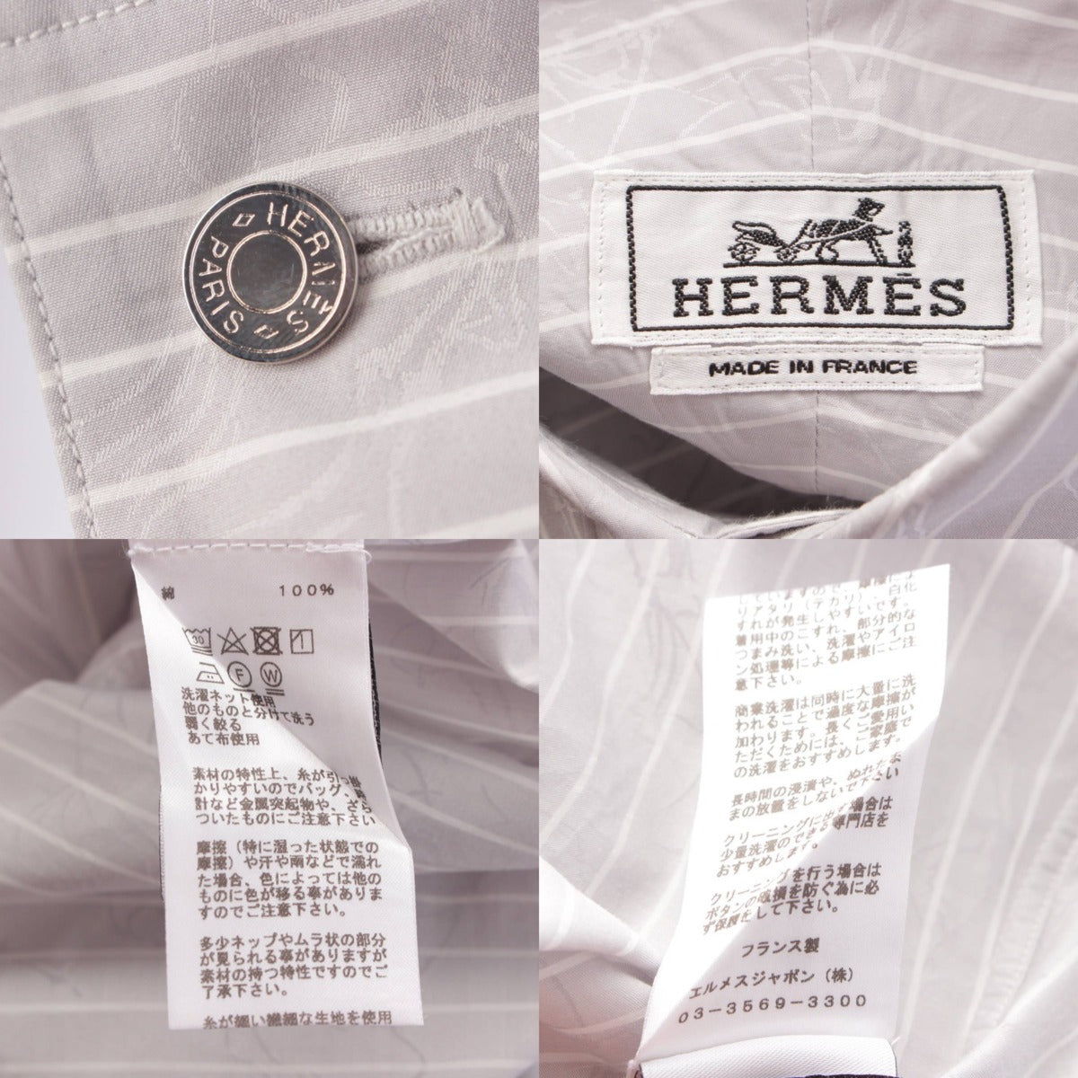 [Hermes] Hermes Men's Striped Horse Graphic Long Sleeve Blouse Shirt Gray Size 40 [Used] [Authenticated and Guaranteed Authentic] 206483
