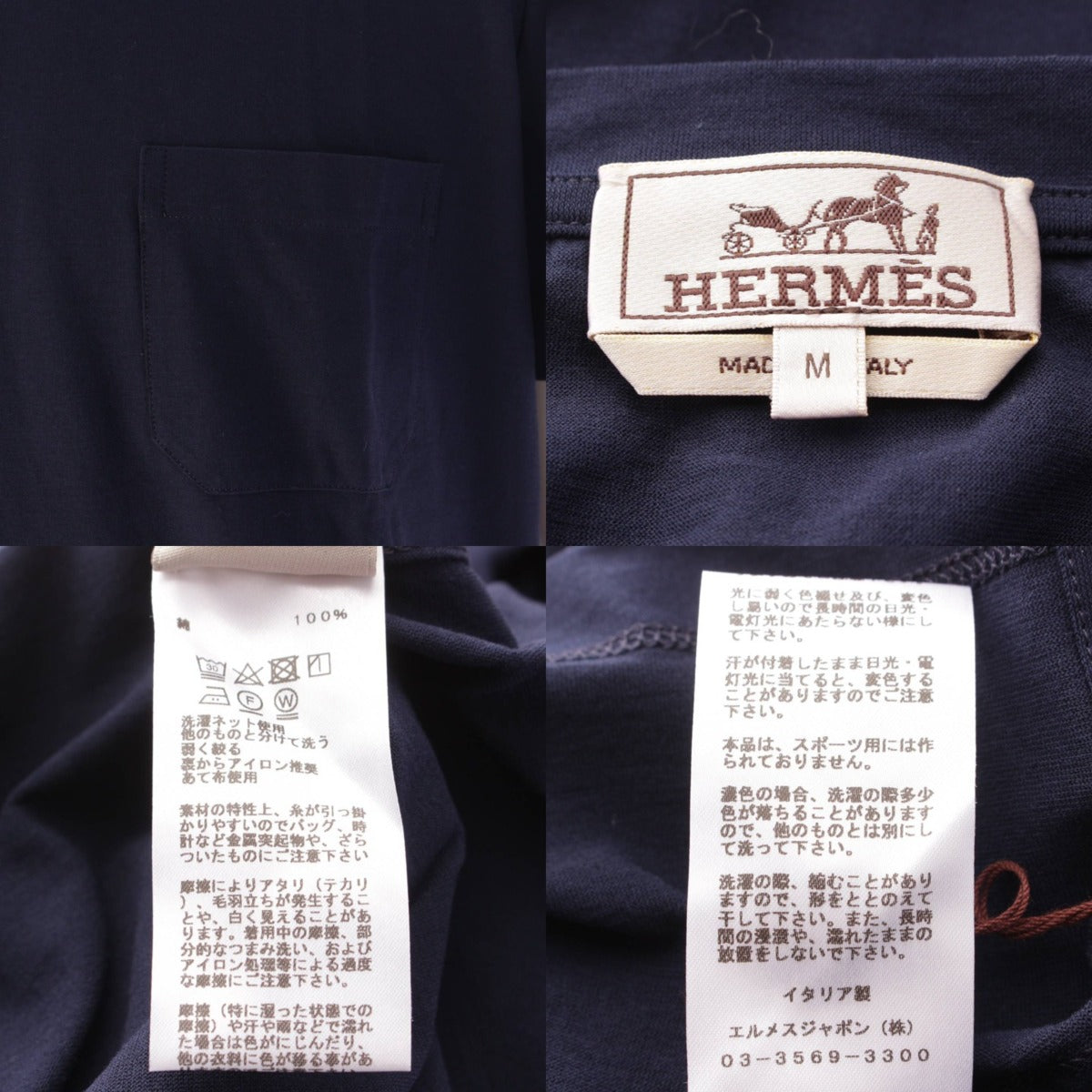 [Hermes] Hermes Men's Cotton Short Sleeve Pocket T-Shirt Cut and Sew Top Navy M [Used] [Authenticated and Guaranteed Authentic] 206497