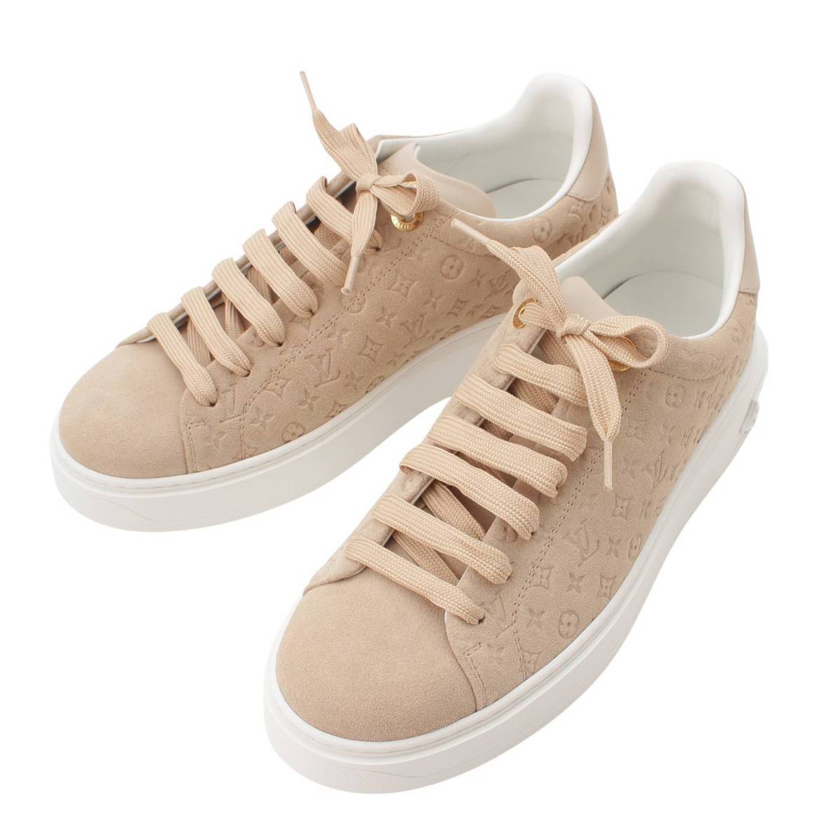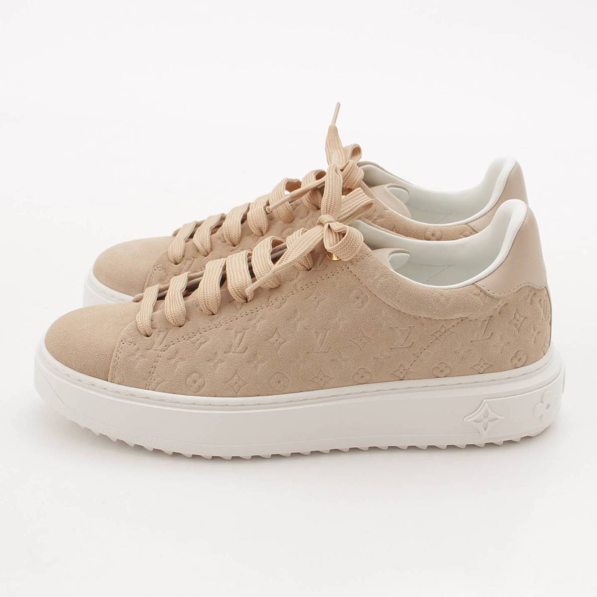 [Louis Vuitton] Louis Vuitton Time Out Line Monogram Suede Sneakers 1ABR2K Beige 39 [Used] [Authenticated and Guaranteed Authentic] 206667