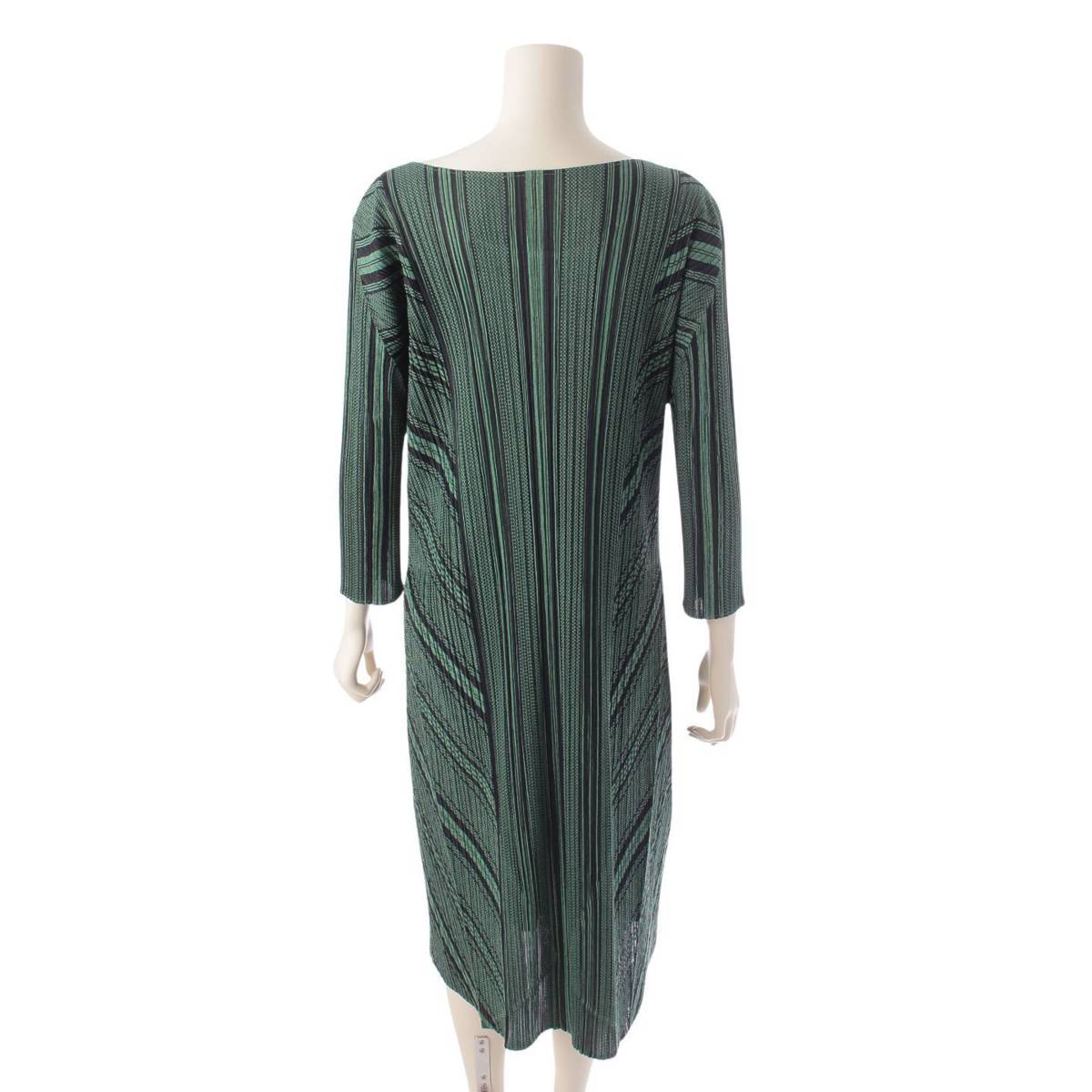 [Issey Miyake] Issey Miyake Open Neck Long One Piece Dress Tops PP11-JH564 Green 3 [Used] [Authenticated and Guaranteed Authentic] 206998