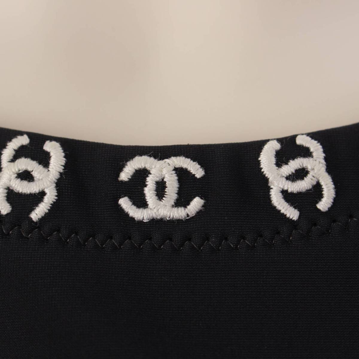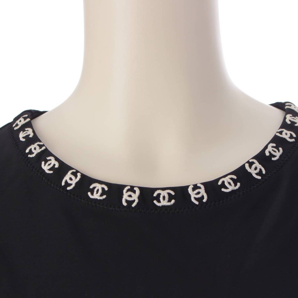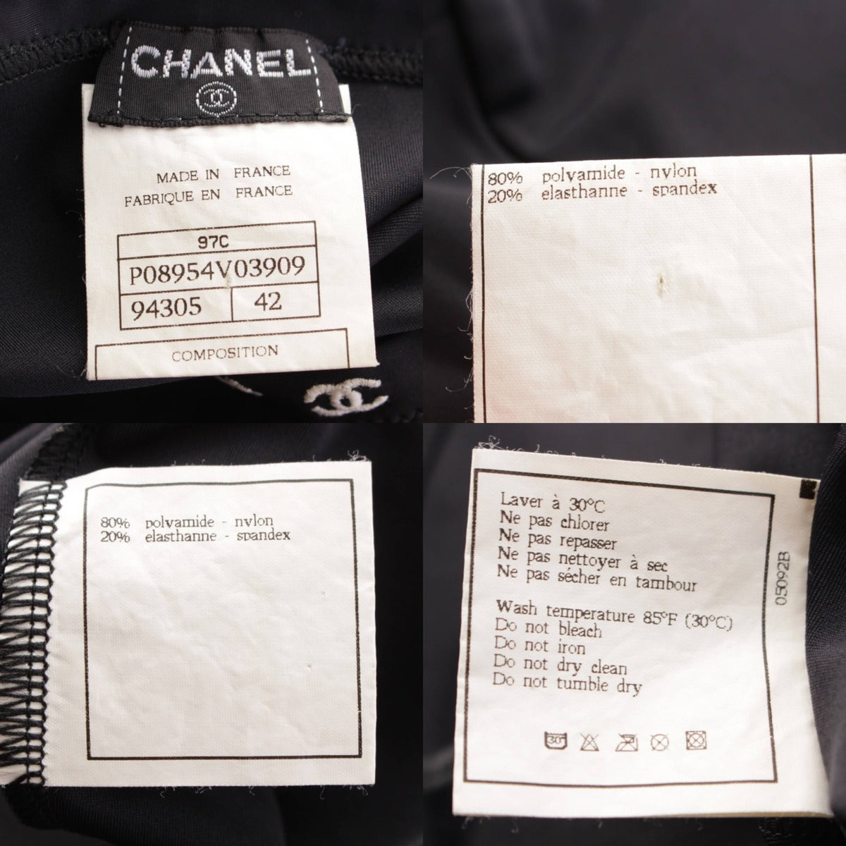 CHANEL 97C COCO Mark Maillot Nylon Short Sleeve Top Cut P08954 black 42