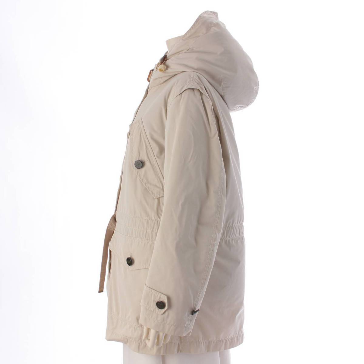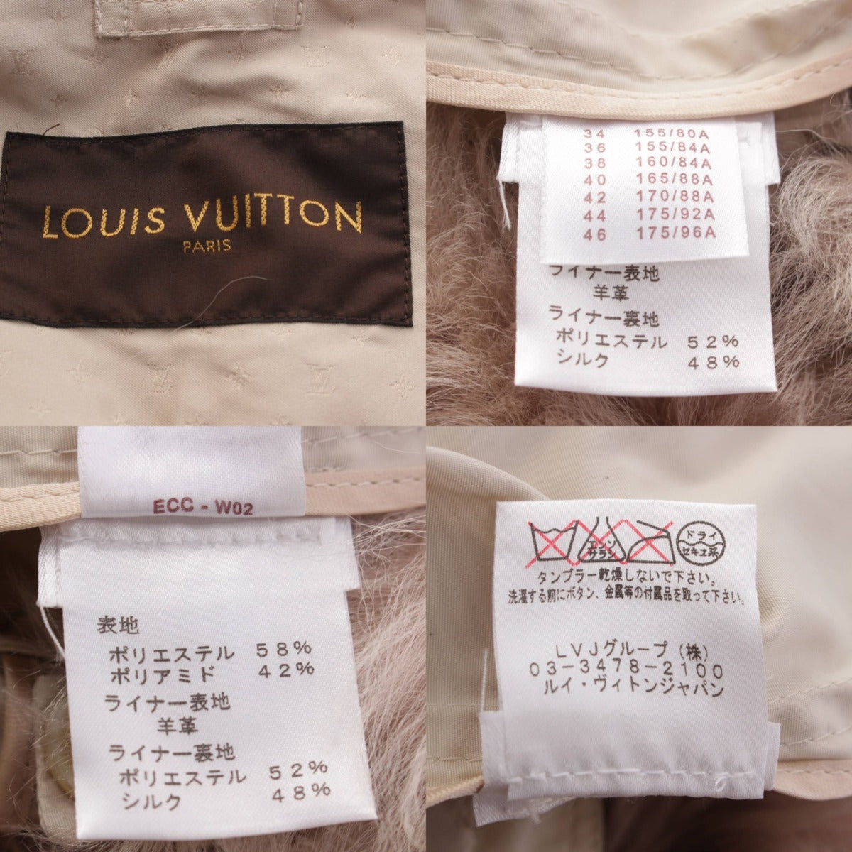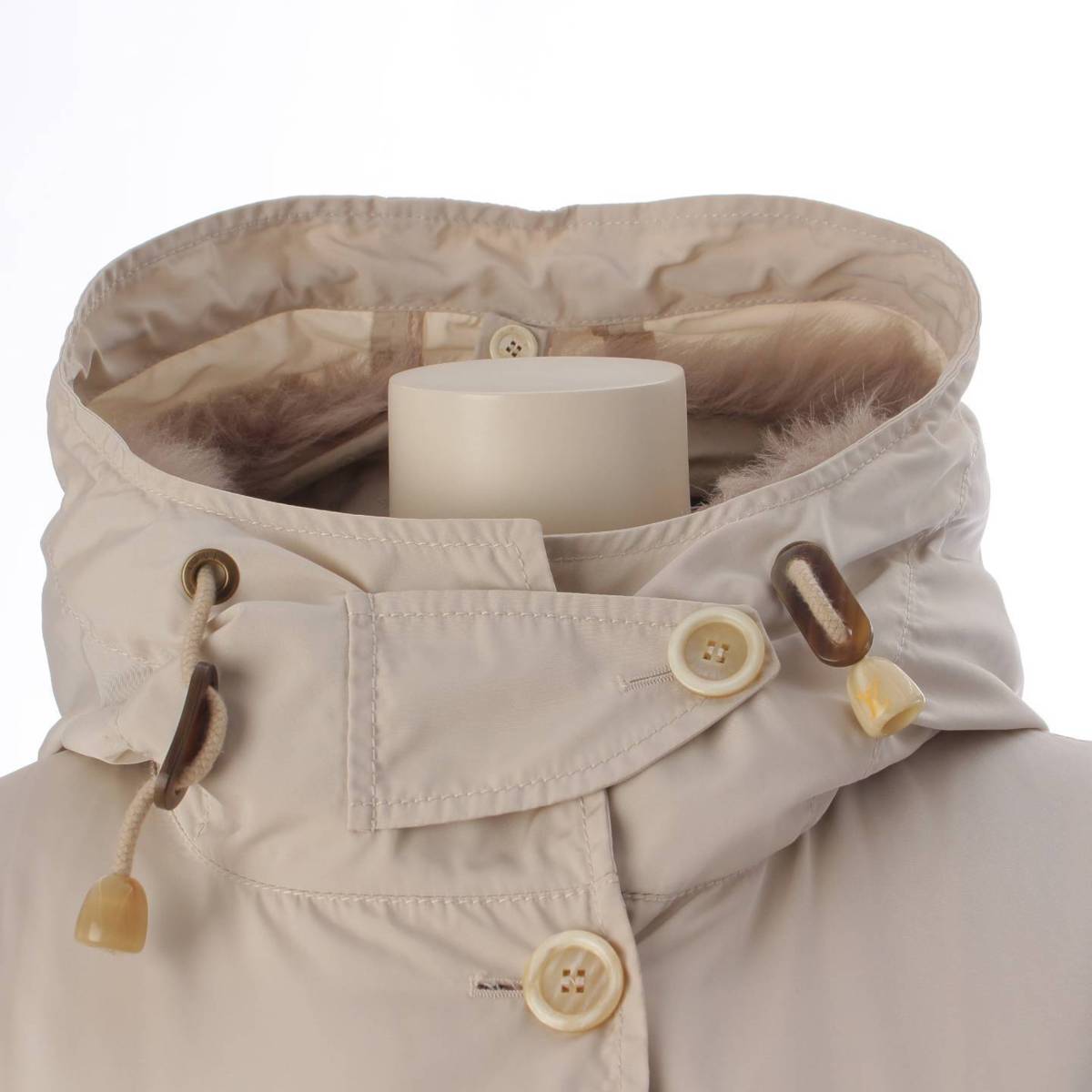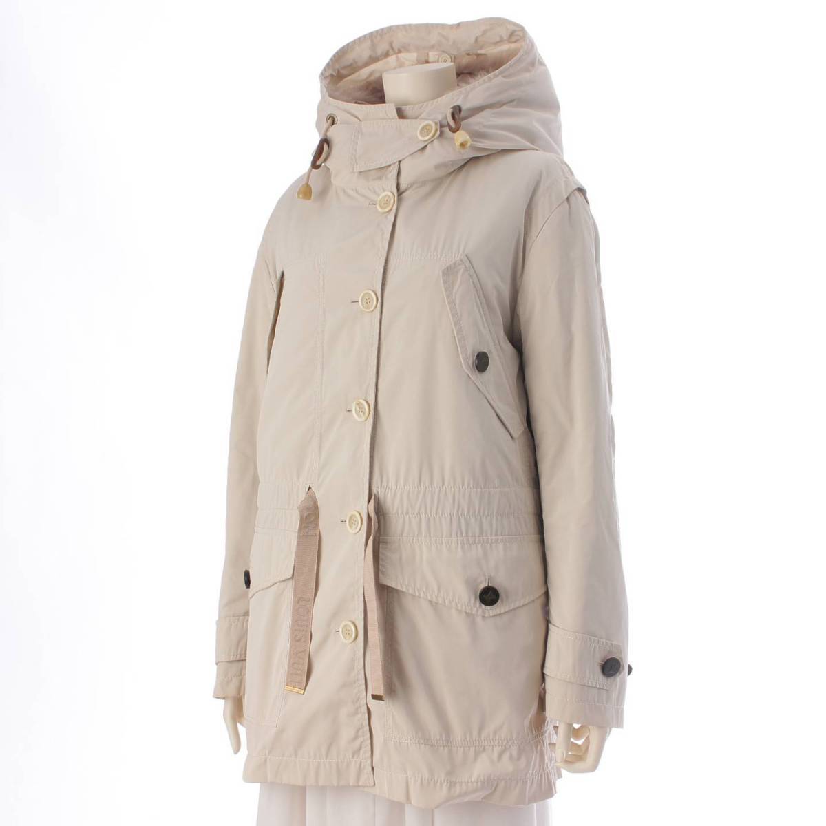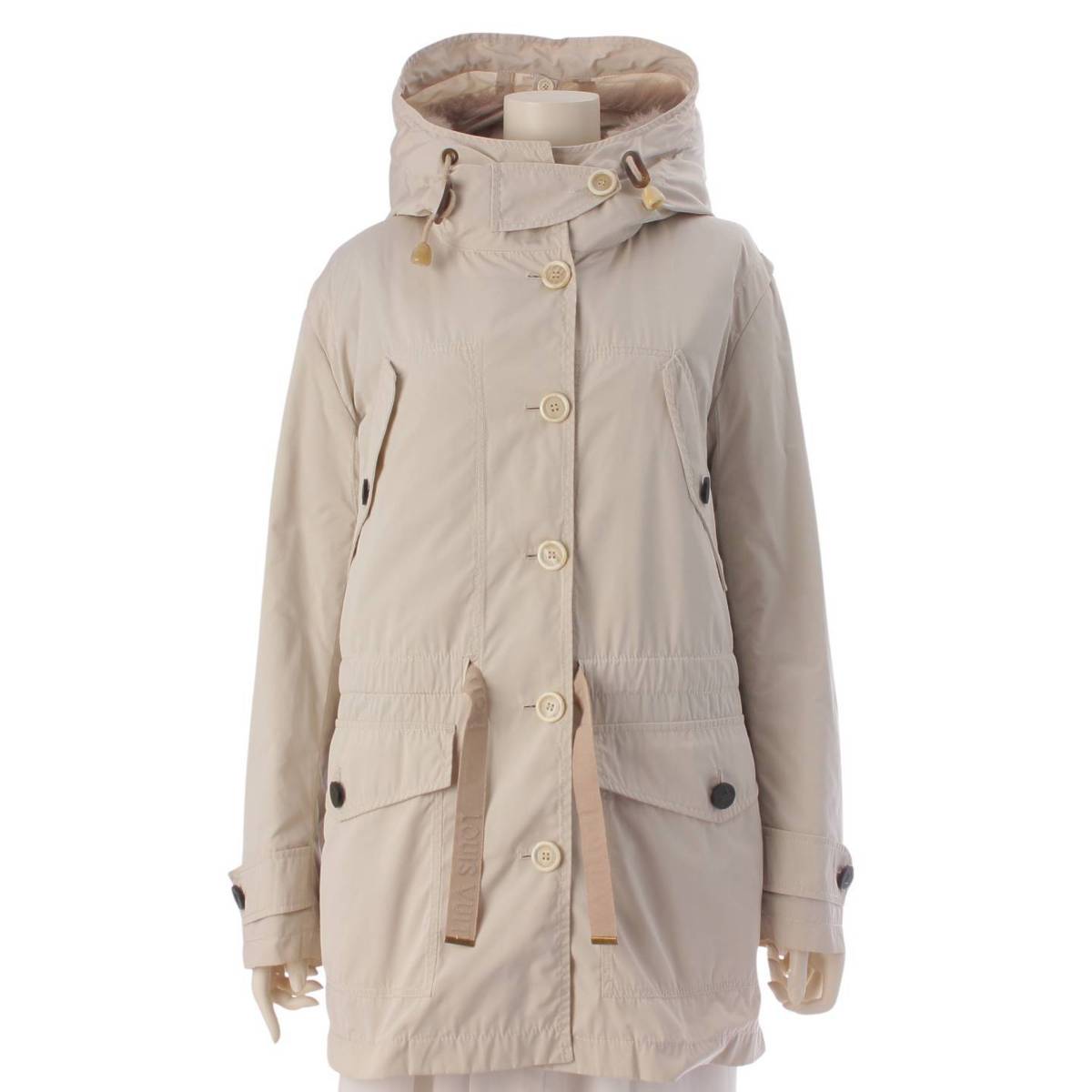 [Louis Vuitton] Louis Vuitton Logo Tape Fur Lined Nylon Hooded Jacket Coat Beige 38 [Used] [Authenticated/Genuine Product Guaranteed] 208057