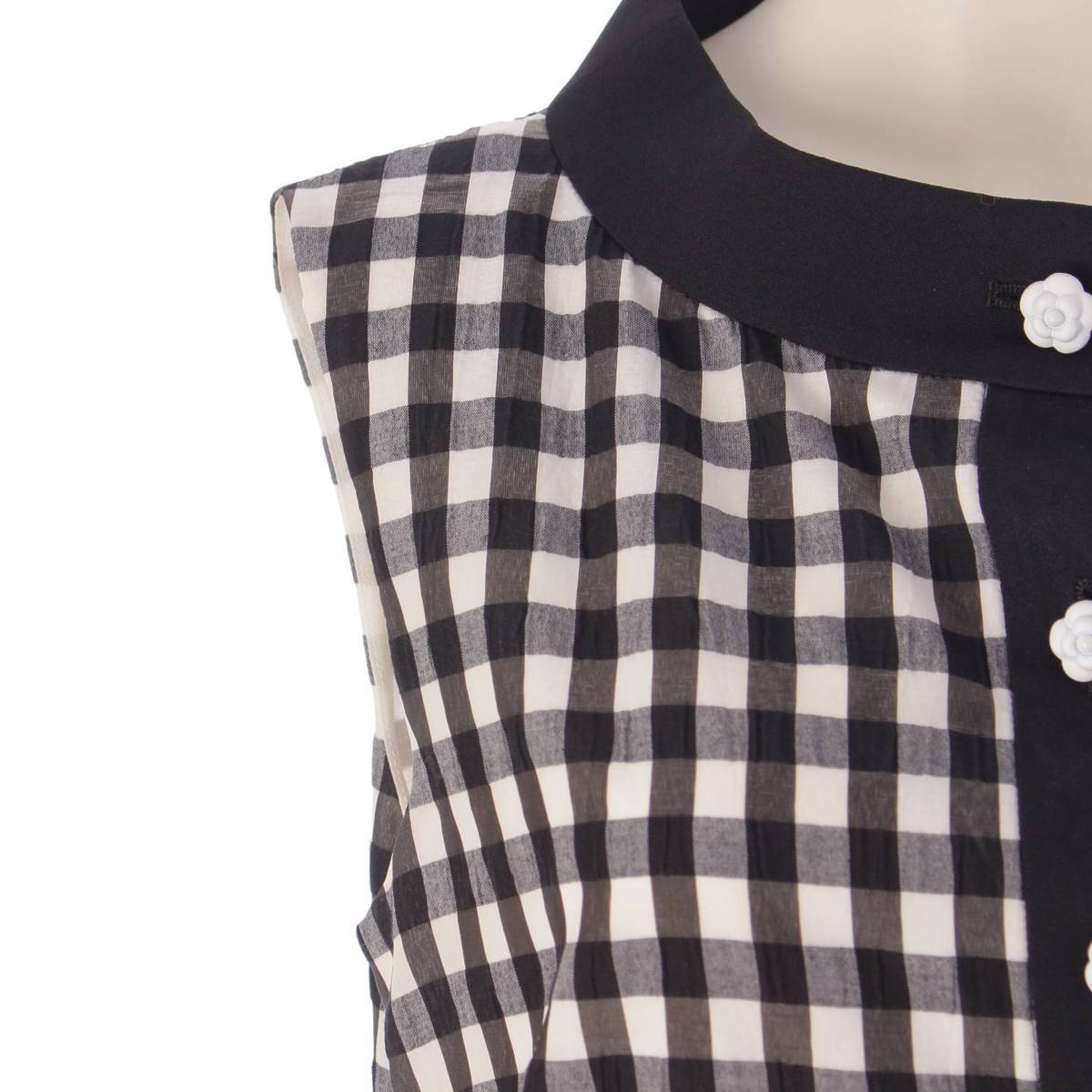 ELNEST CREATIVE ACTIVITY 23 years Sleeveless Gingham Check Flower one piece White black 38
