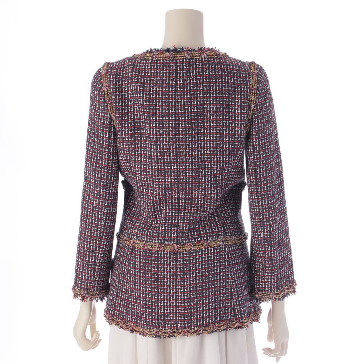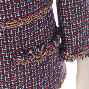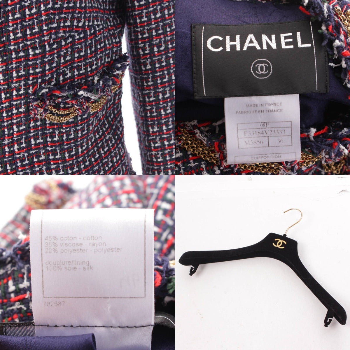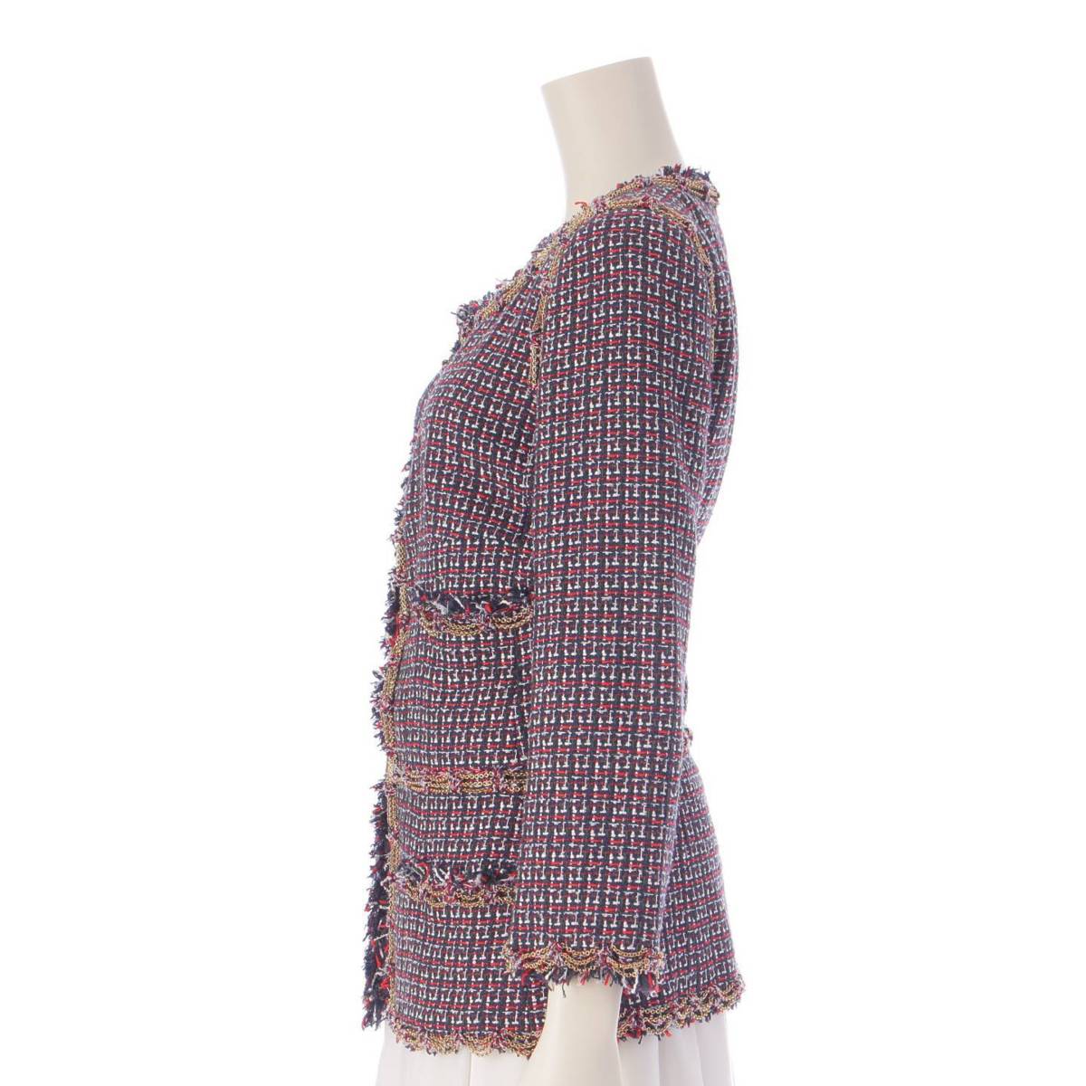 [Chanel] Chanel 08P COCO Mark Emblem Chain Tweed Jacket P33184 Navy Red 36 [Used] [Authenticated and Guaranteed Authentic] 208370
