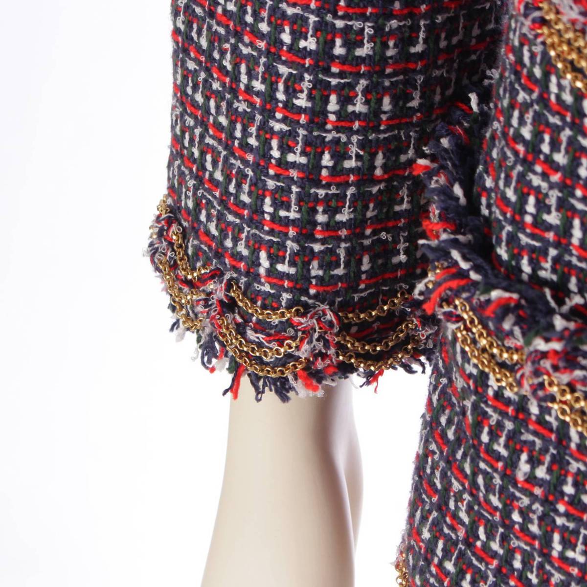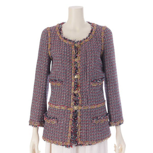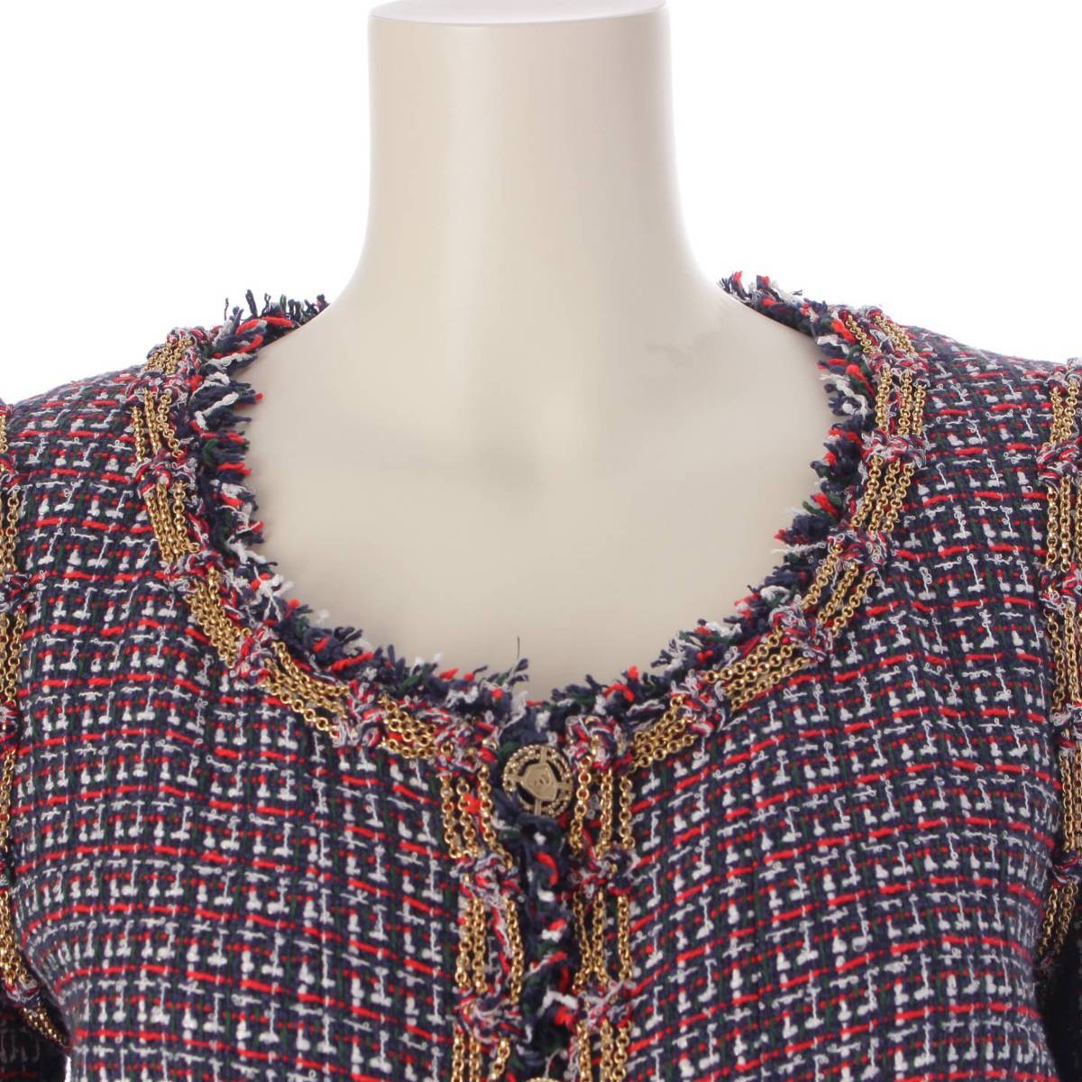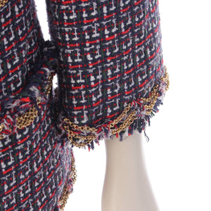 [Chanel] Chanel 08P COCO Mark Emblem Chain Tweed Jacket P33184 Navy Red 36 [Used] [Authenticated and Guaranteed Authentic] 208370