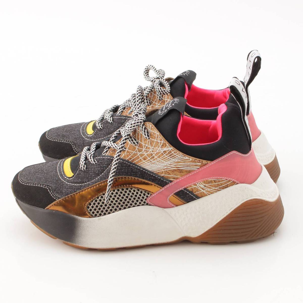 [Stella McCartney] Stella McCartney Eclipse faux leather low-cut sneakers, black x pink x beige, size 37 [Used] [Authenticated and guaranteed authentic] 208629