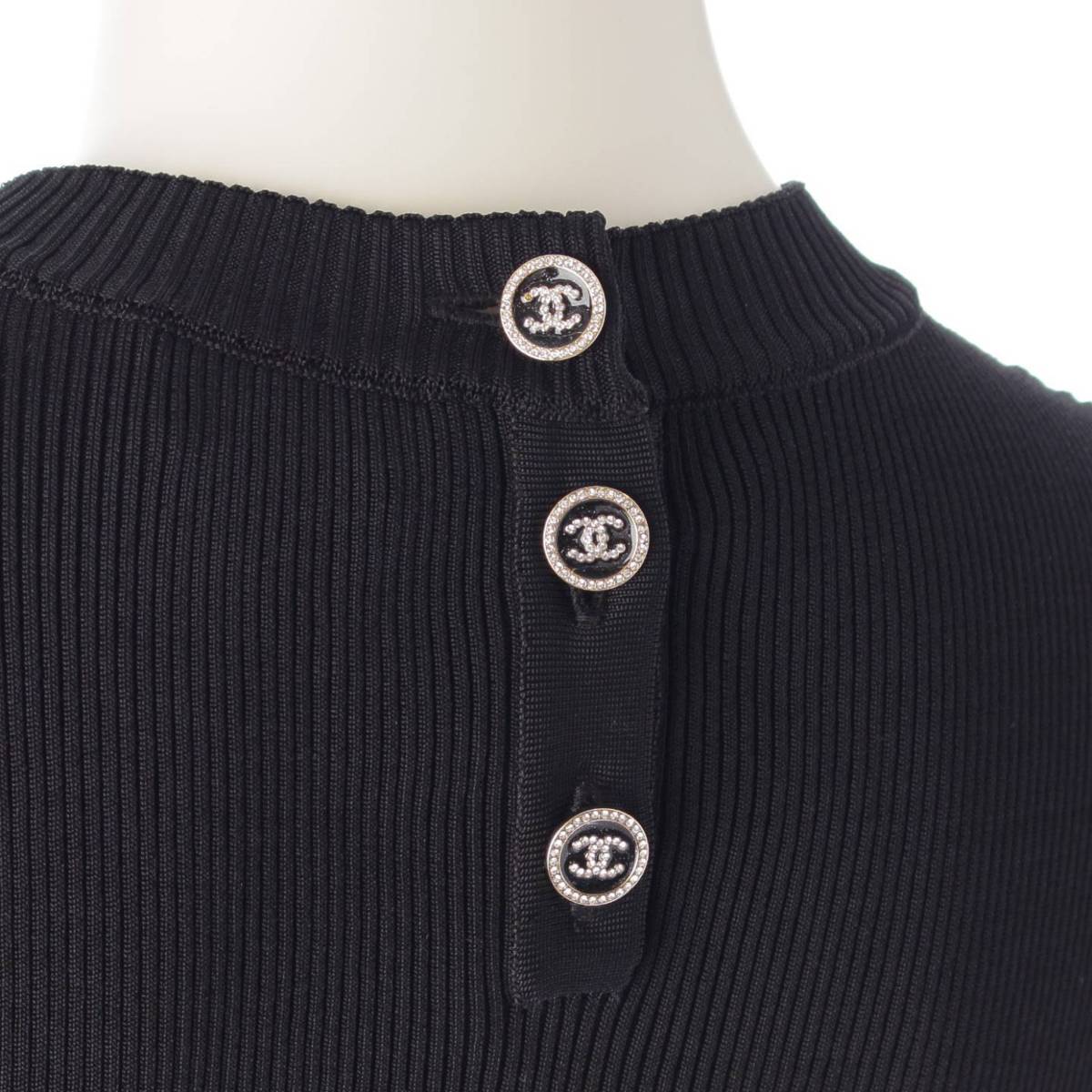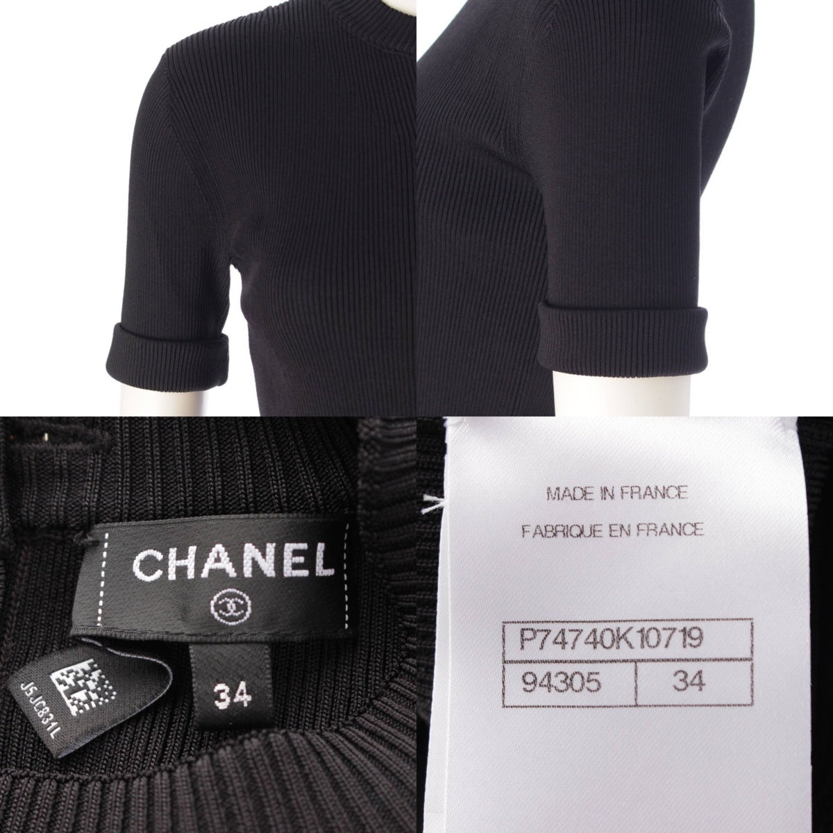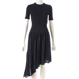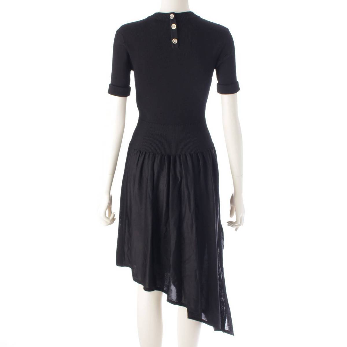 [Chanel] Chanel COCO Mark Mesh Knit Asymmetrical Dress P74740 Black 34 [Used] [Authenticated and Guaranteed Authentic] 209680
