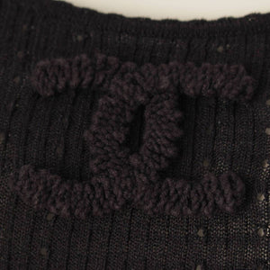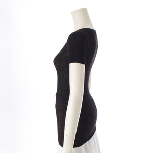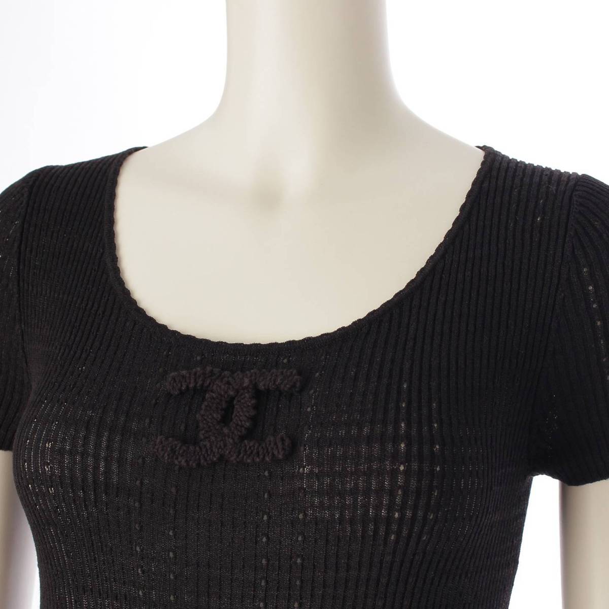 [Chanel] Chanel 09P COCO Mark Ribbon Ribbed Knit Cut and Sew Knit Top P35183 Black 34 [Used] [Authenticated and Guaranteed Authentic] 210348