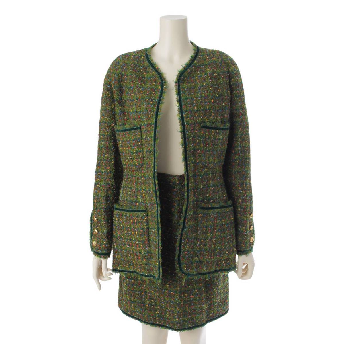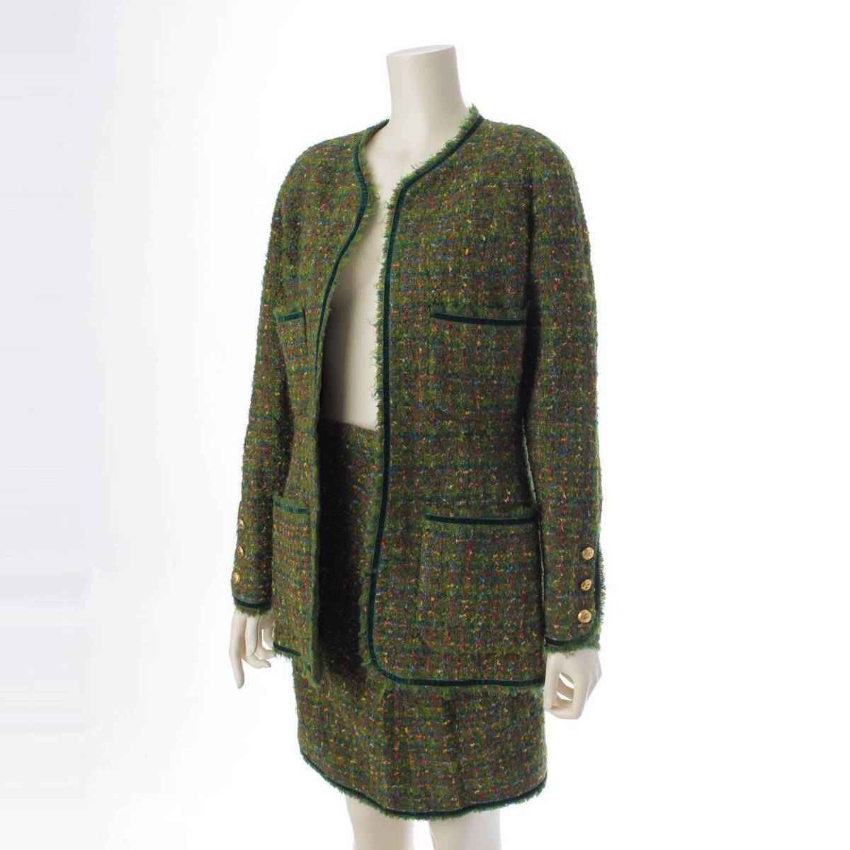 [Chanel] Chanel 1988 Vintage Tweed 4 Pocket Set Up Suit Green Size 40 [Used] [Authenticated and Guaranteed Authentic] 210560