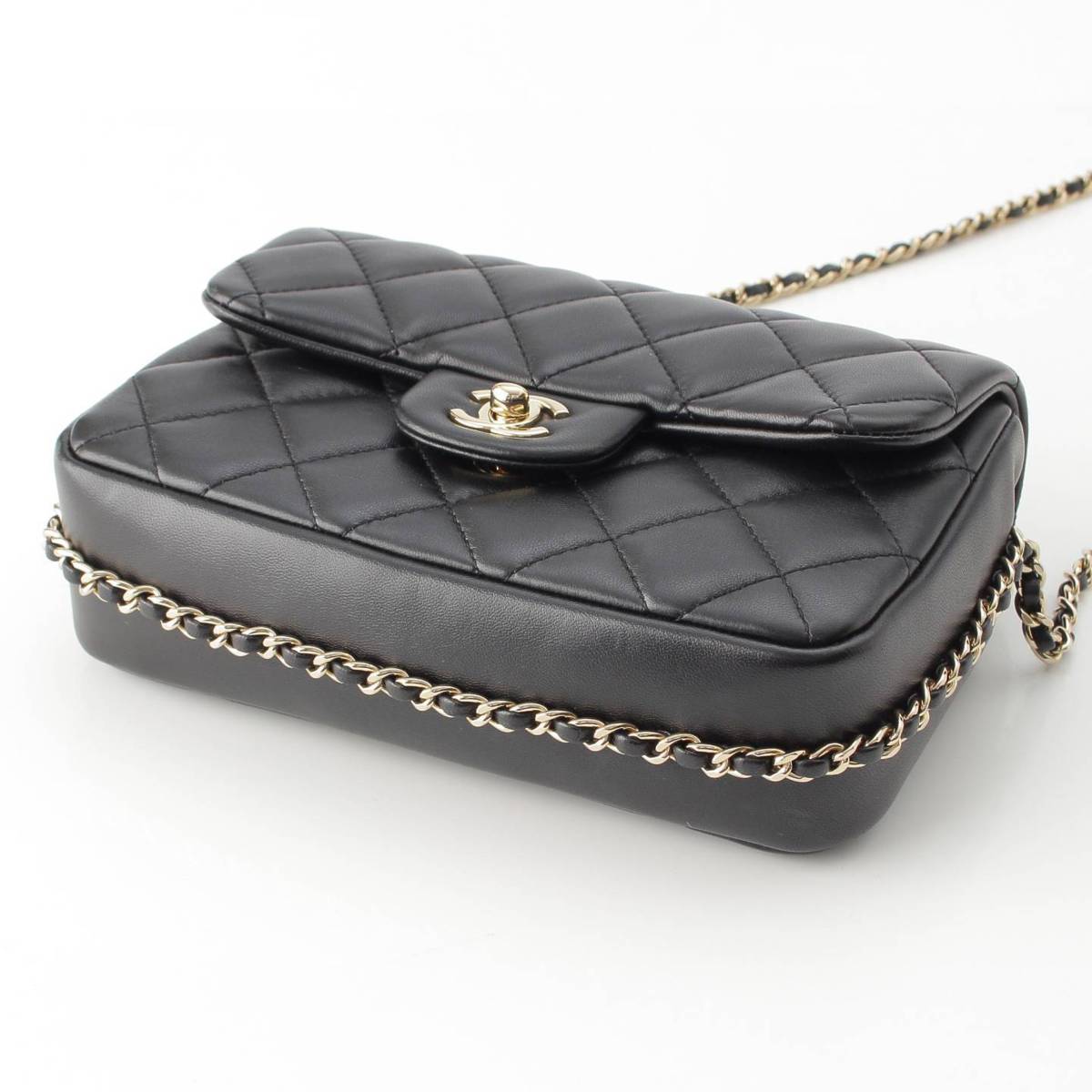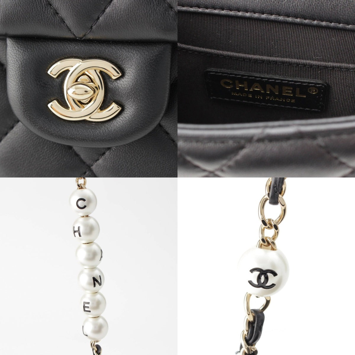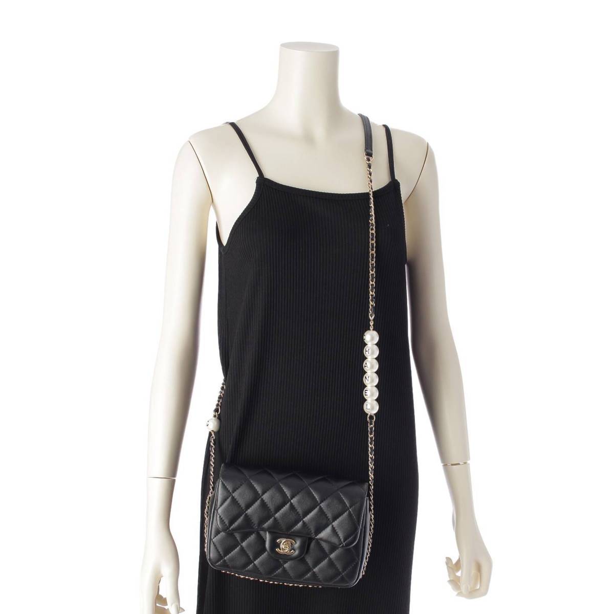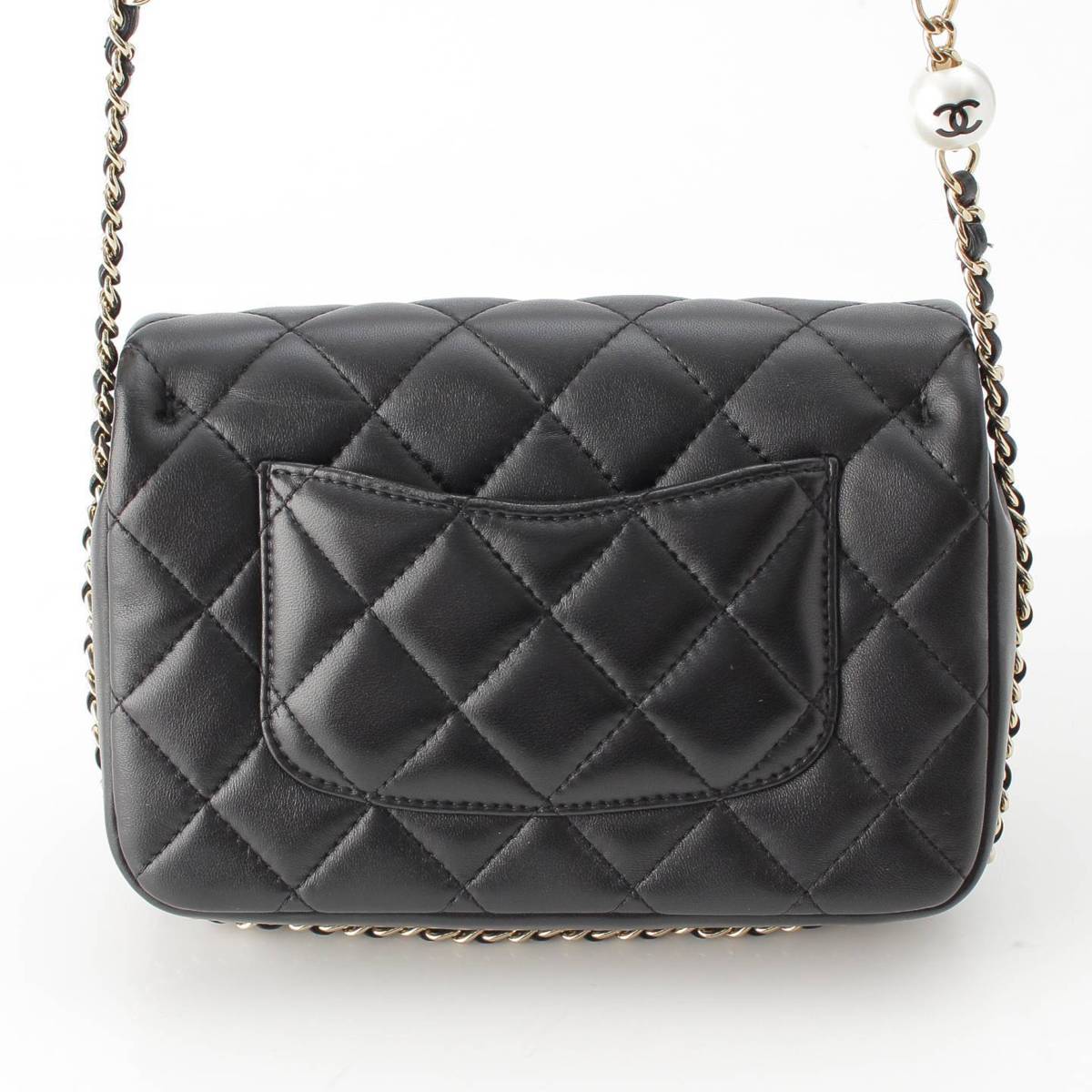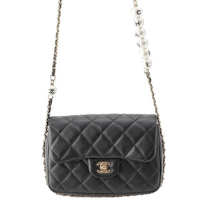 CHANEL 29s lambskin Matelasse Pearl Chain Shoulder Bag AS1533 black