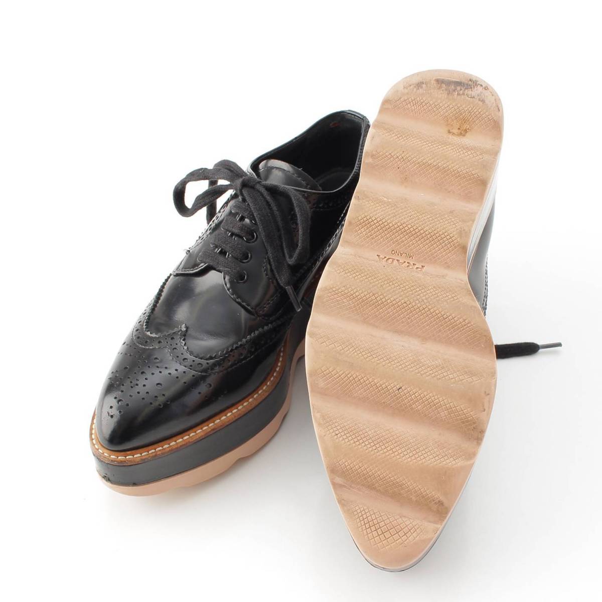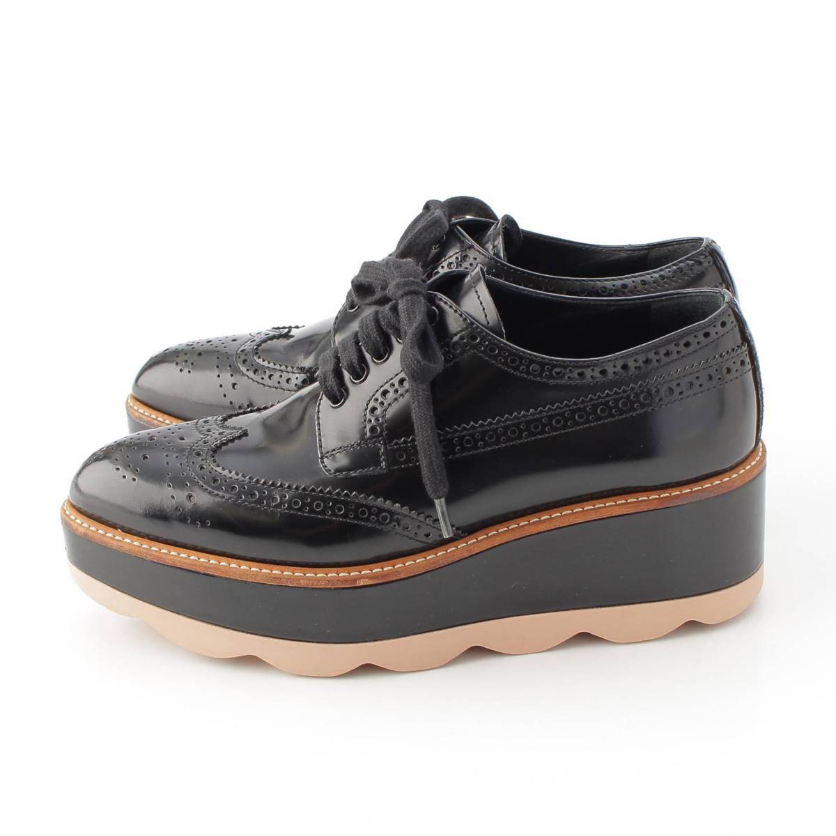 [PRADA] Prada platform wingtip leather lace-up shoes 1E935G black size 36 [Used] [Authenticated and genuine product guaranteed] 210848