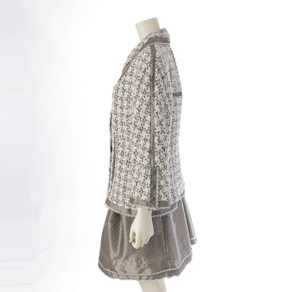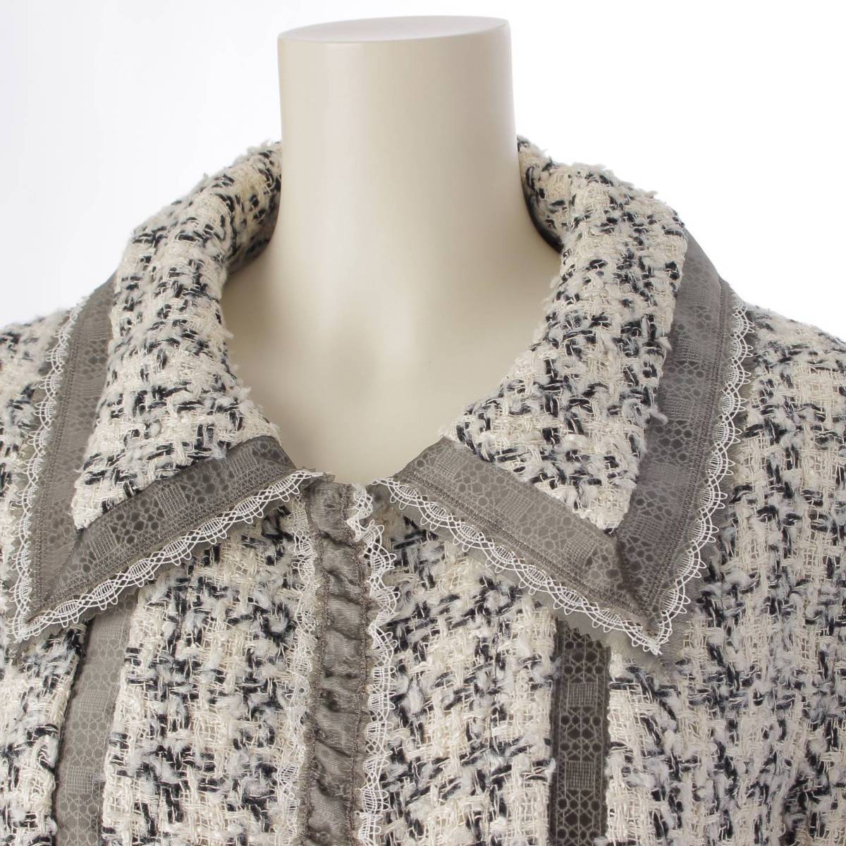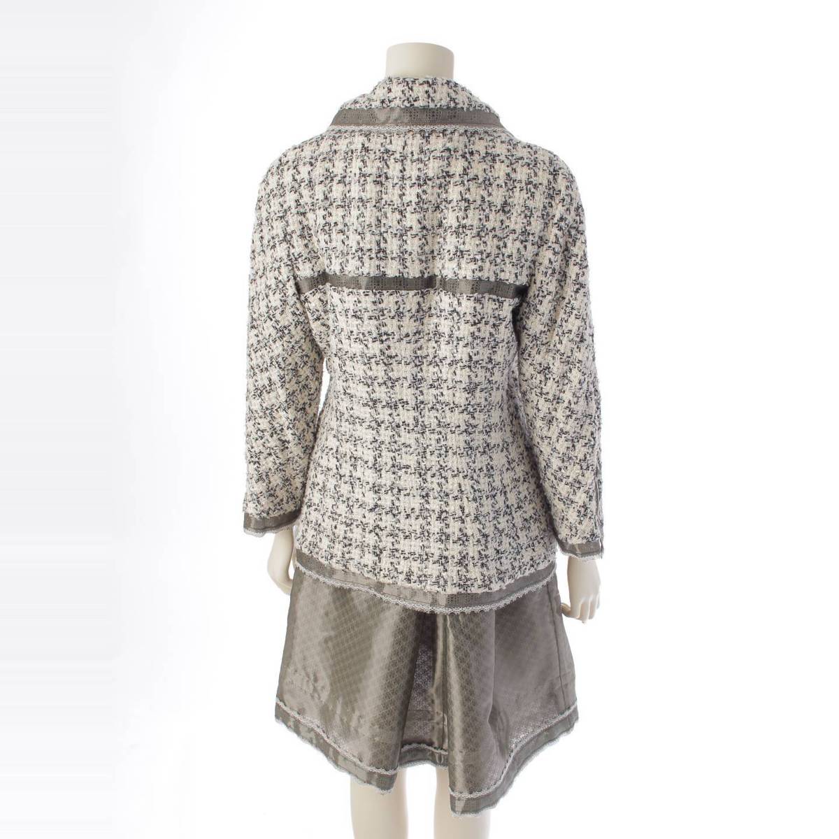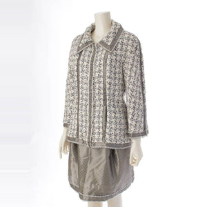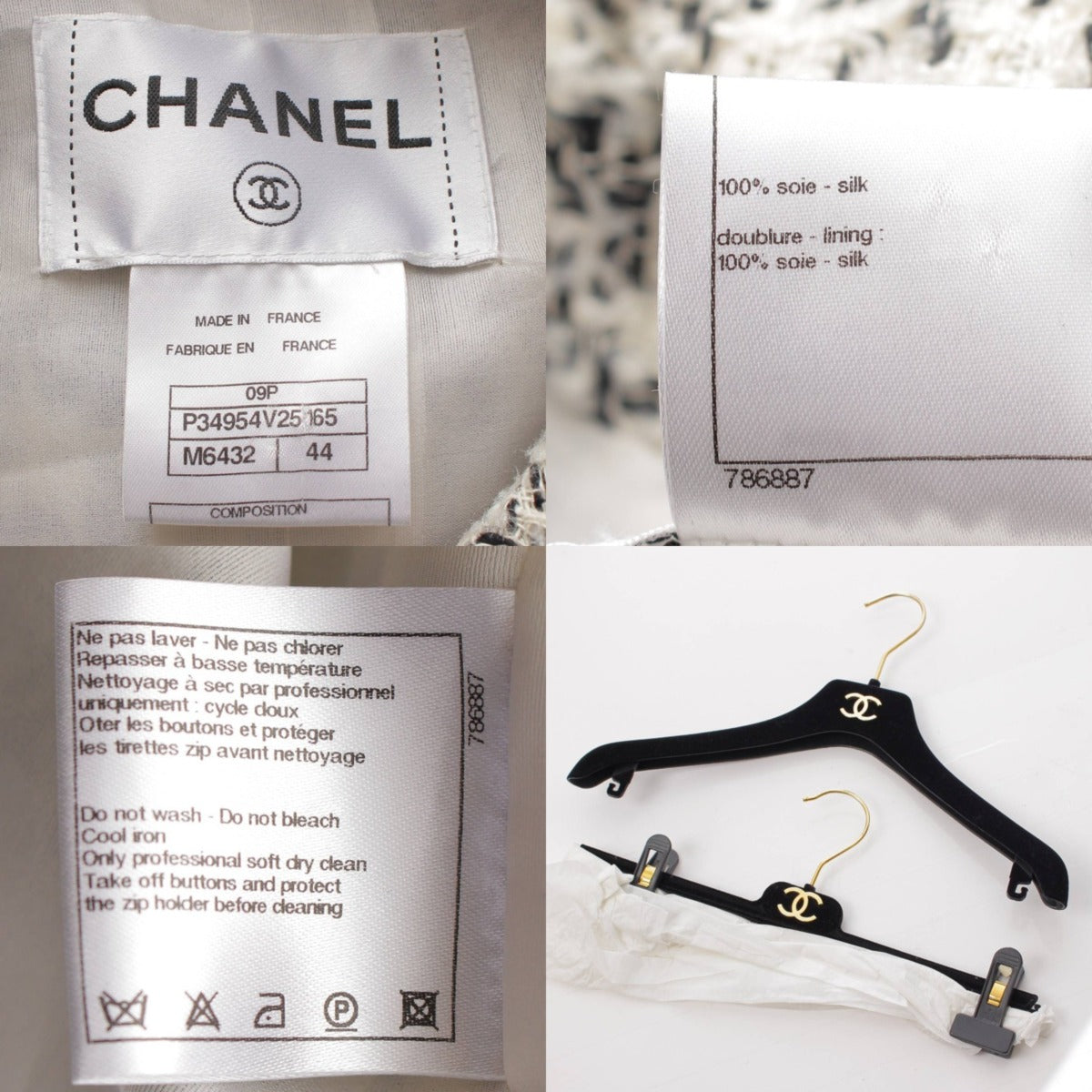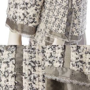 [Chanel] Chanel 09P Zip-up Setup Tweed Lace Skirt White Black 44/42 [Used] [Authenticated/Genuine Product Guaranteed] 210990