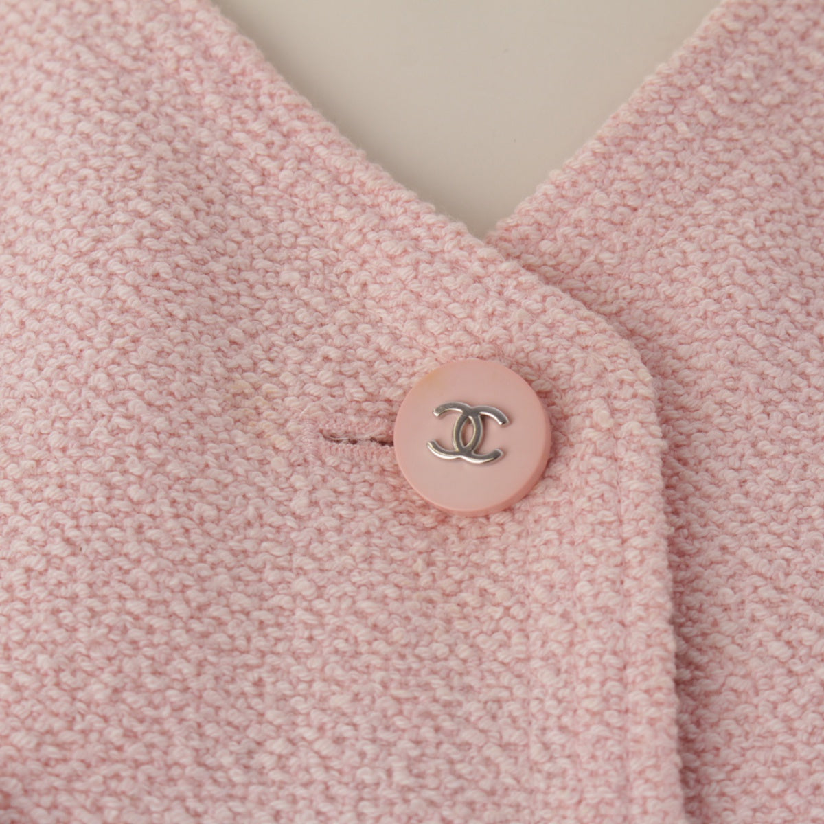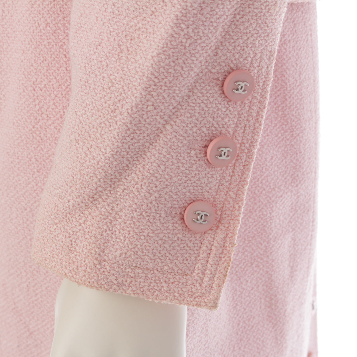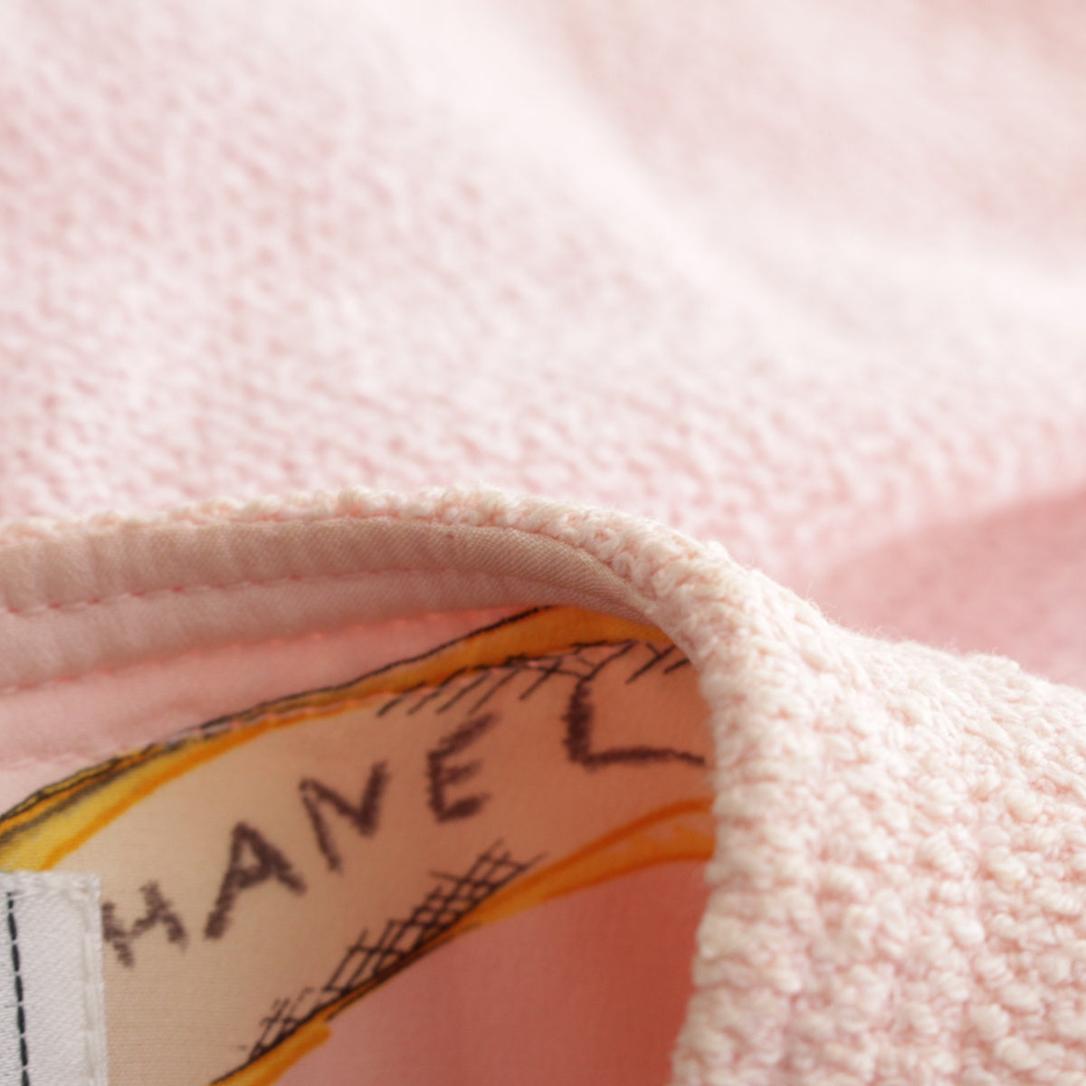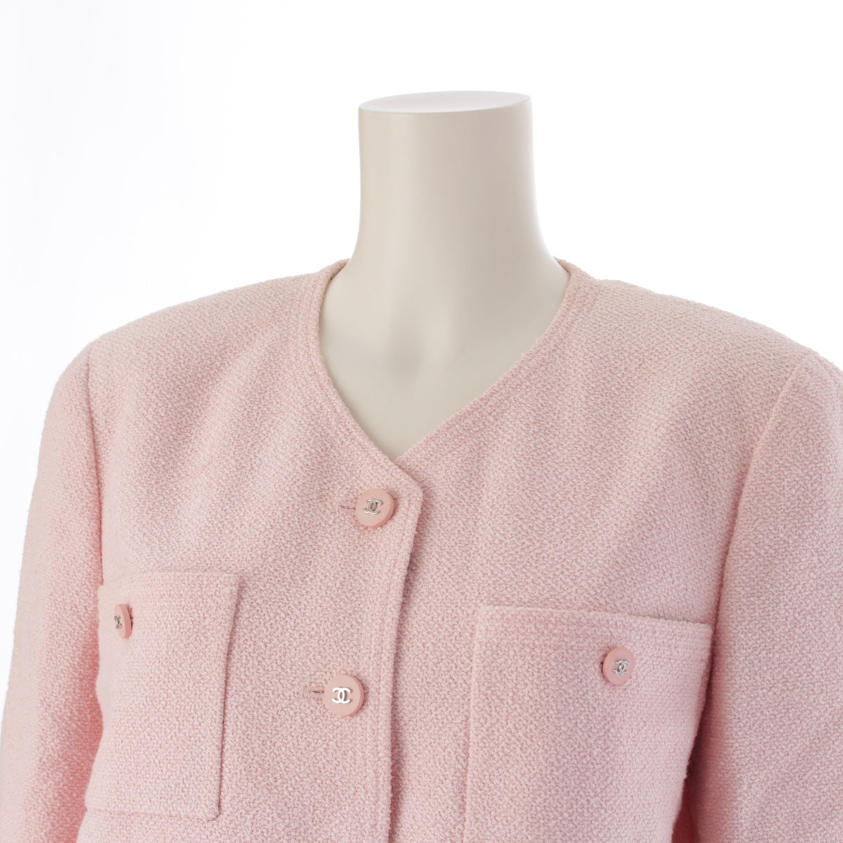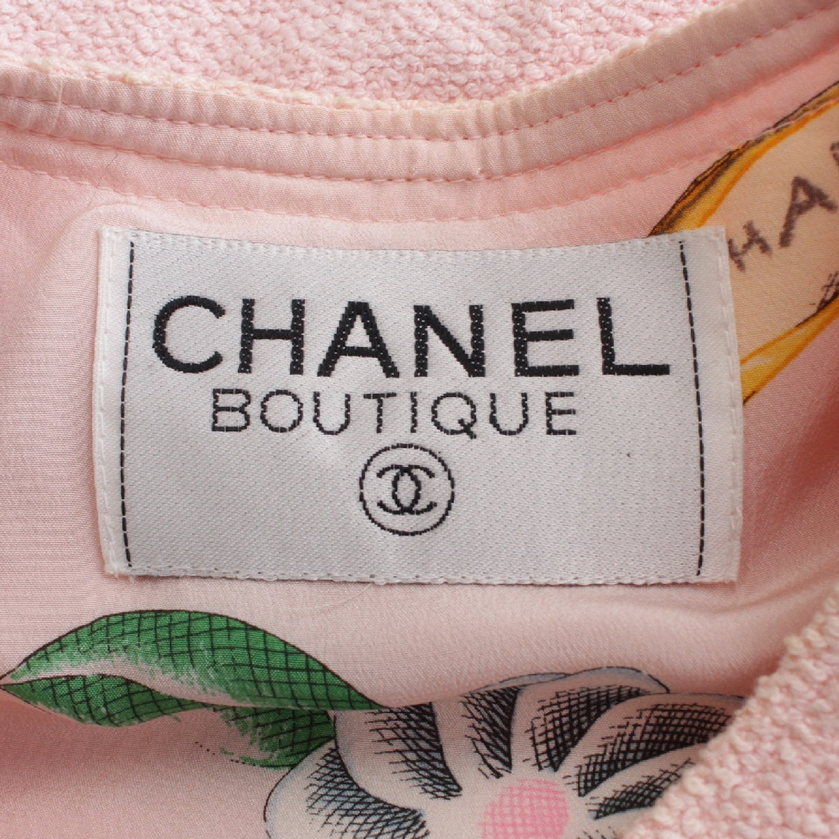 CHANEL 96P Cotton Tweed Vintage COCO Button Camellia Jacket Skirt setup Graffiti lining 4 pockets P07027 pink 40