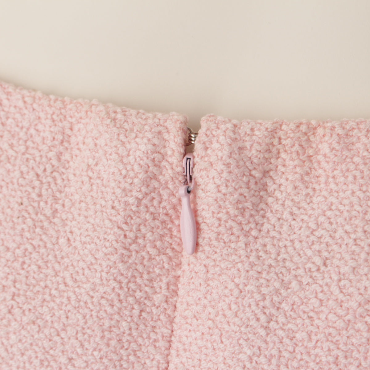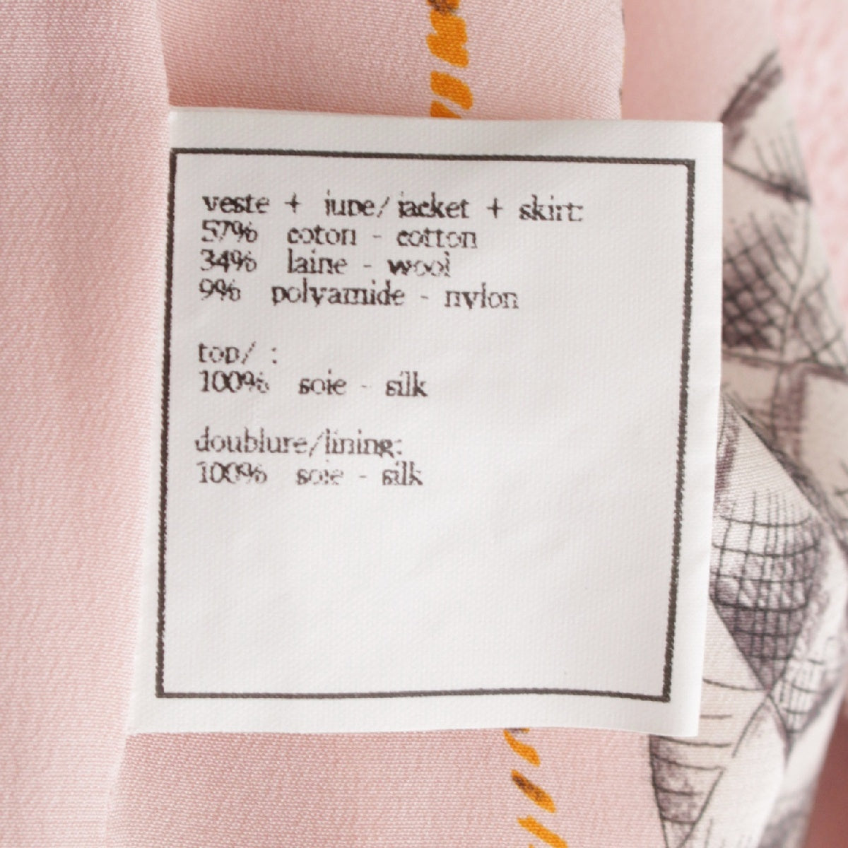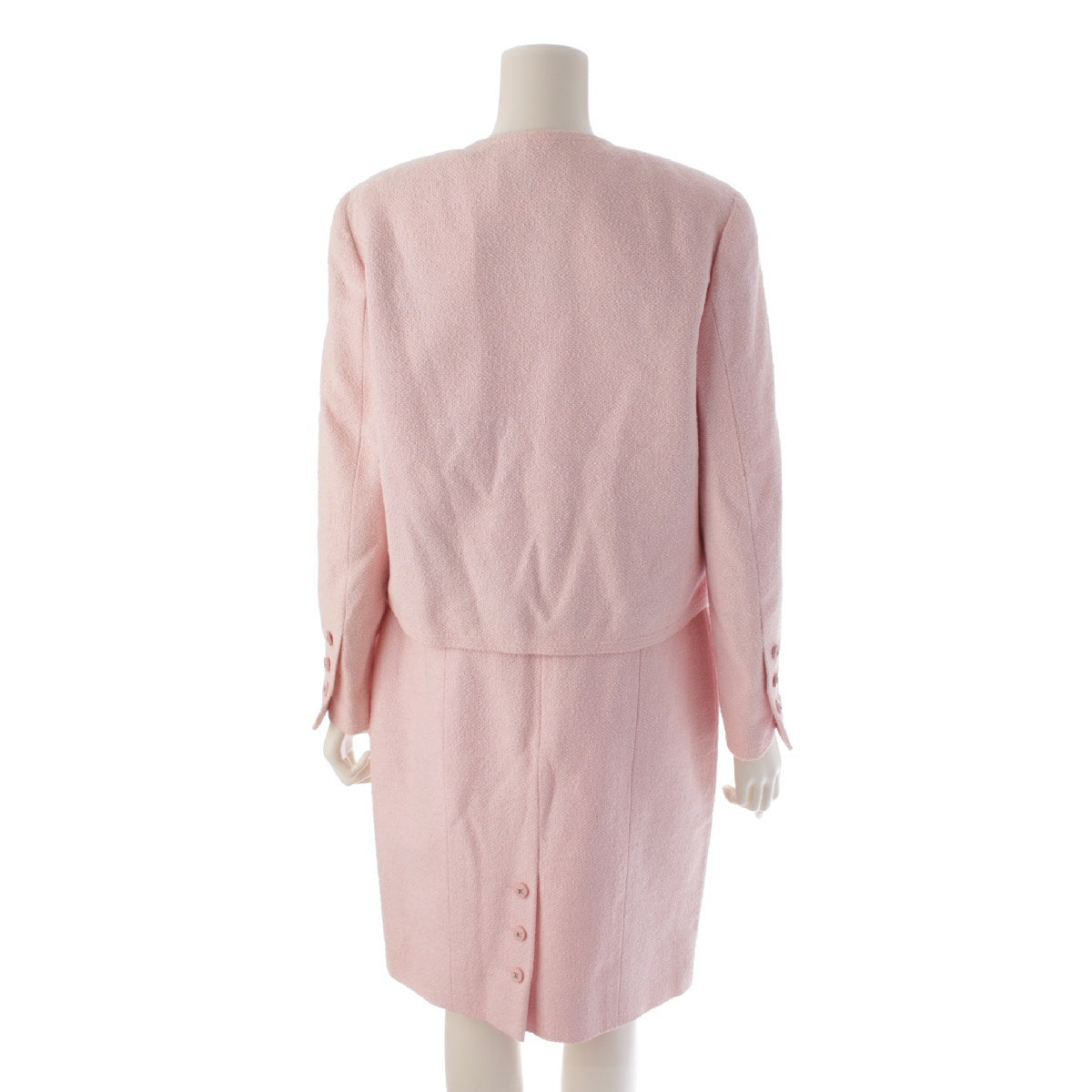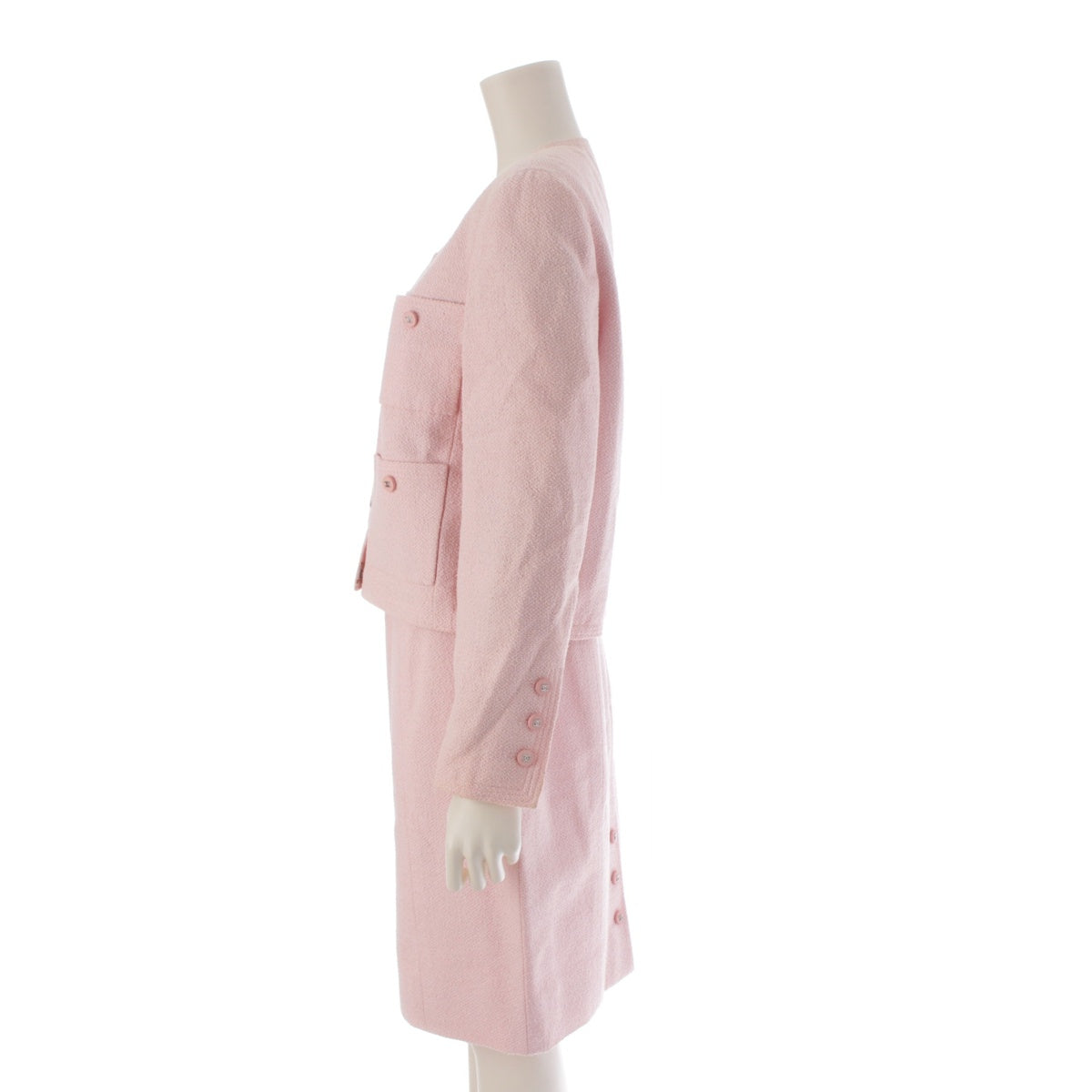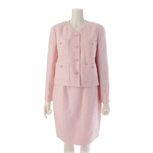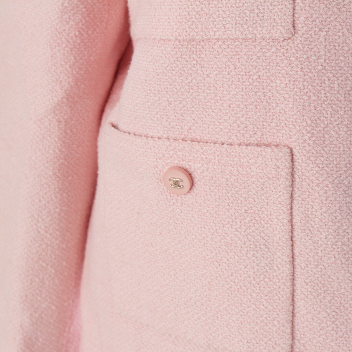 CHANEL 96P Cotton Tweed Vintage COCO Button Camellia Jacket Skirt setup Graffiti lining 4 pockets P07027 pink 40