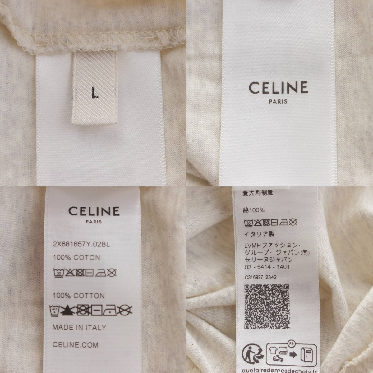 [Celine] Celine Men's Logo Screen Print Loose T-Shirt Top 2X681657 Beige L [Used] [Authenticated and Guaranteed Authentic] 212179