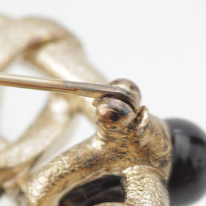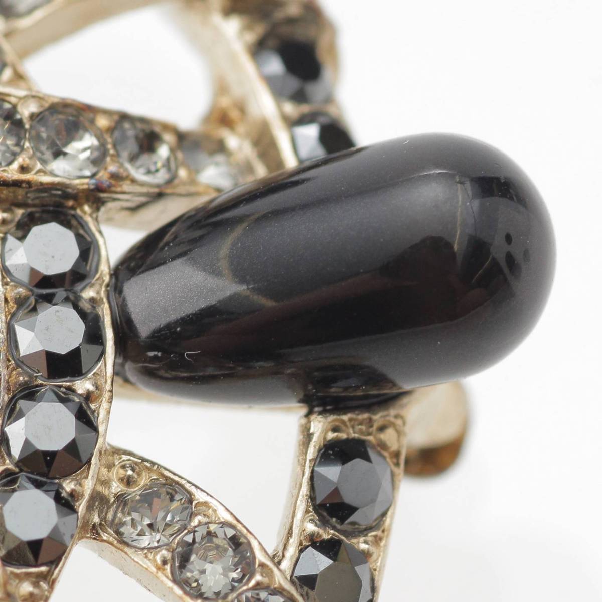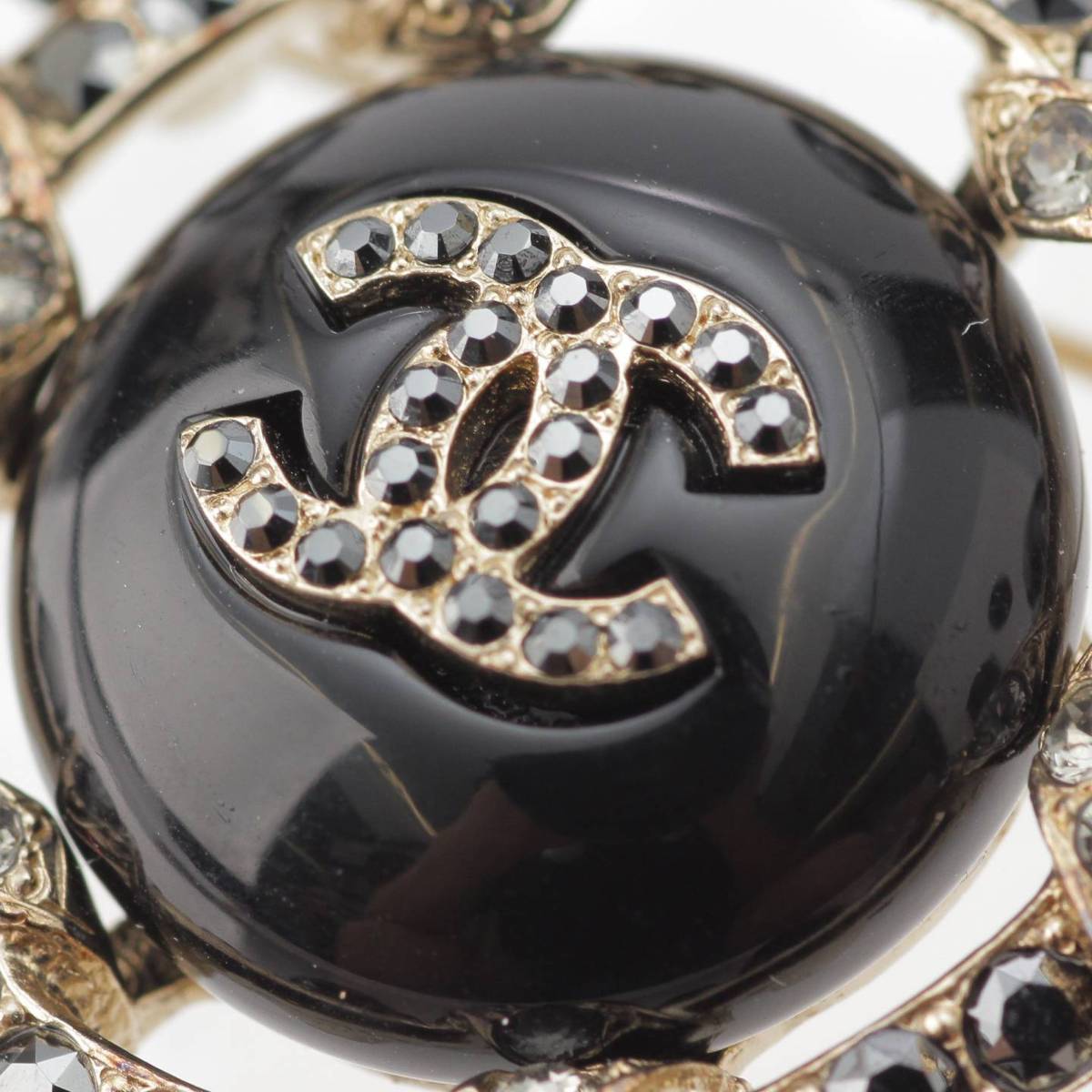 [Chanel] Chanel 18A COCO Mark Stone Crystal Round Brooch Gold Metal Black [Used] [Authenticated and Guaranteed Authentic] 212562