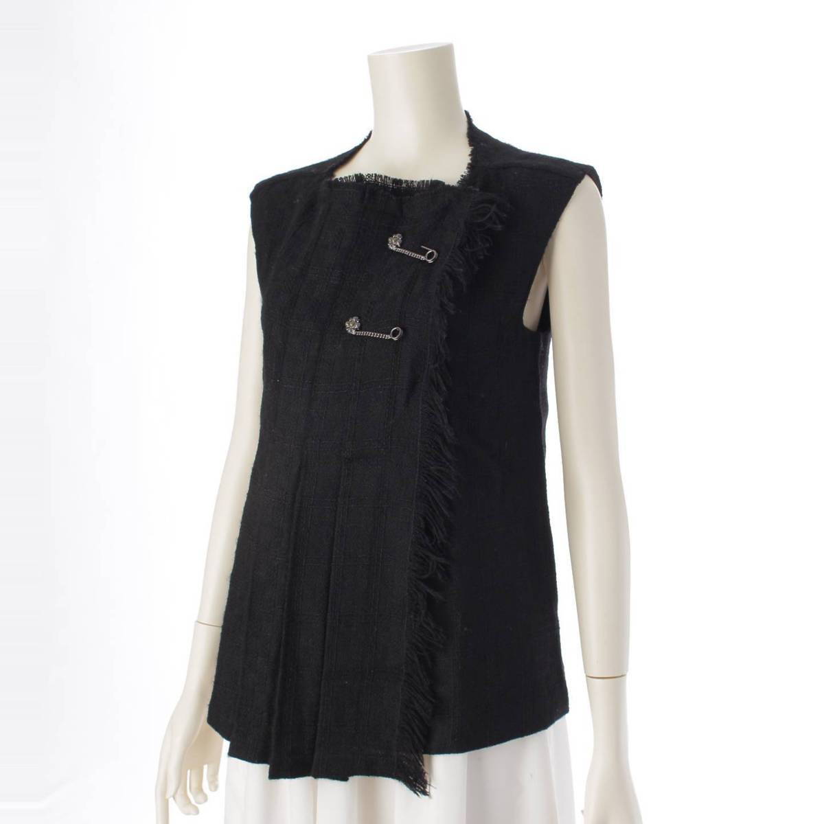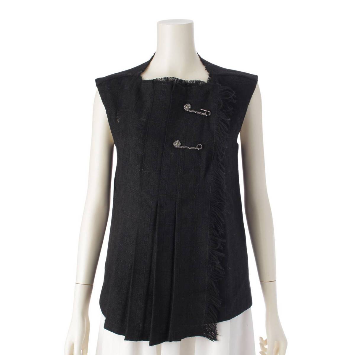 [Chanel] Chanel Clip Brooch Fringe Sleeveless Top P46324 Black 36 [Used] [Authenticated and Guaranteed Authentic] 212600