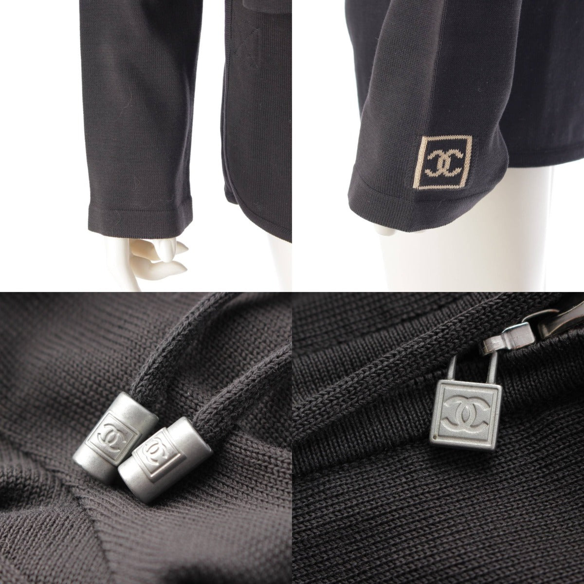 [Chanel] Chanel 03A Sport Cotton Hoodie & Shorts Set Black 40/34 [Used] [Authenticated & Guaranteed Authentic] 212808