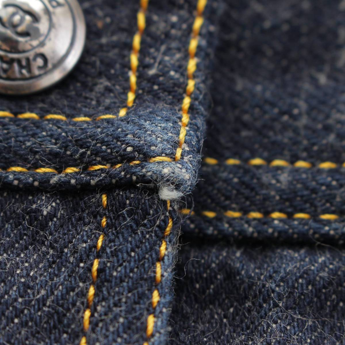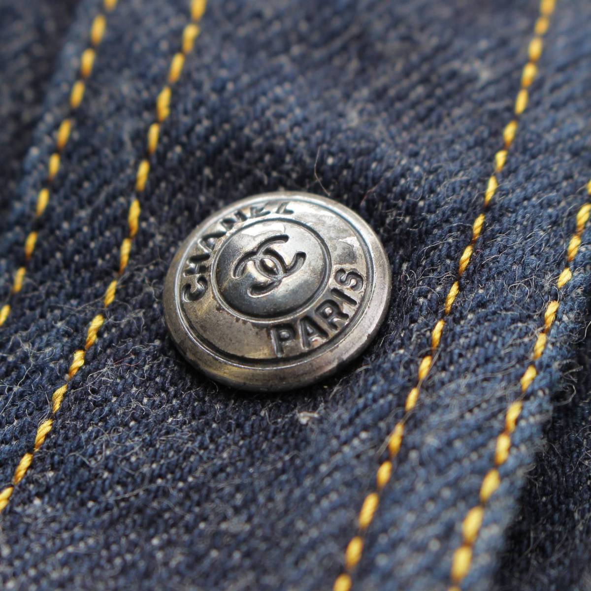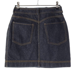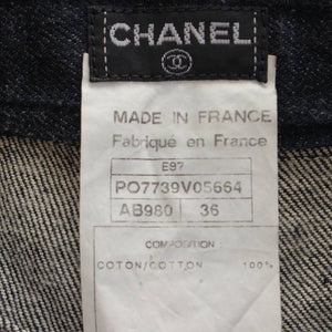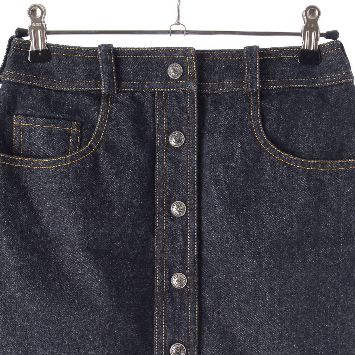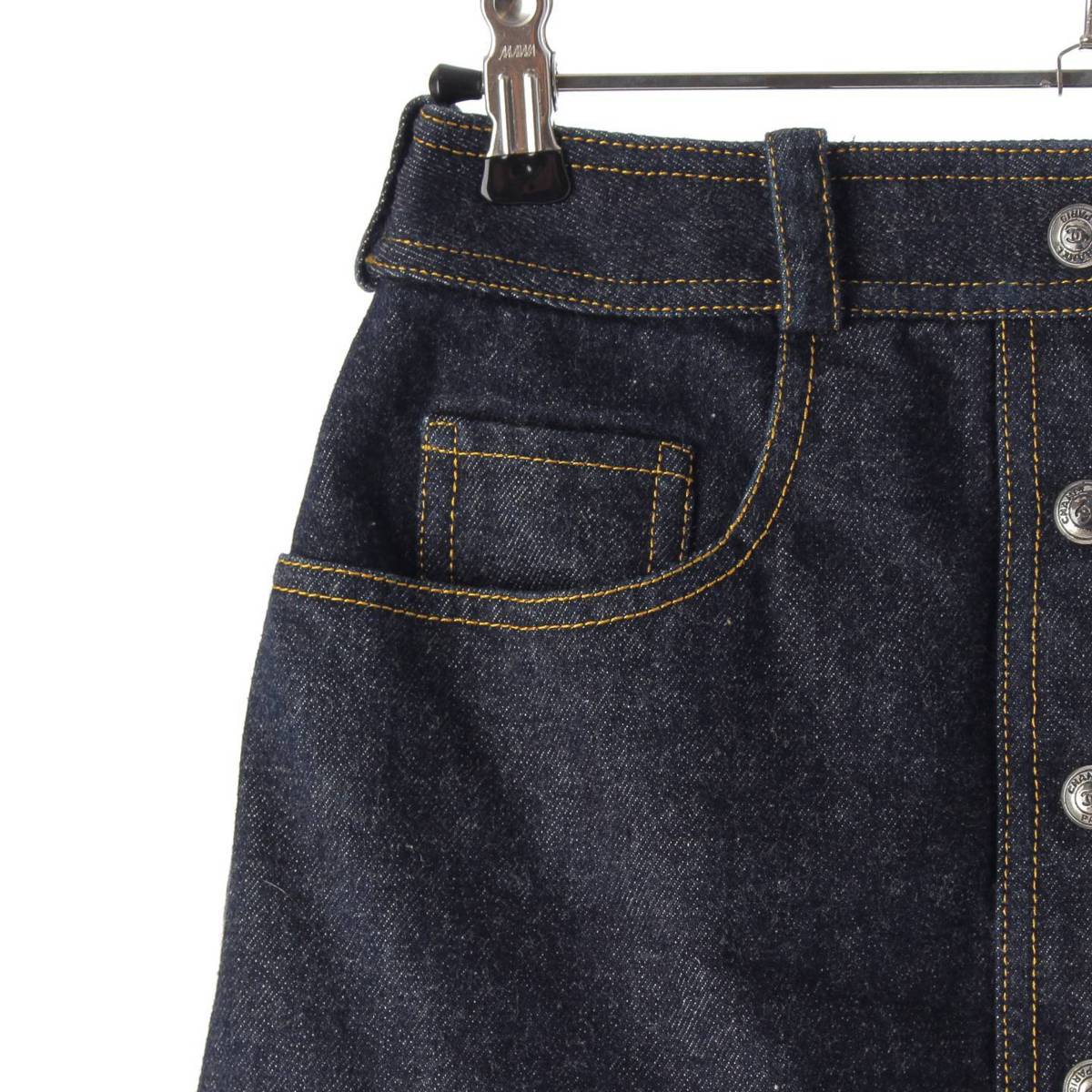 [Chanel] Chanel E97 COCO Button Stitch Denim Trapezoid Mini Skirt PO7739 Indigo 36 [Used] [Authenticated and Guaranteed Authentic] 212809