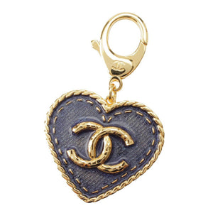 [Chanel] Chanel I24P COCO Mark Heart Denim Charm Keychain Gold [Used] [Authenticated/Genuine Product Guaranteed] 213109
