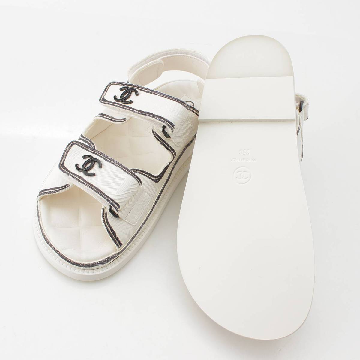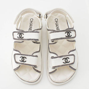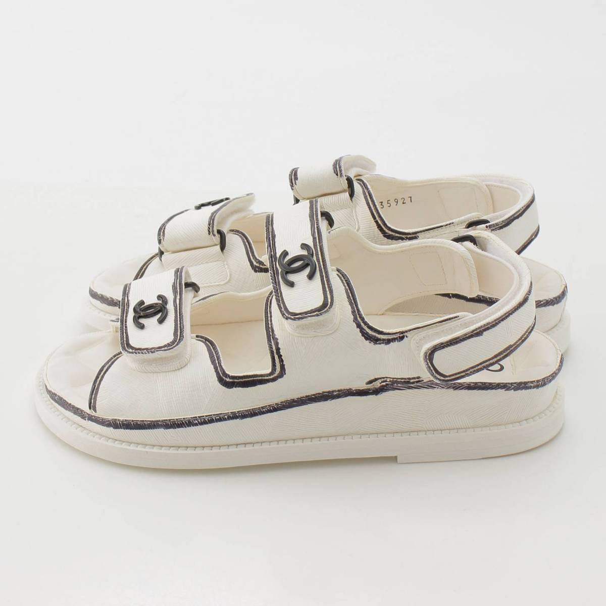 [Chanel] Chanel 22C CCCOCO Mark Comfort Velcro Sandals G35927 White x Black 35C [Used] [Authenticated and Guaranteed Authentic] 213186