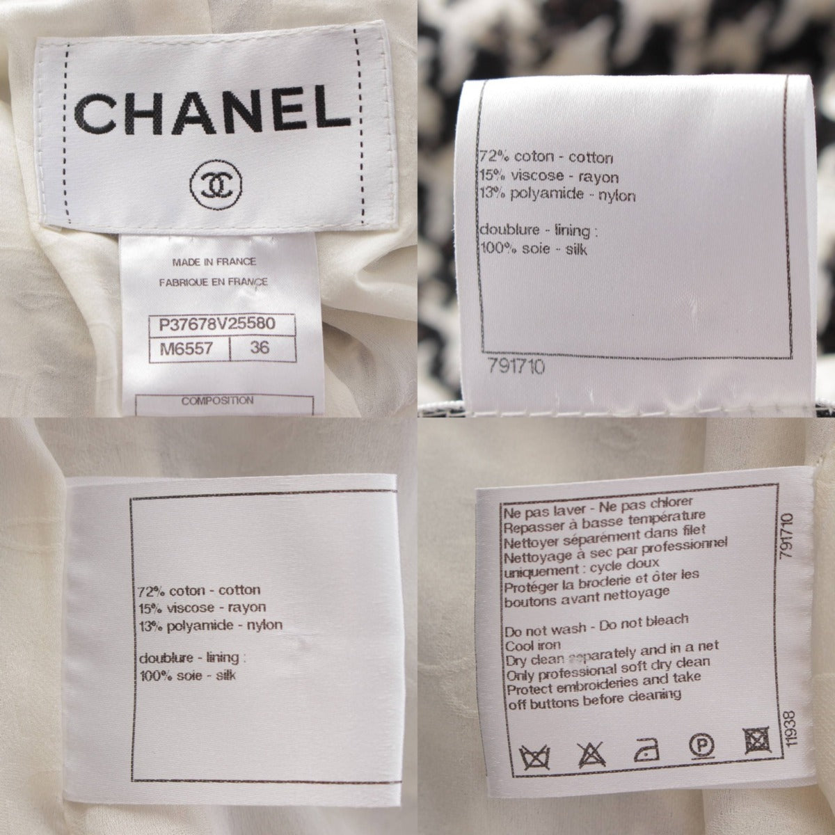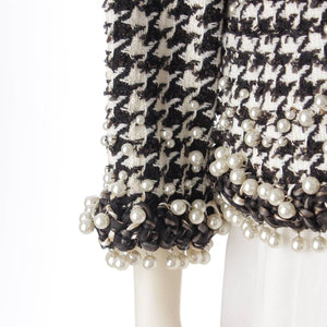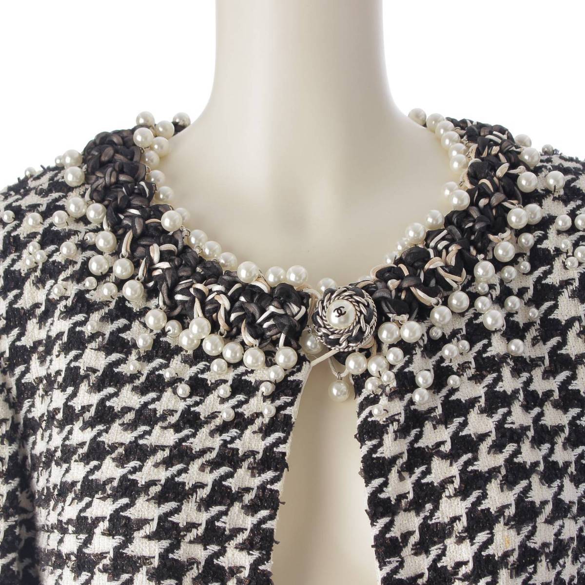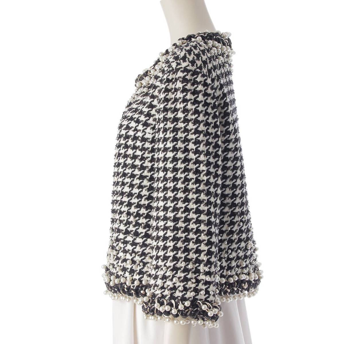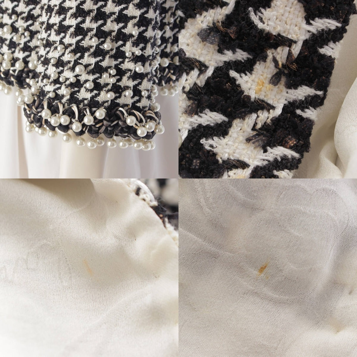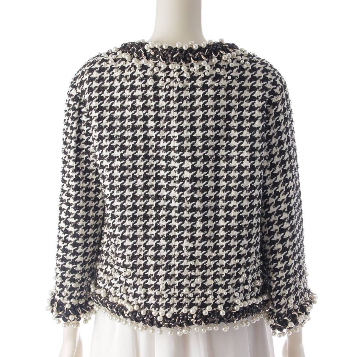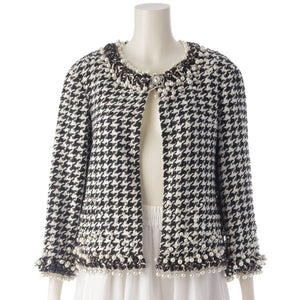 [Chanel] Chanel pearl no-collar houndstooth jacket P37678 black white monochrome 36 [Used] [Authenticated and genuine product guaranteed] 213282