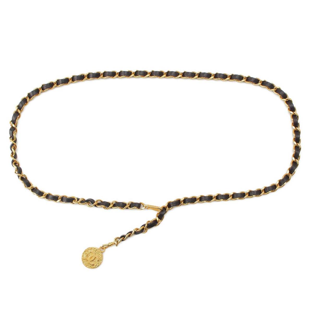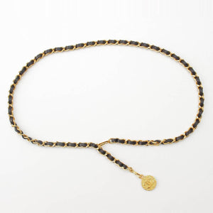 [Chanel] Chanel 1982 COCO Mark Leather Chain Belt Black Gold [Used] [Authenticated and Guaranteed Authentic] 213399