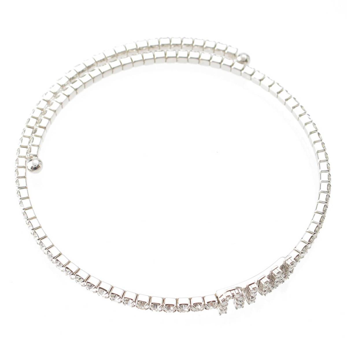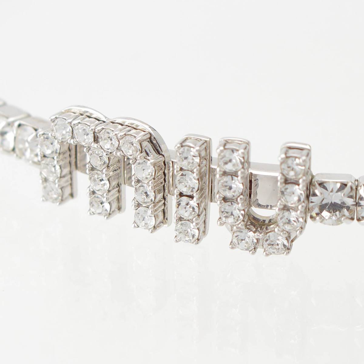 [Miu Miu] Miu Miu Logo Rhinestone Crystal Metal Choker Necklace 5JC871 Silver [Used] [Authenticated and Guaranteed Authentic] 213517