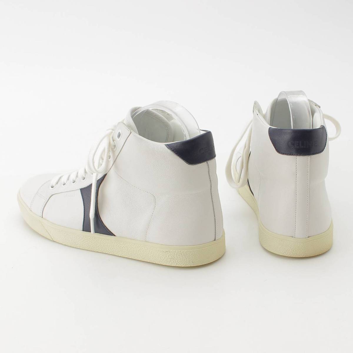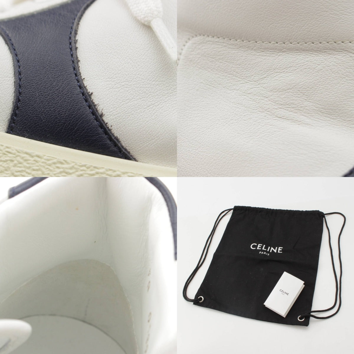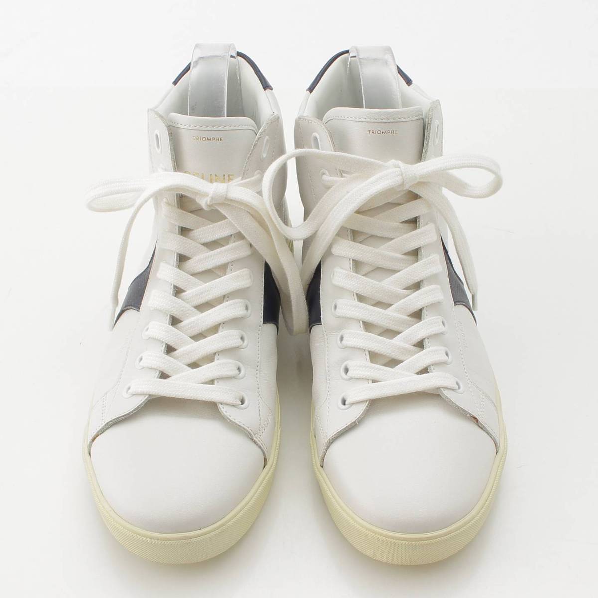 [Celine] Celine TRIOMPHE Triomphe Leather High-Cut Sneakers TR01M White x Black 39 [Used] [Authenticated and Guaranteed Authentic] 213599