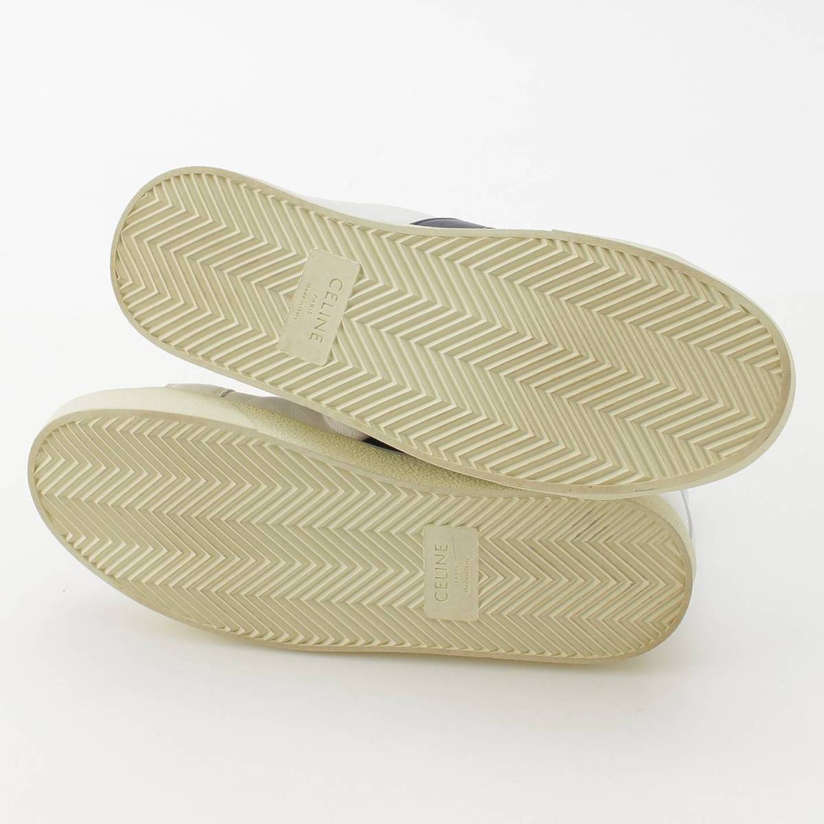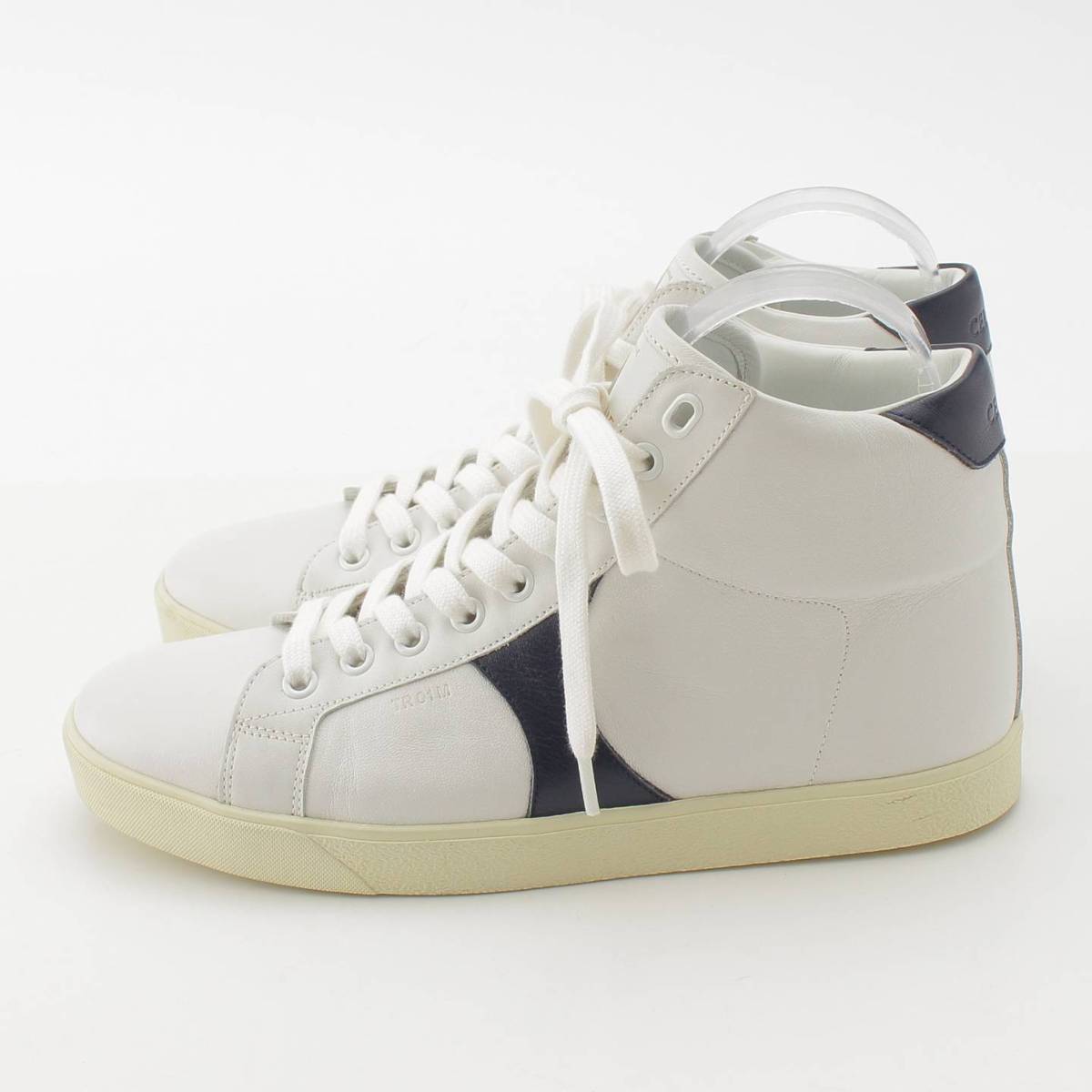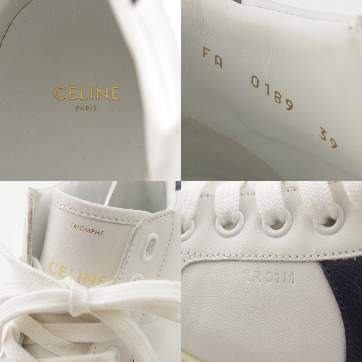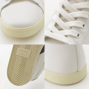 [Celine] Celine TRIOMPHE Triomphe Leather High-Cut Sneakers TR01M White x Black 39 [Used] [Authenticated and Guaranteed Authentic] 213599