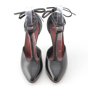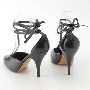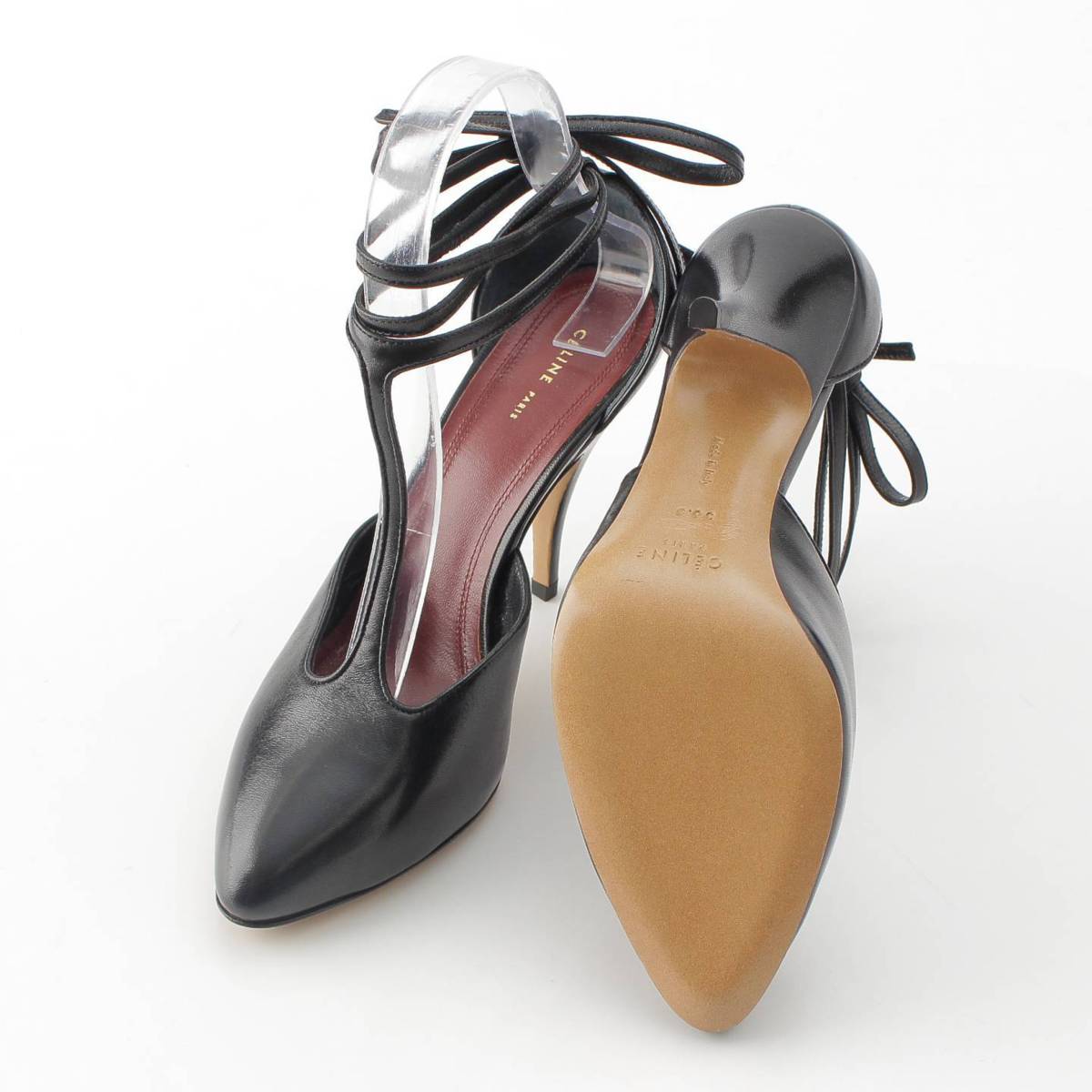 [Celine] Celine Phoebe T-strap ribbon leather pumps heel black 36.5 [Used] [Authenticated and genuine product guaranteed] 213611