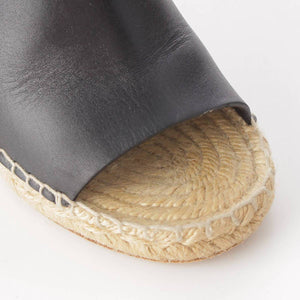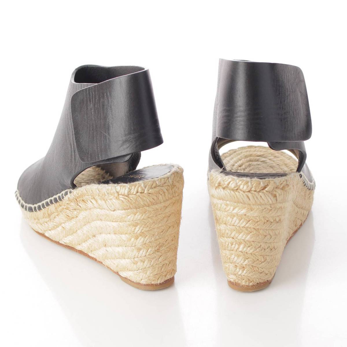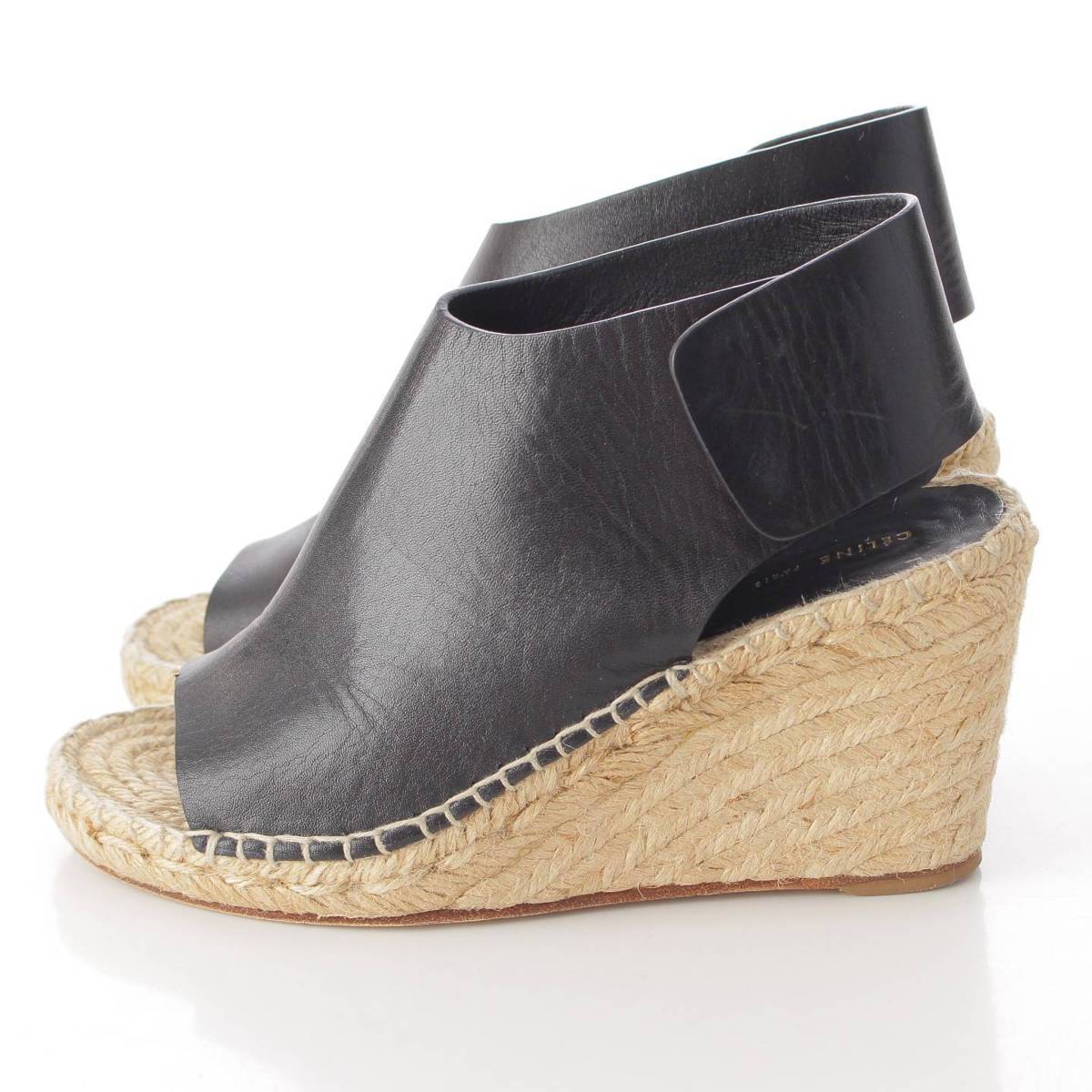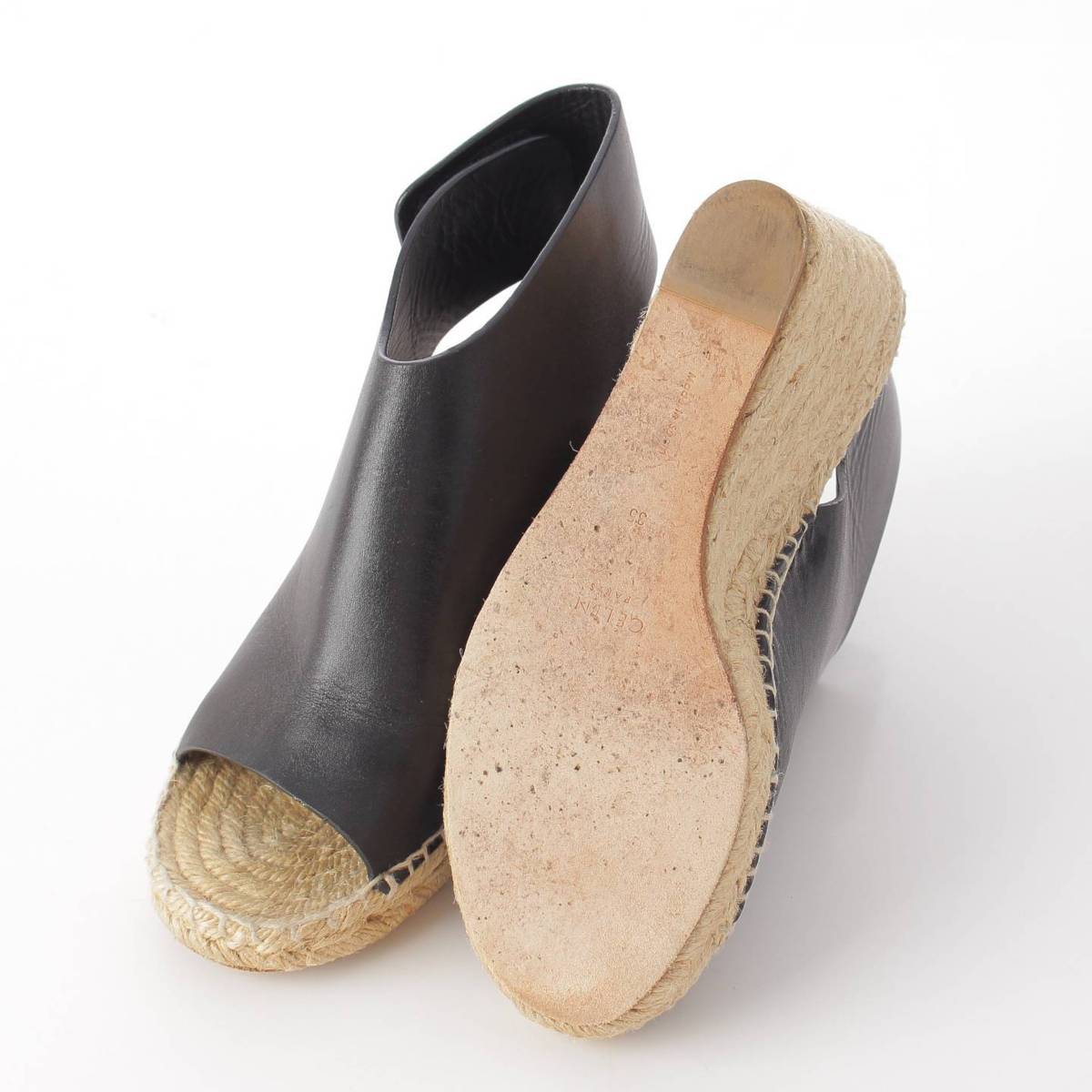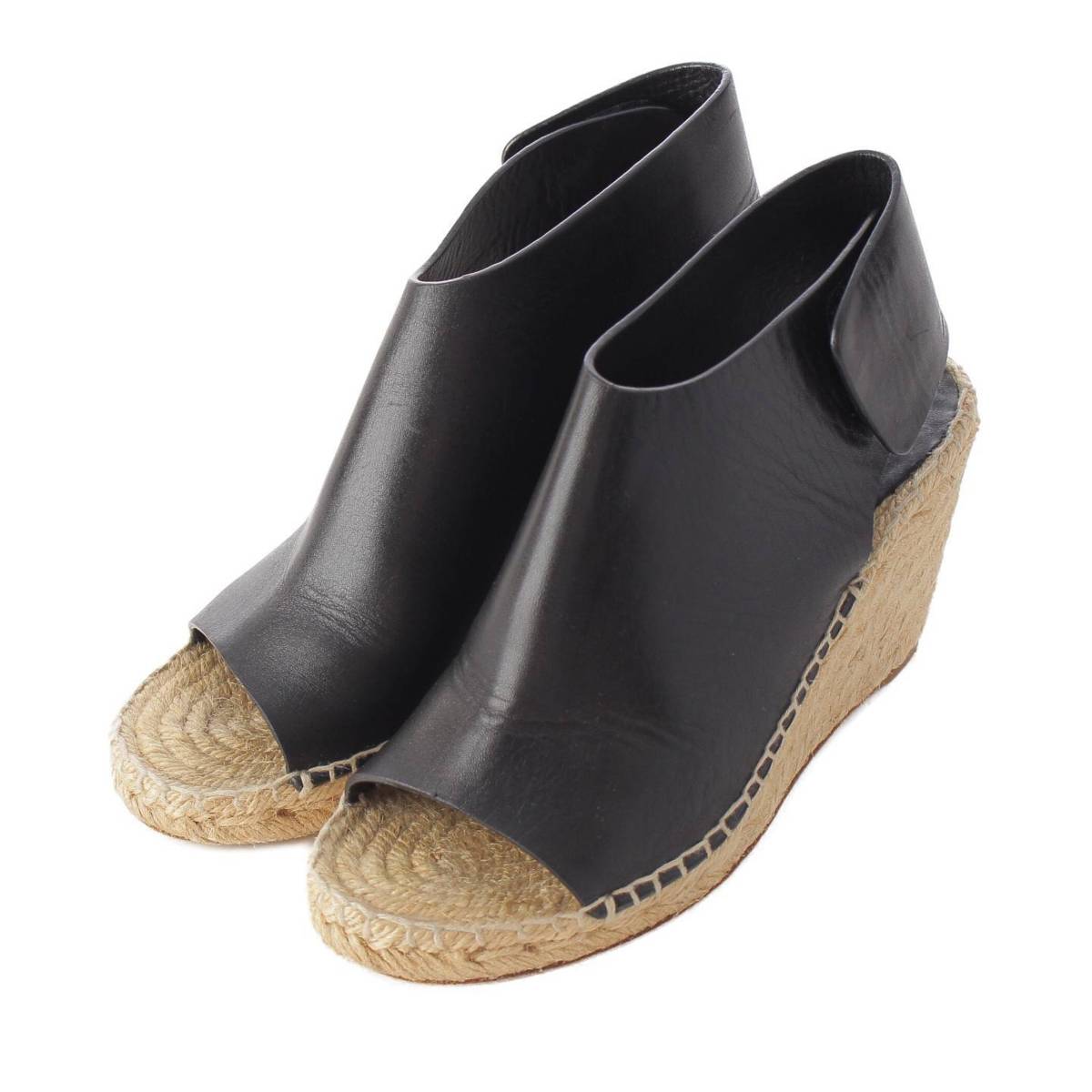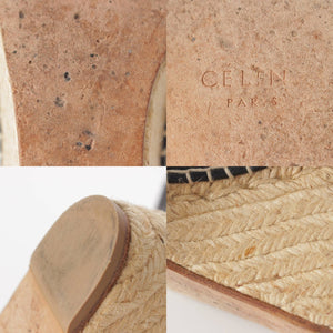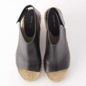 [Celine] Celine Phoebe Espadrilles Wedge Sole Leather Sandals Black Size 35 [Used] [Authenticated and Guaranteed Authentic] 213613