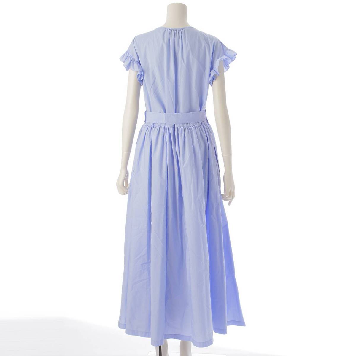 [Sonota] Patou 22Stainless Steel Ruffle Sleeve Maxi Dress with Belt 22SA2-DR087-17 Blue 34 [Used] [Authenticated and Guaranteed Authentic] 213943