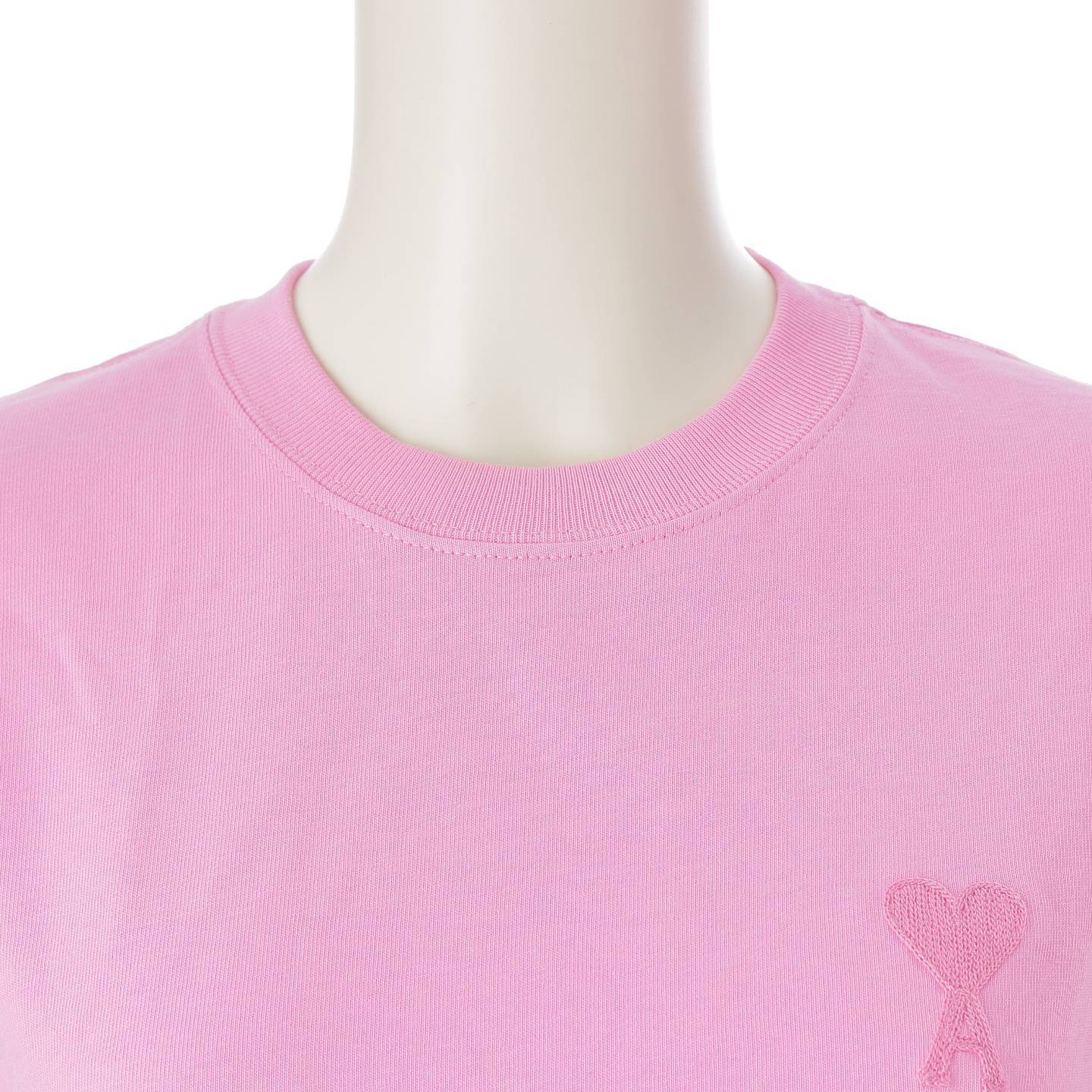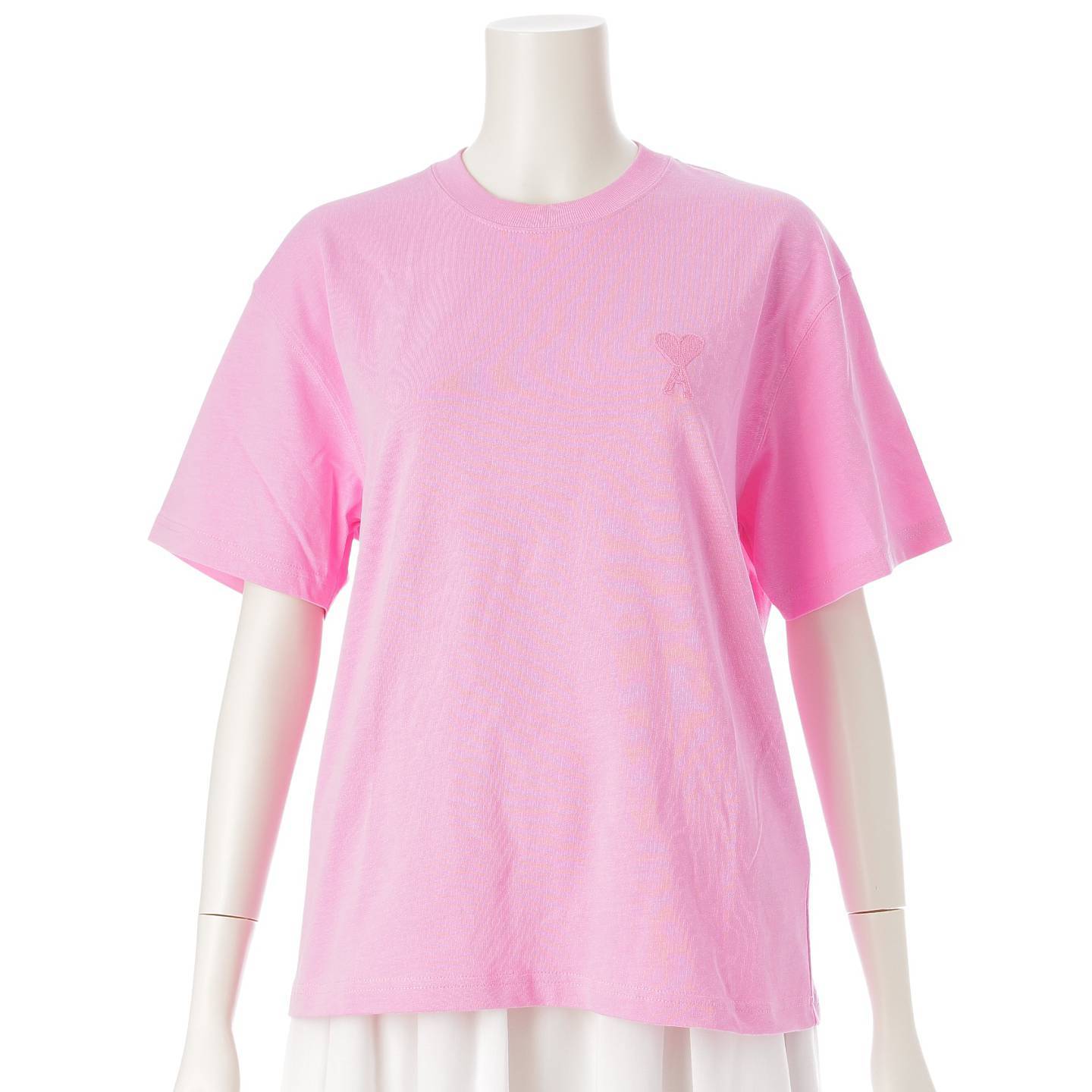 AMI Alexandre Mattiussi AMI Paris Heart Logo Embroidered Cut and Sew Short Sleeve T-Shirt Top Pink XXS [Used] [Authentic Product Guaranteed]