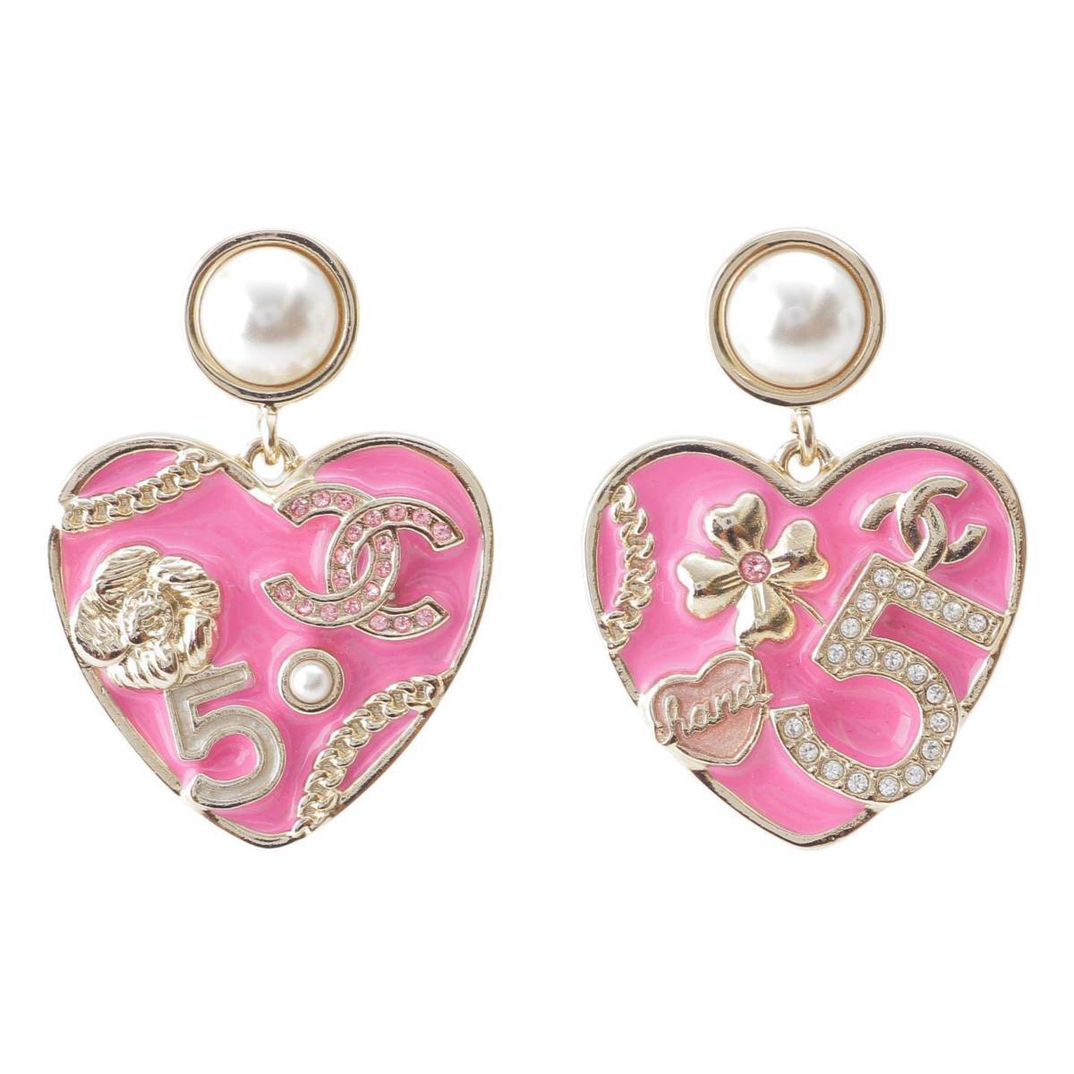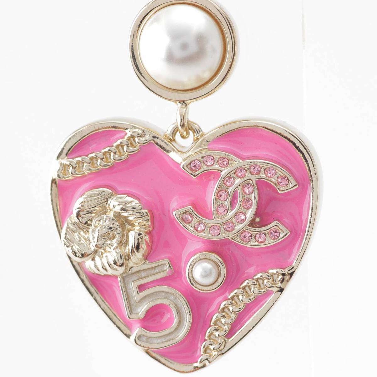 [Chanel] Chanel B24S No5 COCO Mark Pearl Heart Icon Pierce Pink x White Gold [Used] [Authenticated and Guaranteed Authentic] 213979